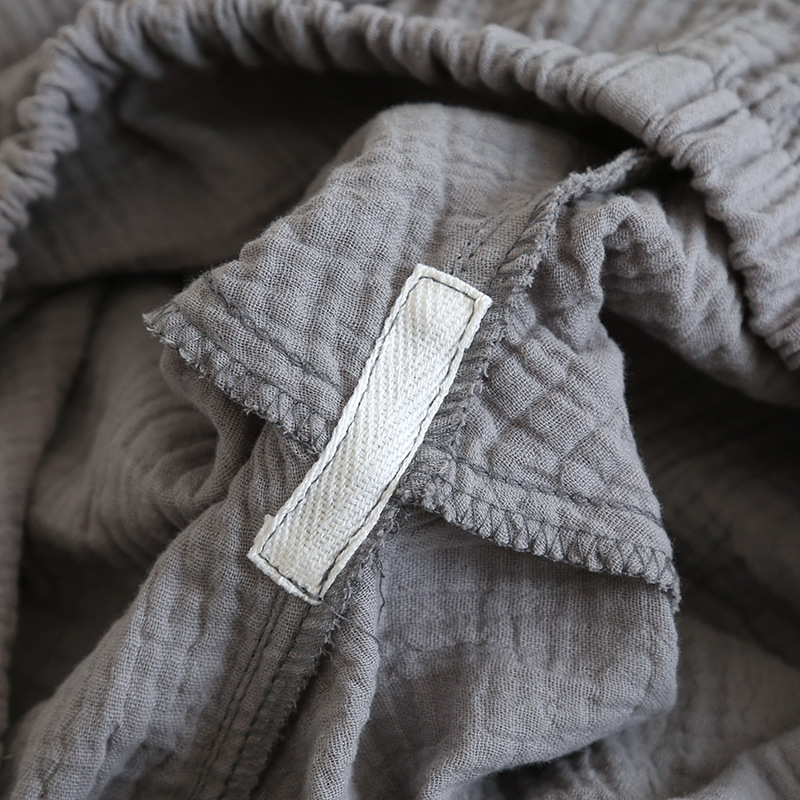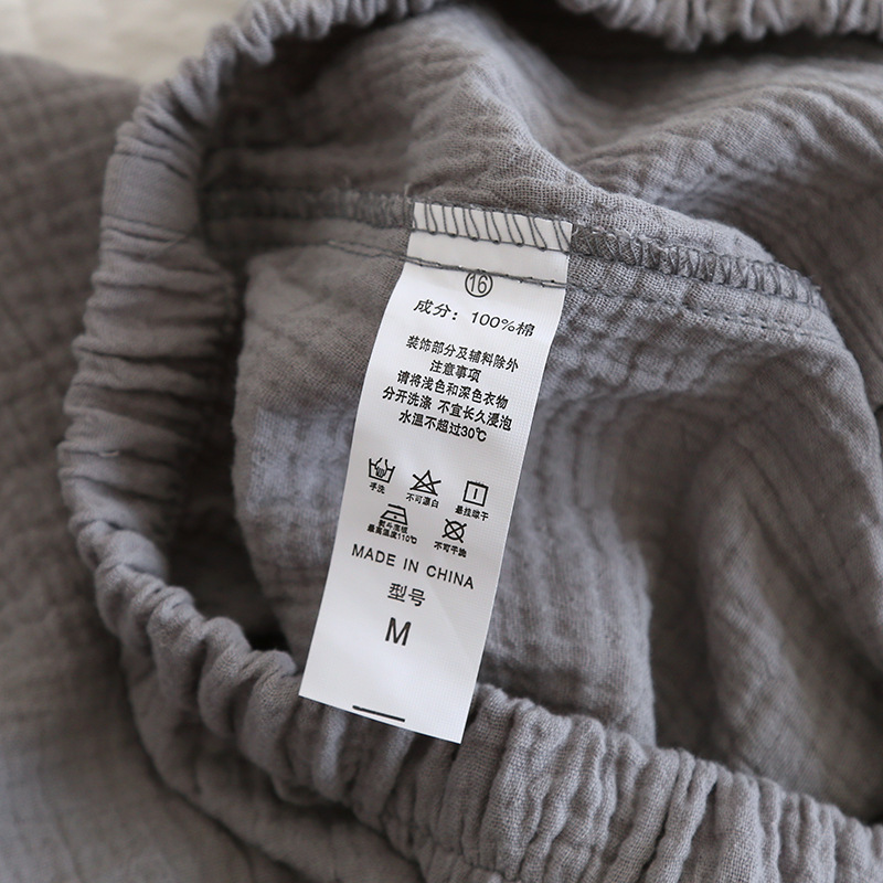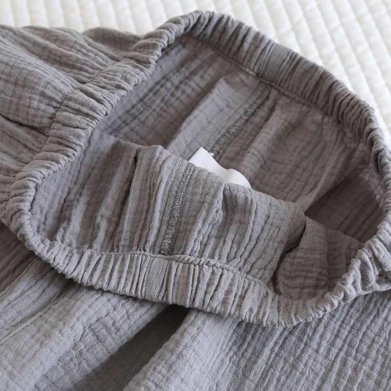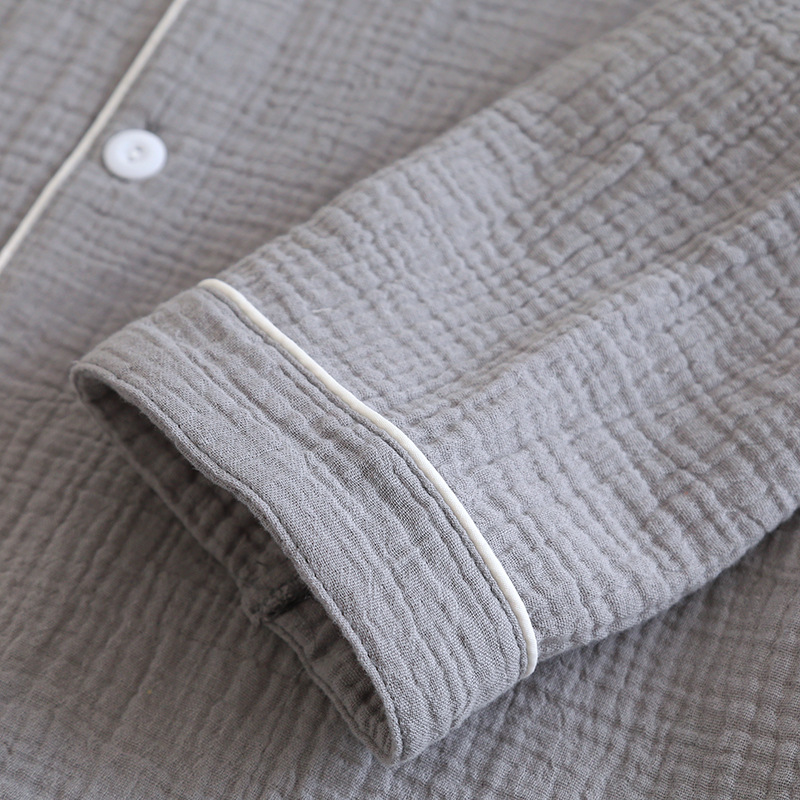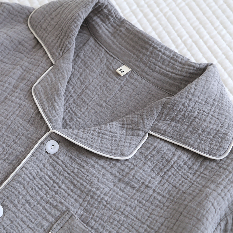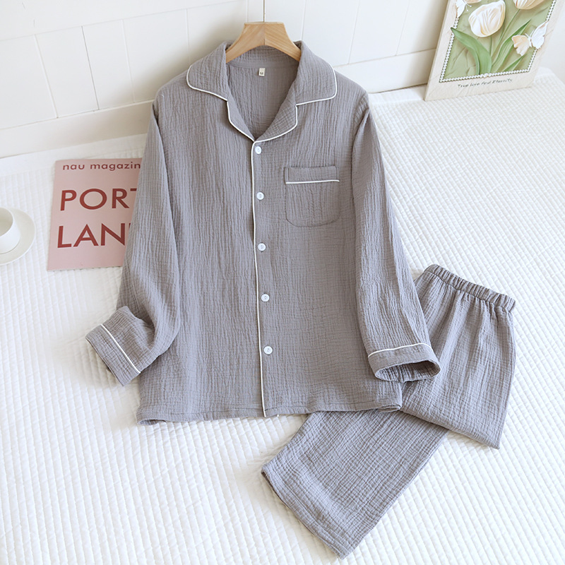 솔리드 컬러 심플 스타일 커플 크레페 순수 코튼 잠옷 여성과 남성 봄, 가을 여름 순수 코튼 더블 레이어 거즈 홈 투피스 세트스토어 가기