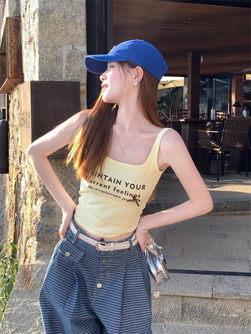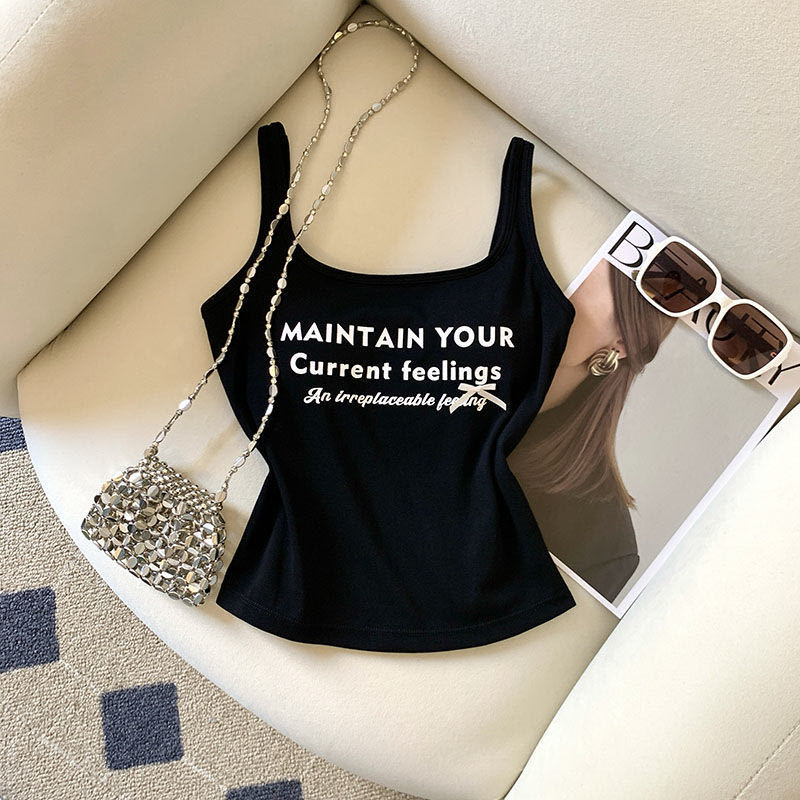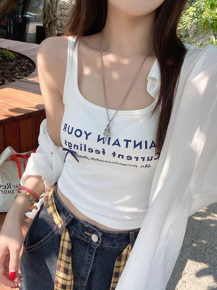 0420 # 봄과 여름 새로운 여름 외부 착용 내부 탑 달콤한 향신료 활 편지 인쇄 카미 솔 조끼