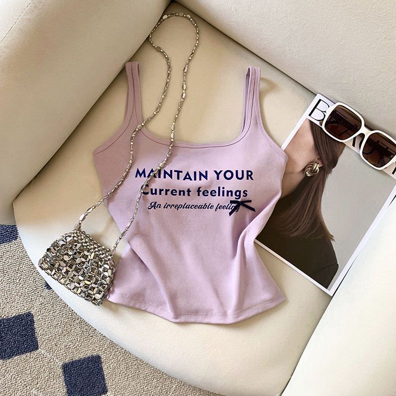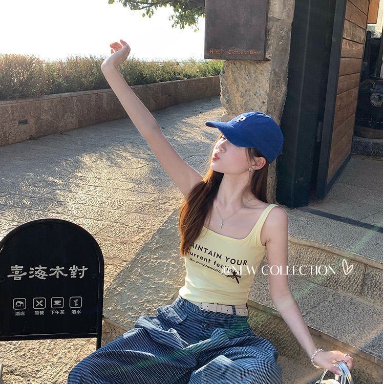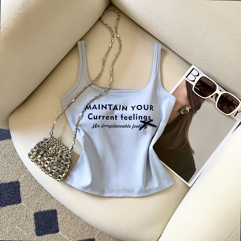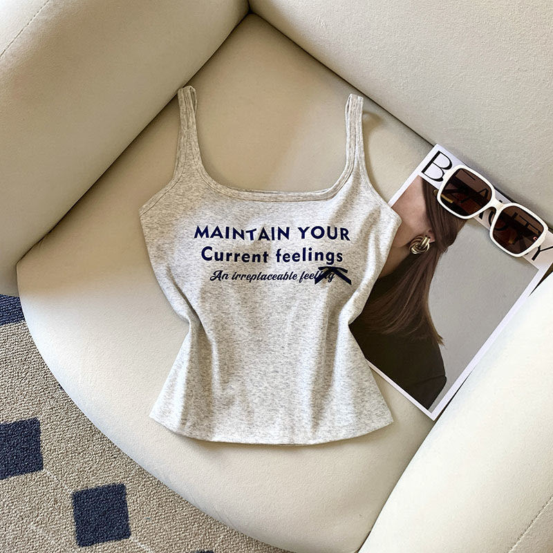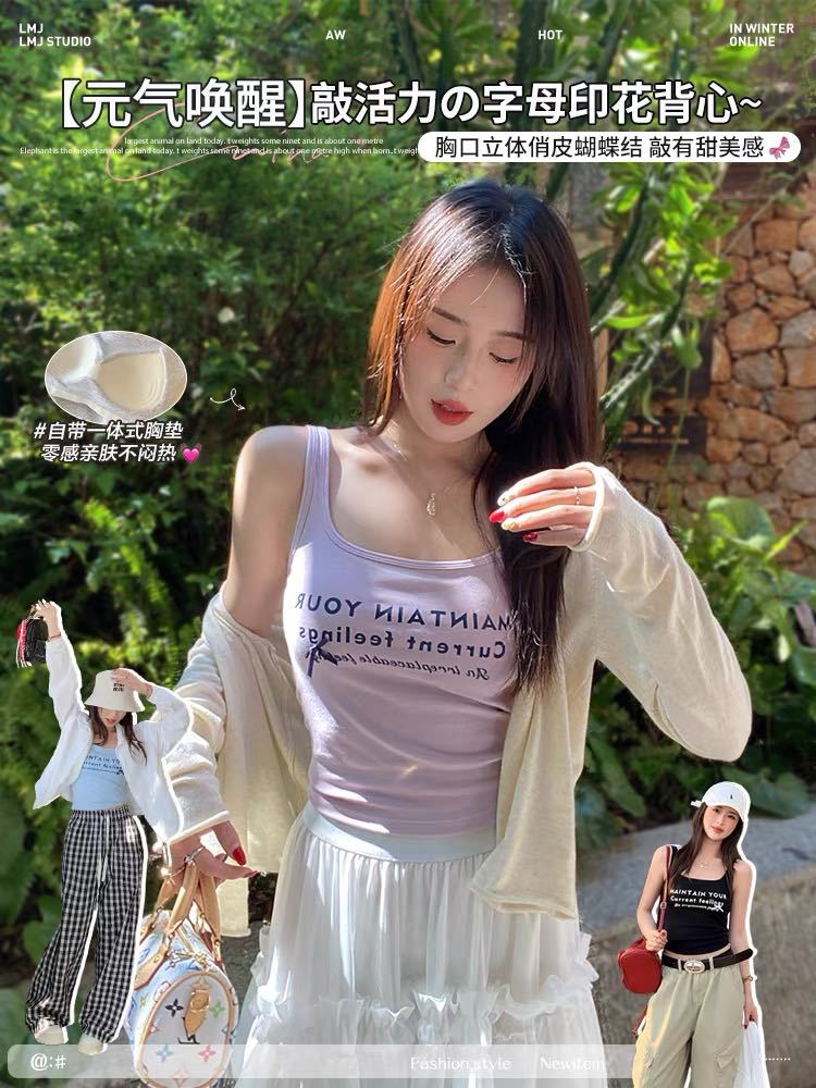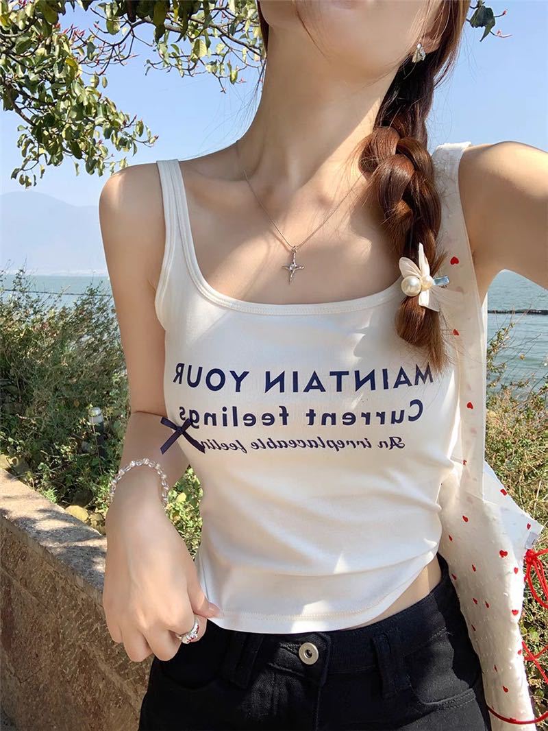 0420 # 봄과 여름 새로운 여름 외부 착용 내부 탑 달콤한 향신료 활 편지 인쇄 카미 솔 조끼스토어 가기