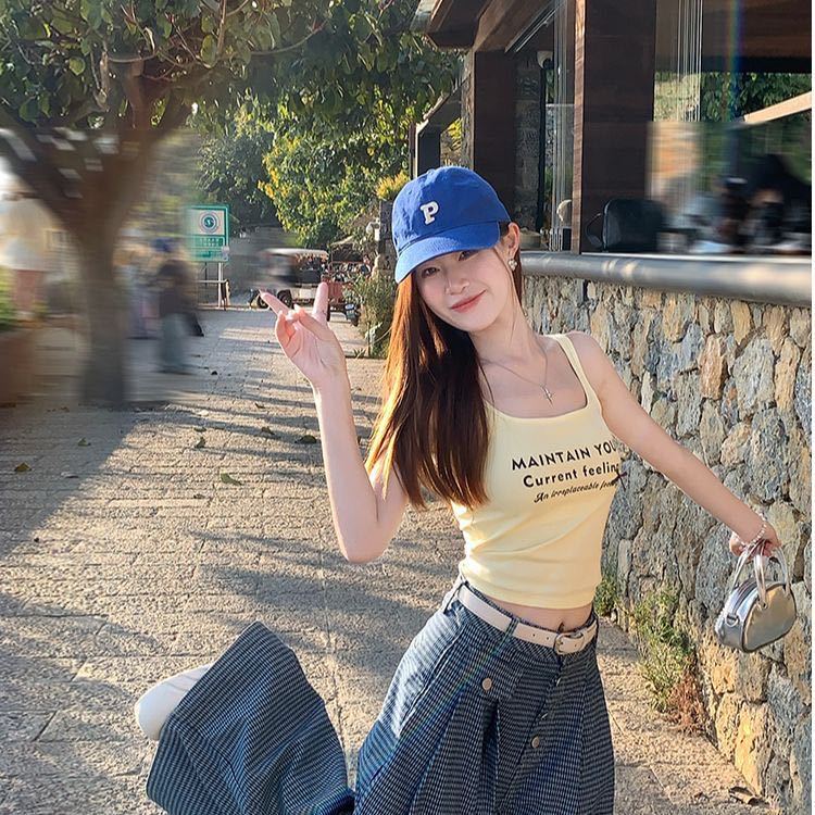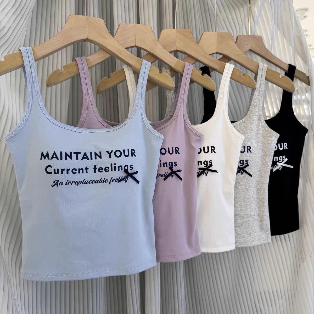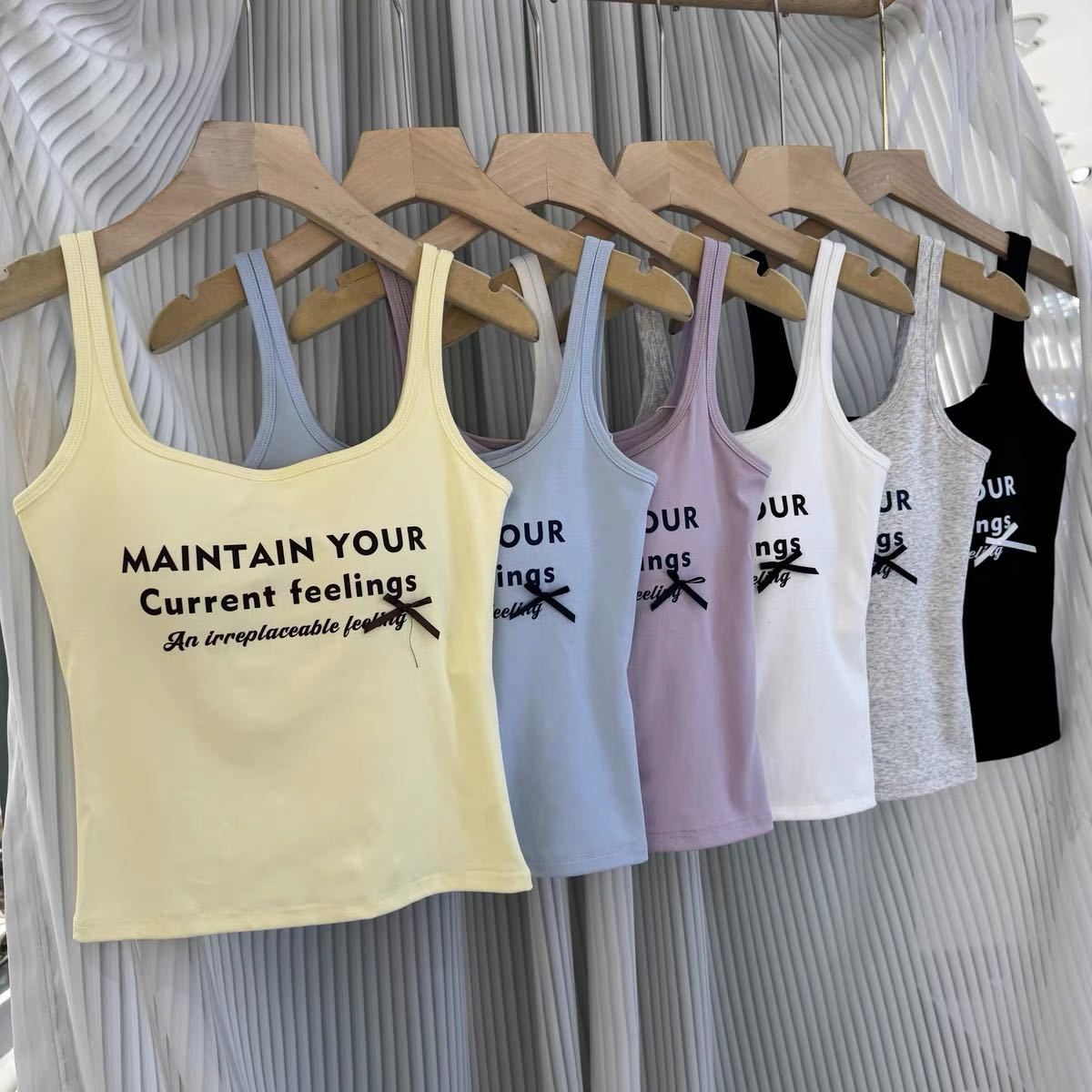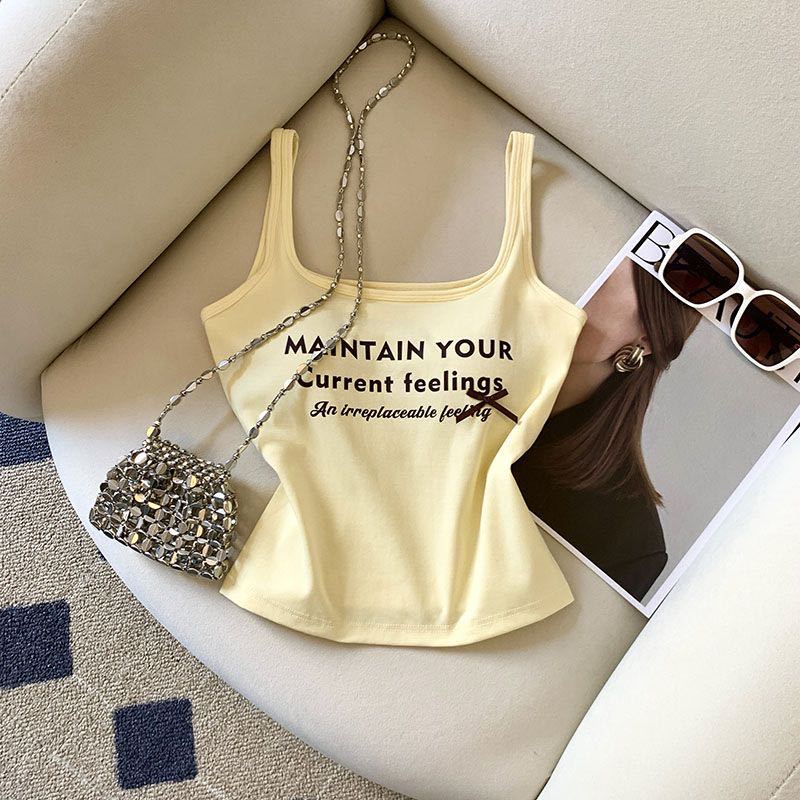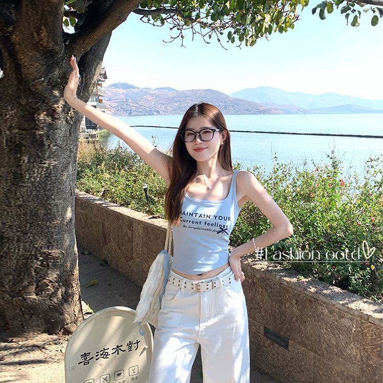 0420 # 봄과 여름 새로운 여름 외부 착용 내부 탑 달콤한 향신료 활 편지 인쇄 카미 솔 조끼스토어 가기