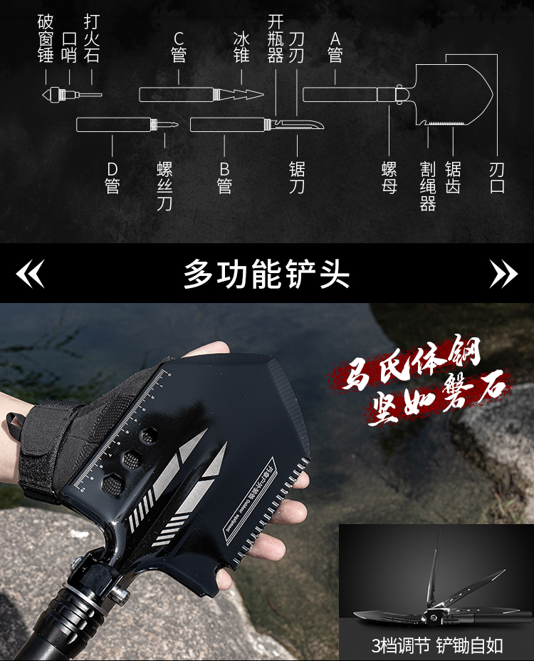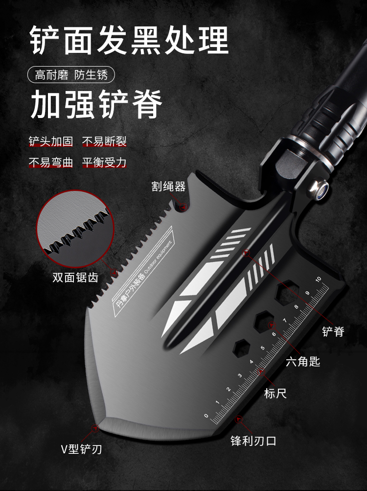 다기능 공병 삽, 망간강 야외 삽, 중국 군용 삽, 접이식 삽, 야외 용품, 낚시 자동차 캠핑