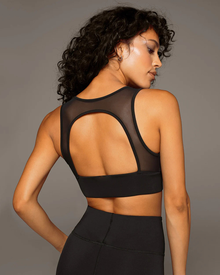 깊은 V 메쉬 섹시한 등이없는 요가 슈트, 가슴 패드가있는 아름다운 등, 여성 도매, 피트니스, 야외 스포츠 및 달리기스토어 가기