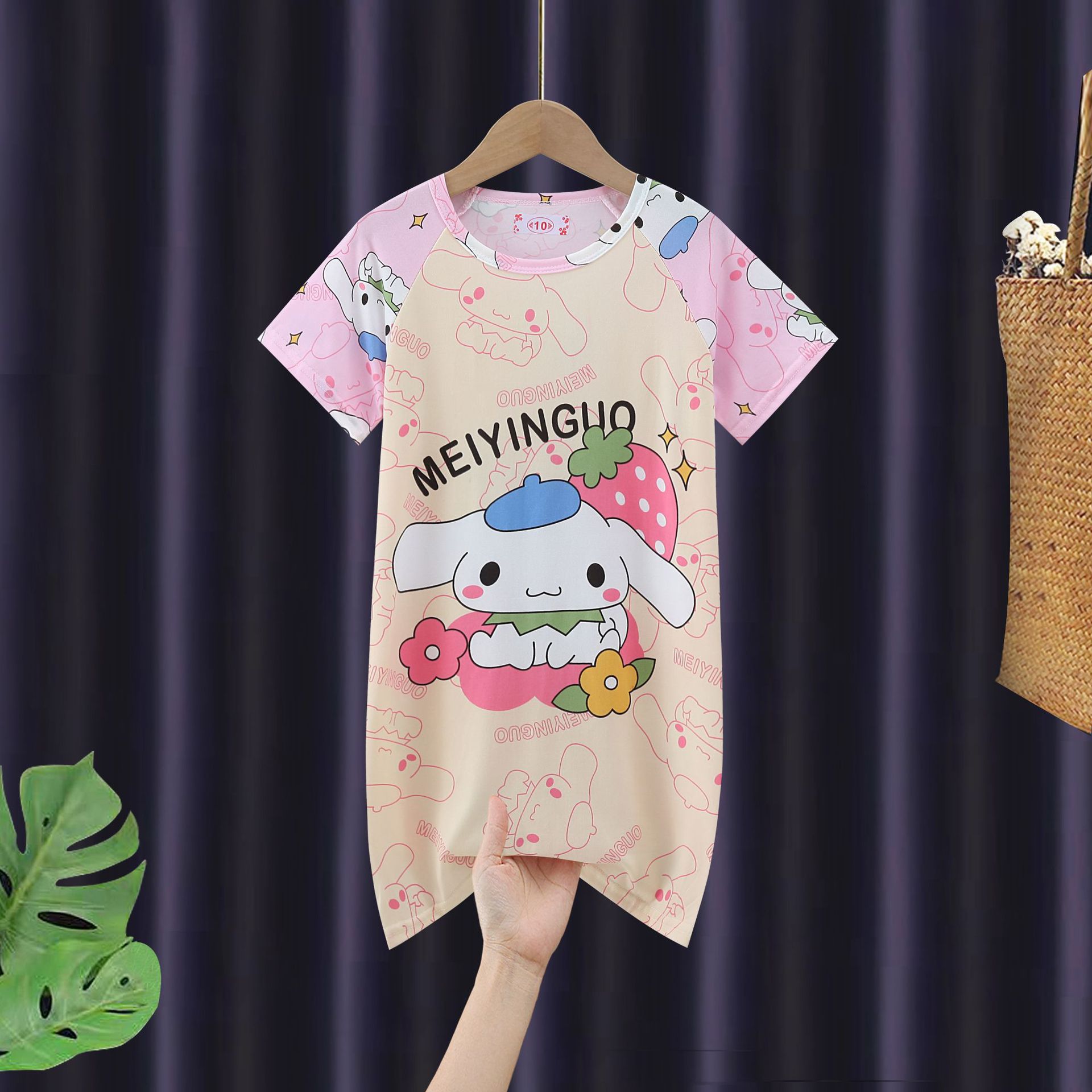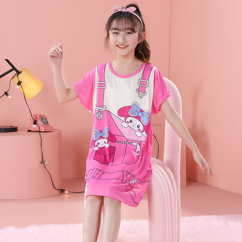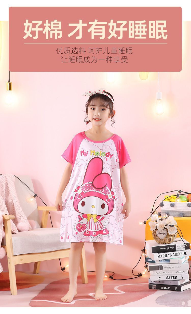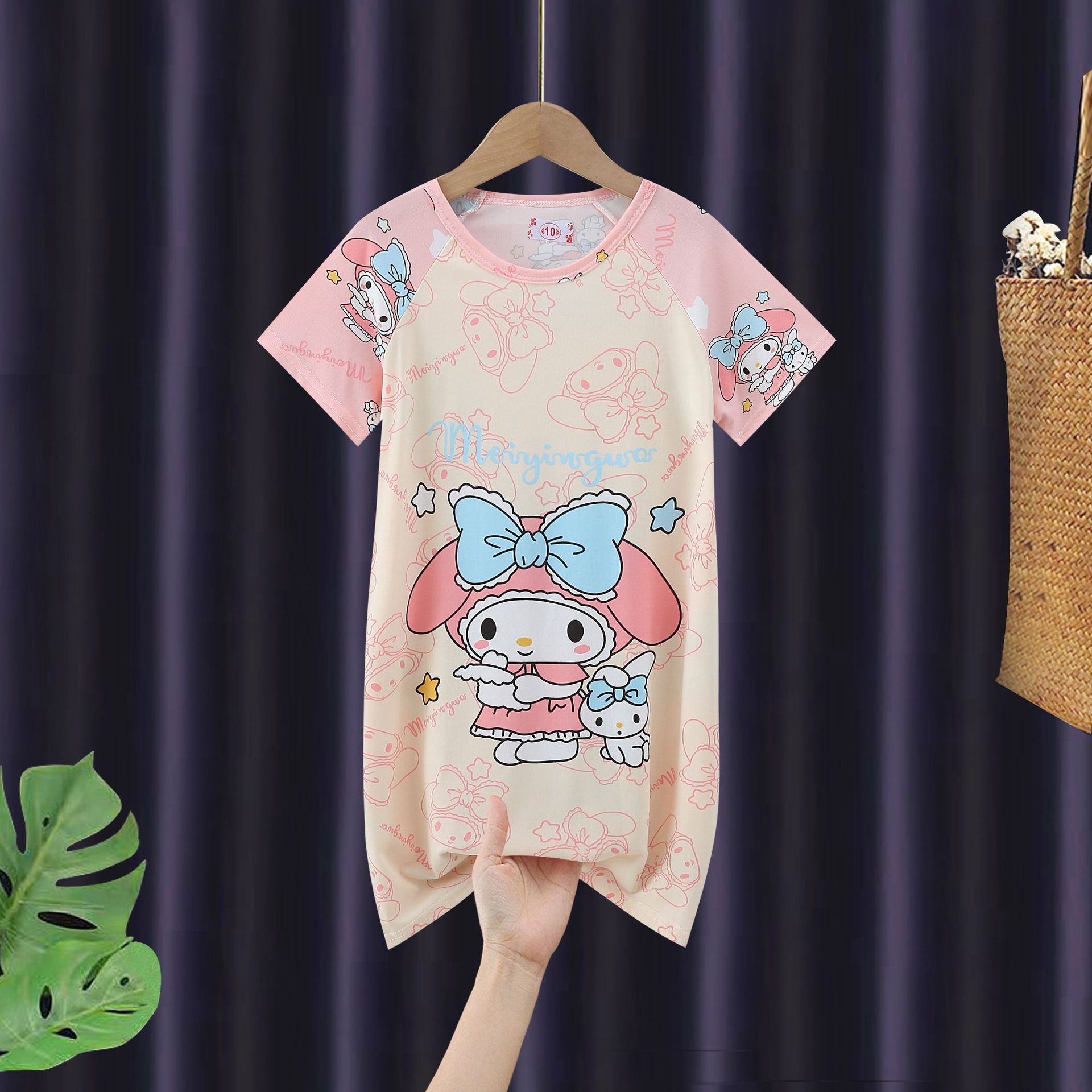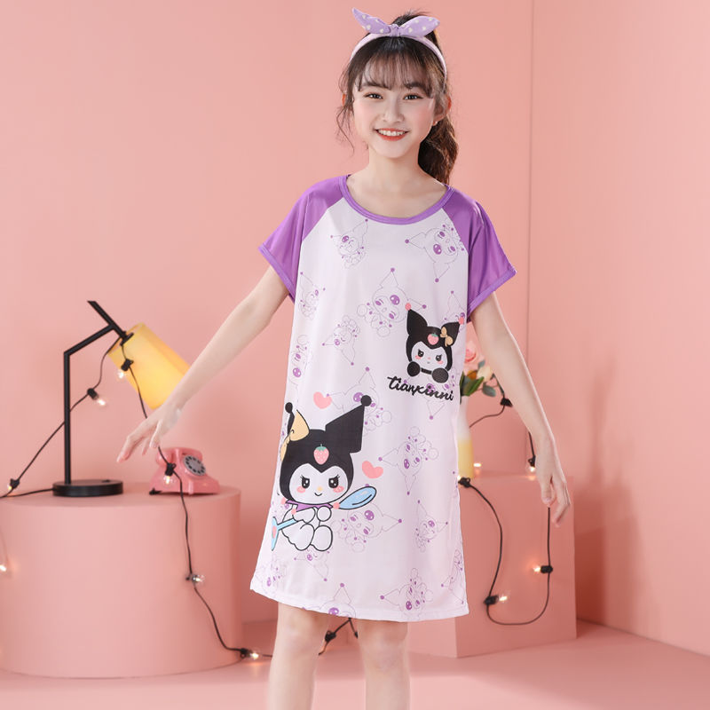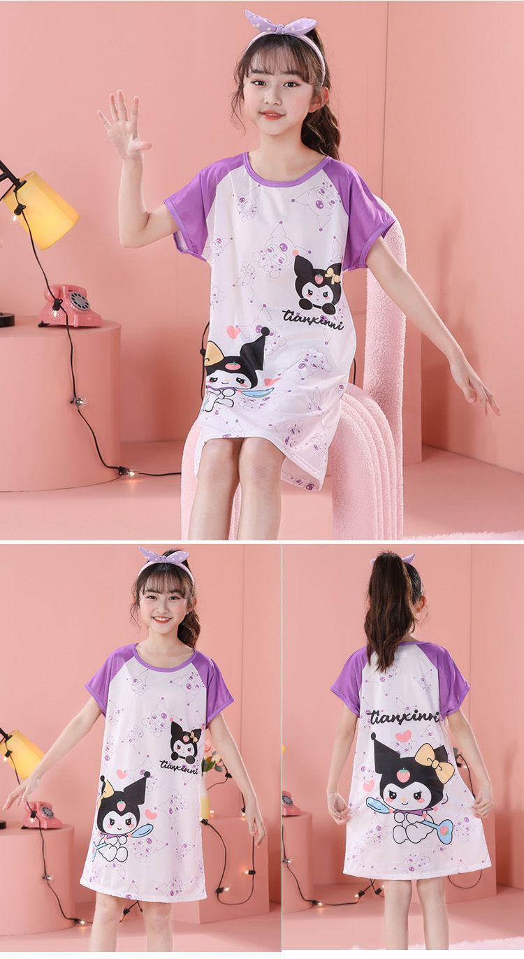 큰 어린이를위한 여름 얇은 반팔 소녀 잠옷 만화 스타일 Kuromi 아기 어린이 여름 공주 잠옷