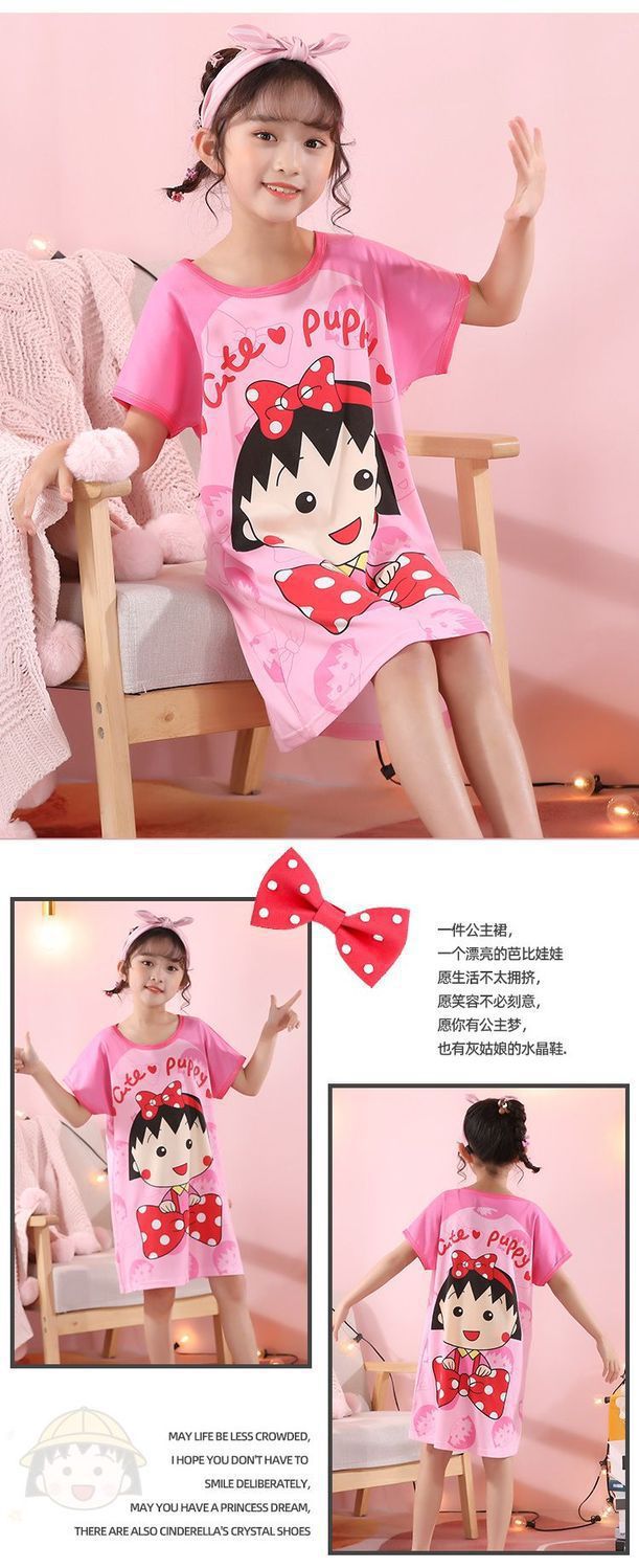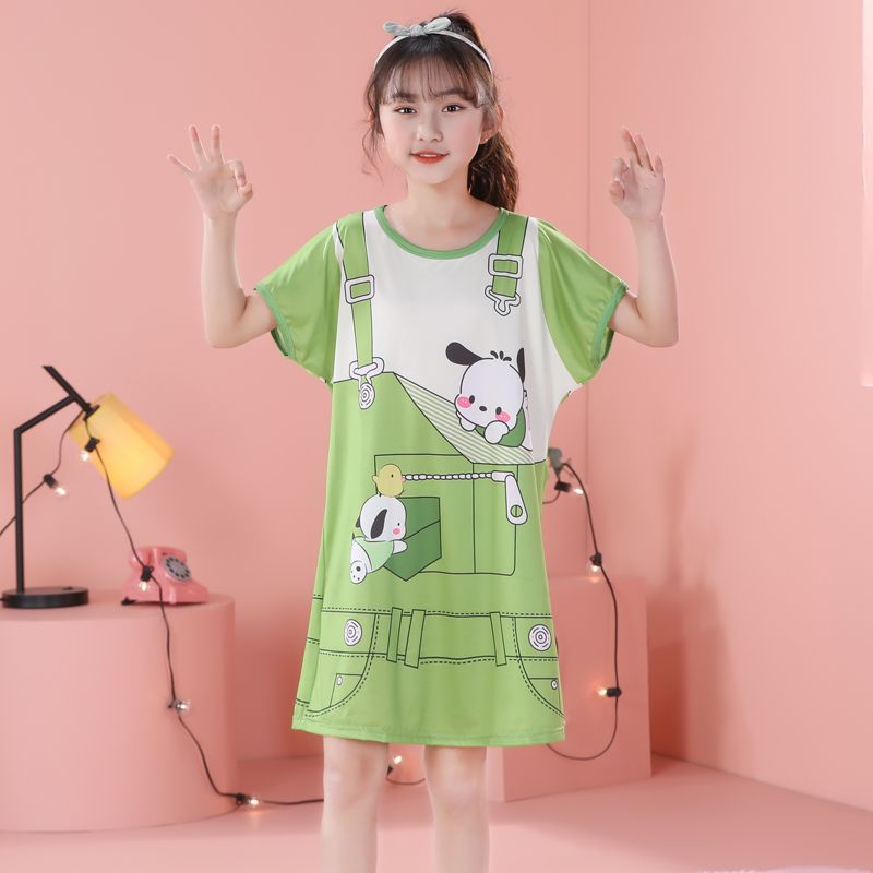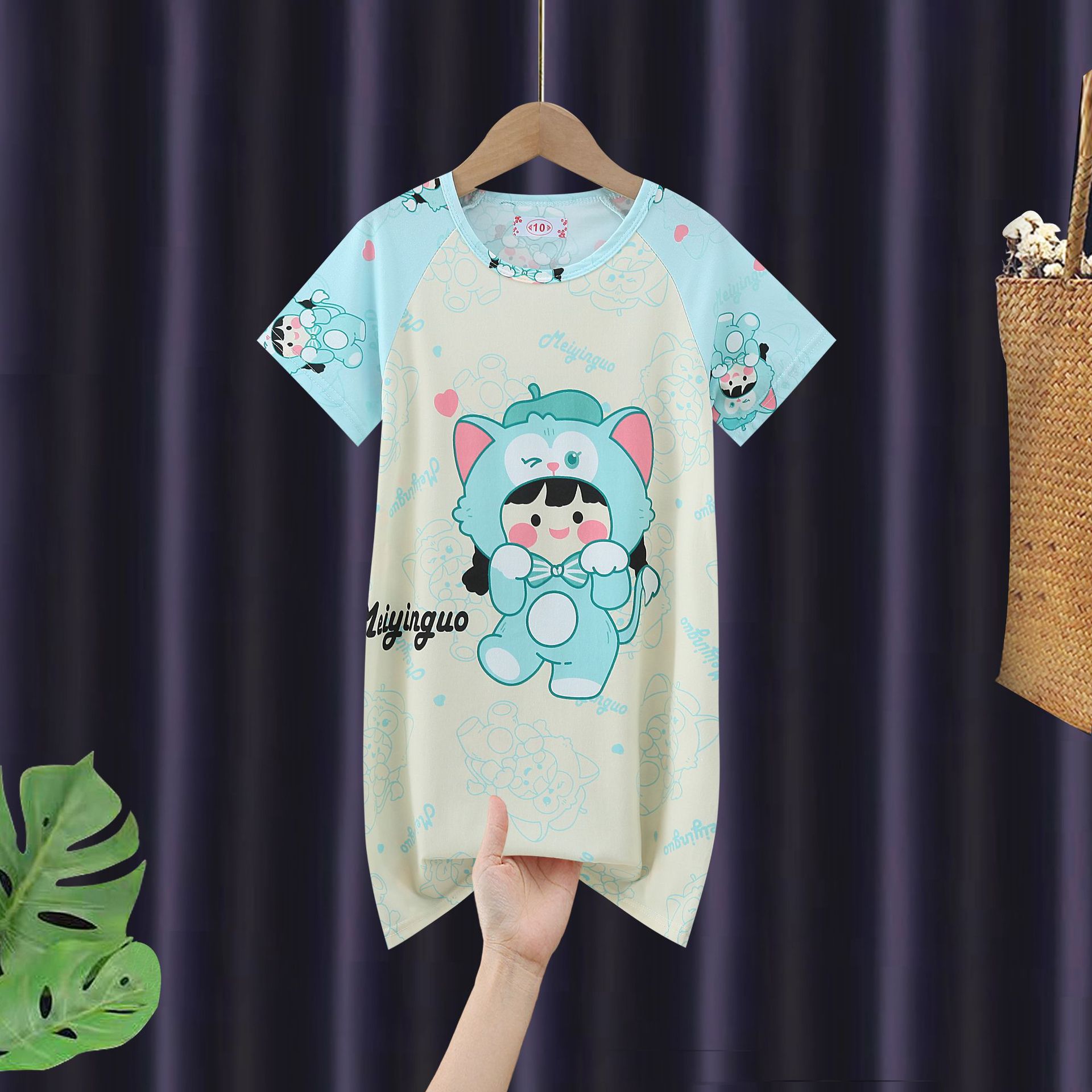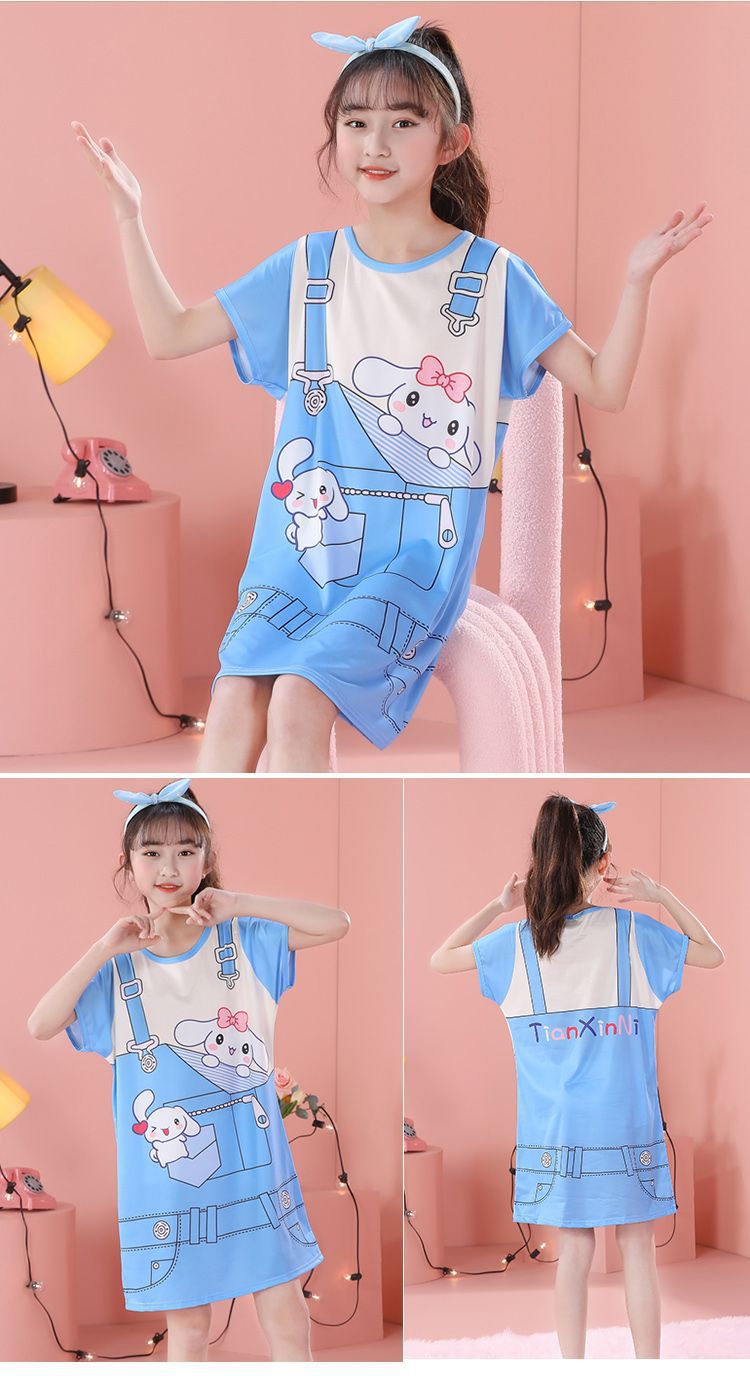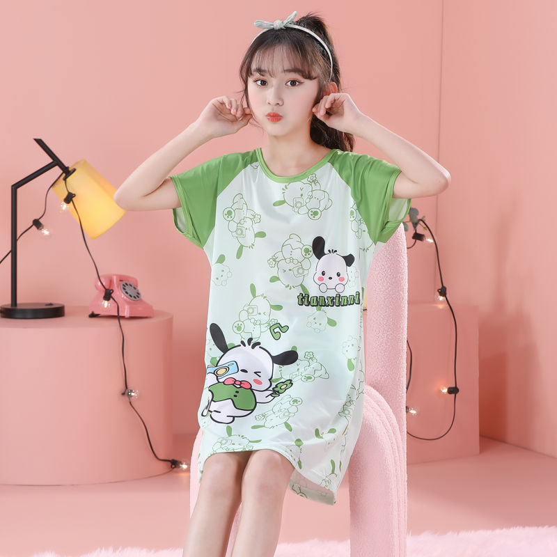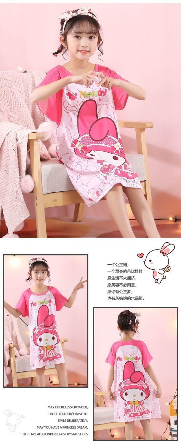 큰 어린이를위한 여름 얇은 반팔 소녀 잠옷 만화 스타일 Kuromi 아기 어린이 여름 공주 잠옷