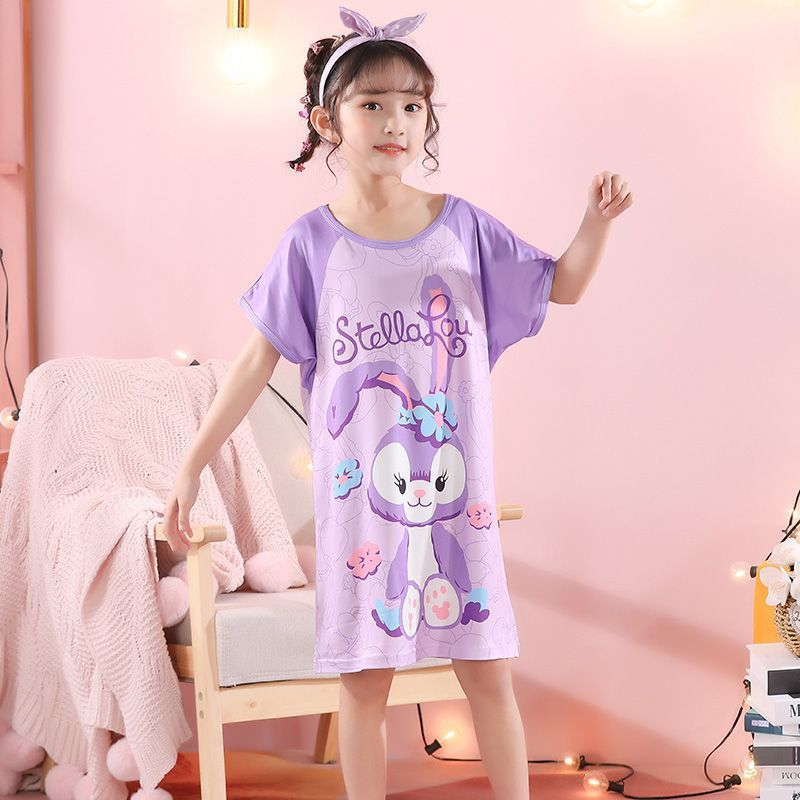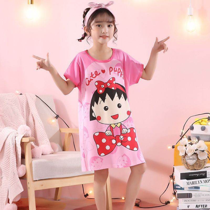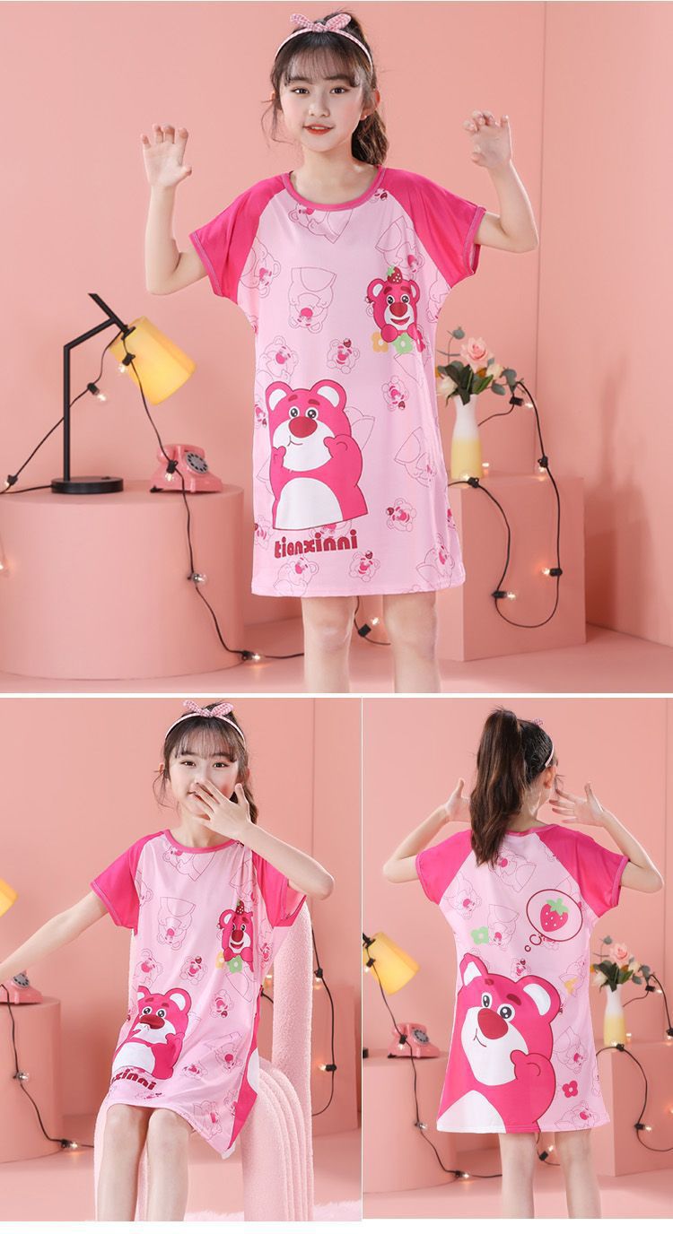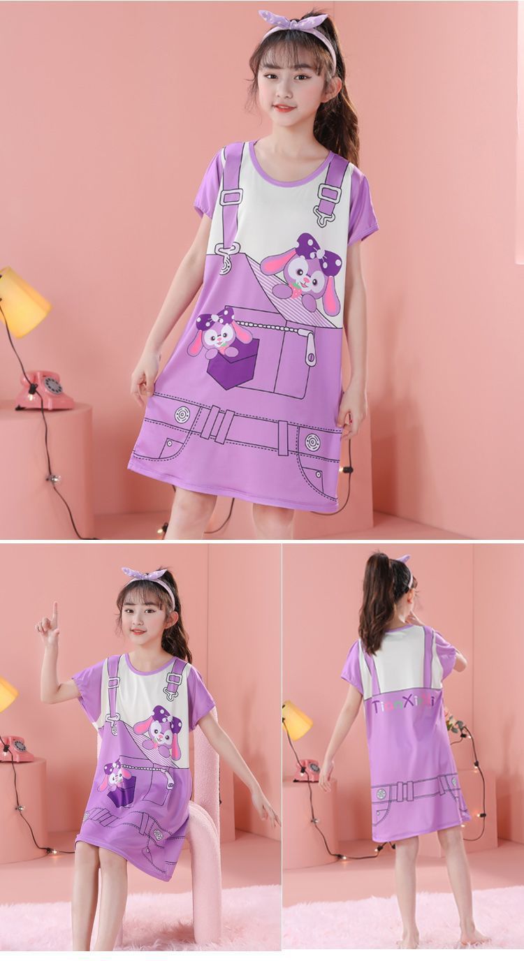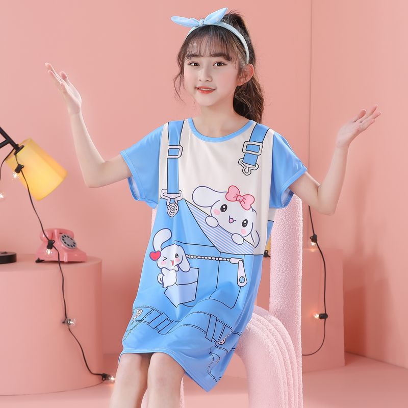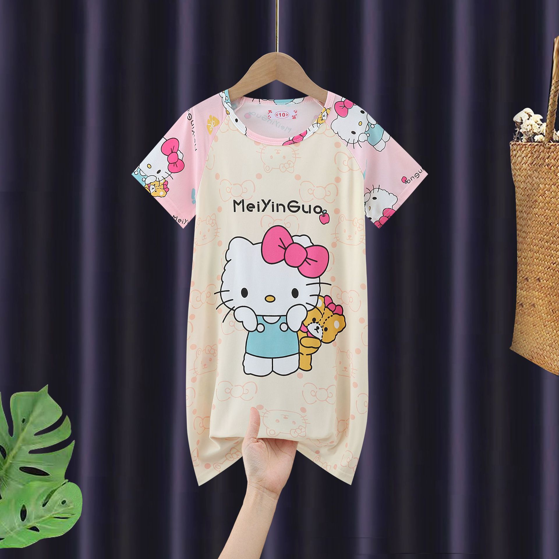 큰 어린이를위한 여름 얇은 반팔 소녀 잠옷 만화 스타일 Kuromi 아기 어린이 여름 공주 잠옷