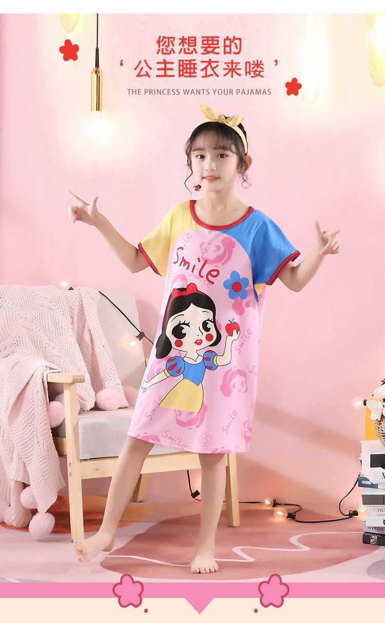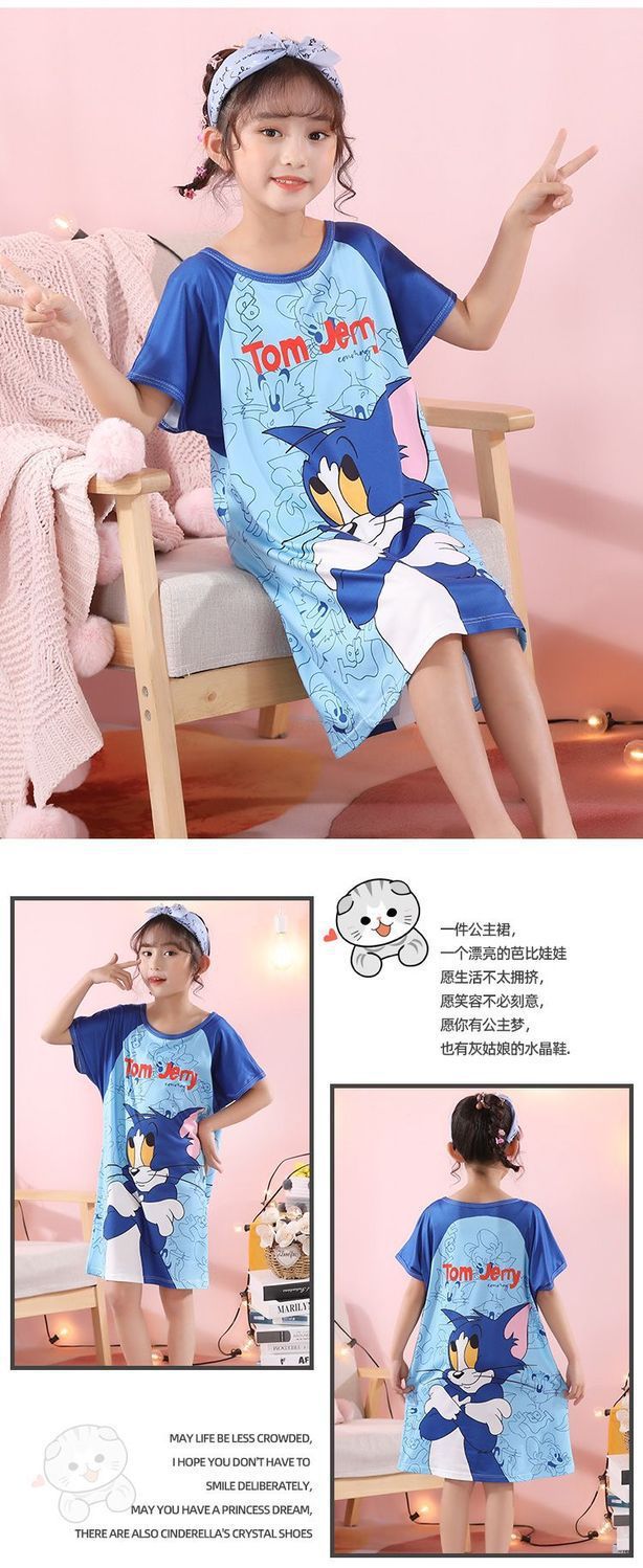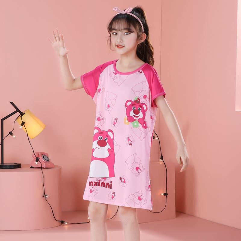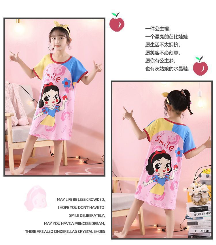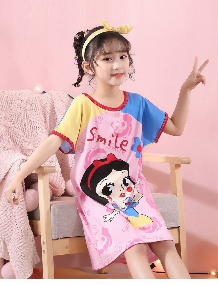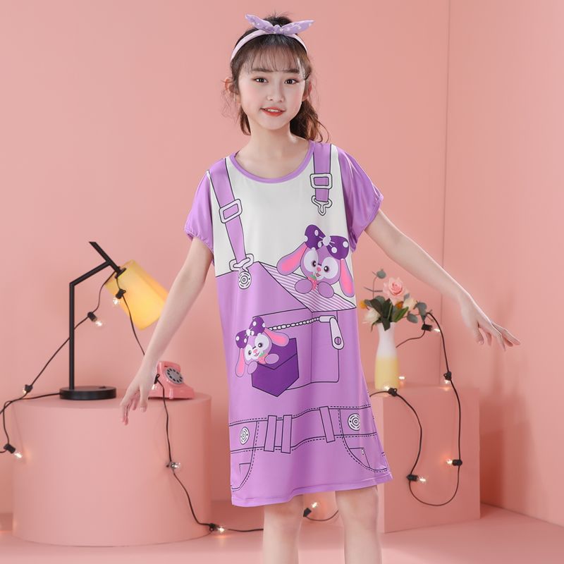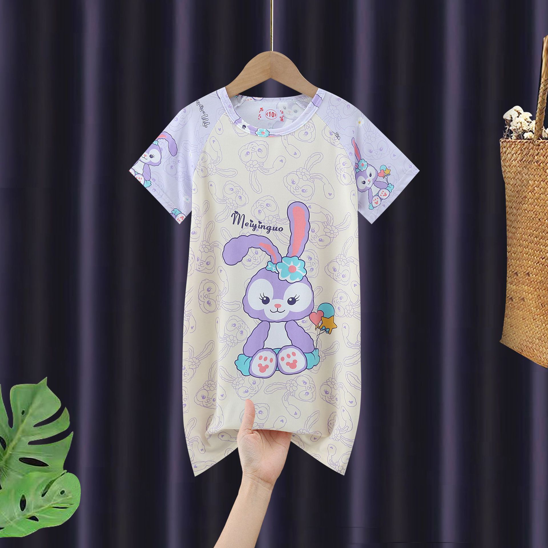 큰 어린이를위한 여름 얇은 반팔 소녀 잠옷 만화 스타일 Kuromi 아기 어린이 여름 공주 잠옷