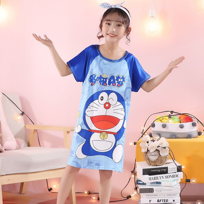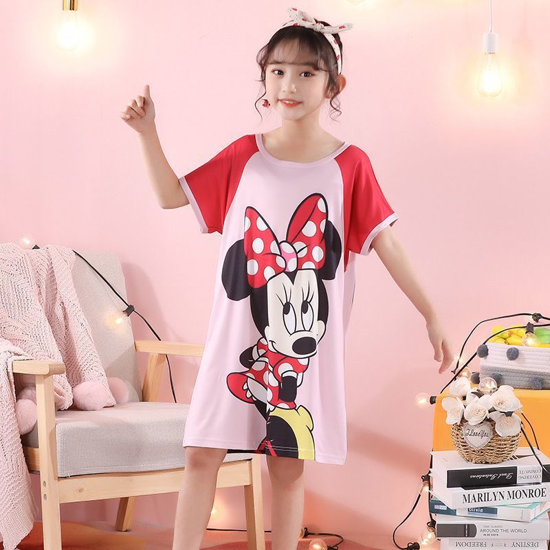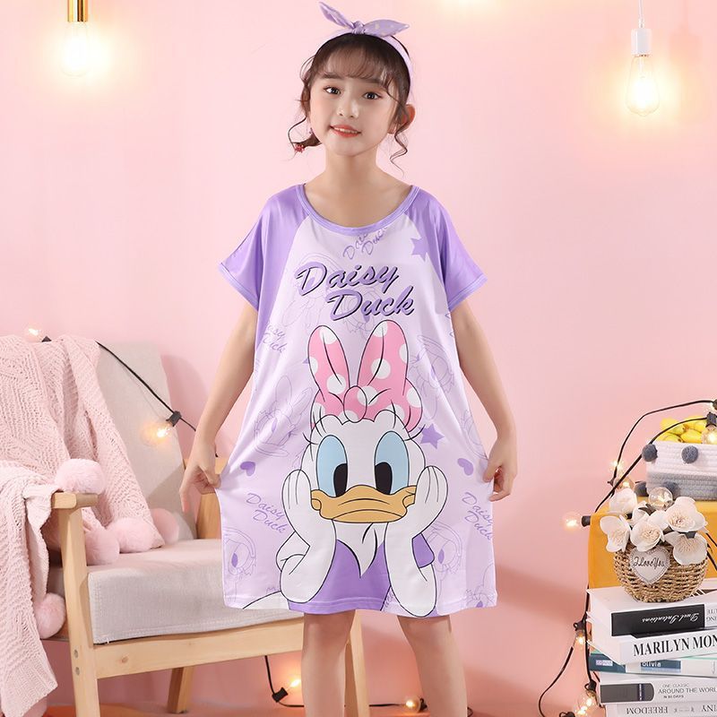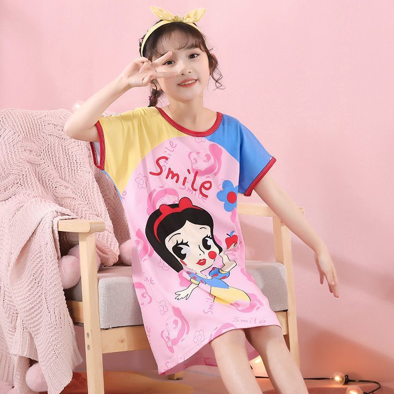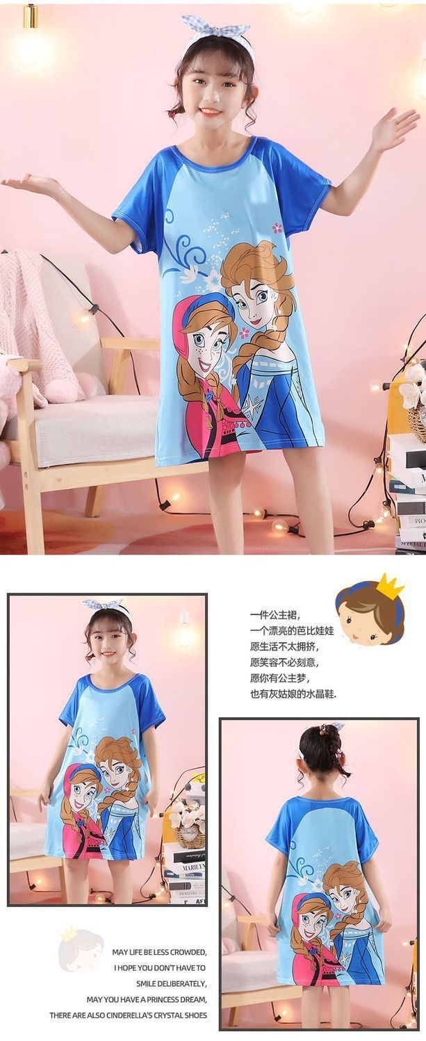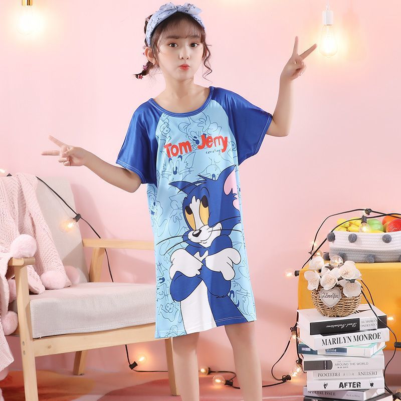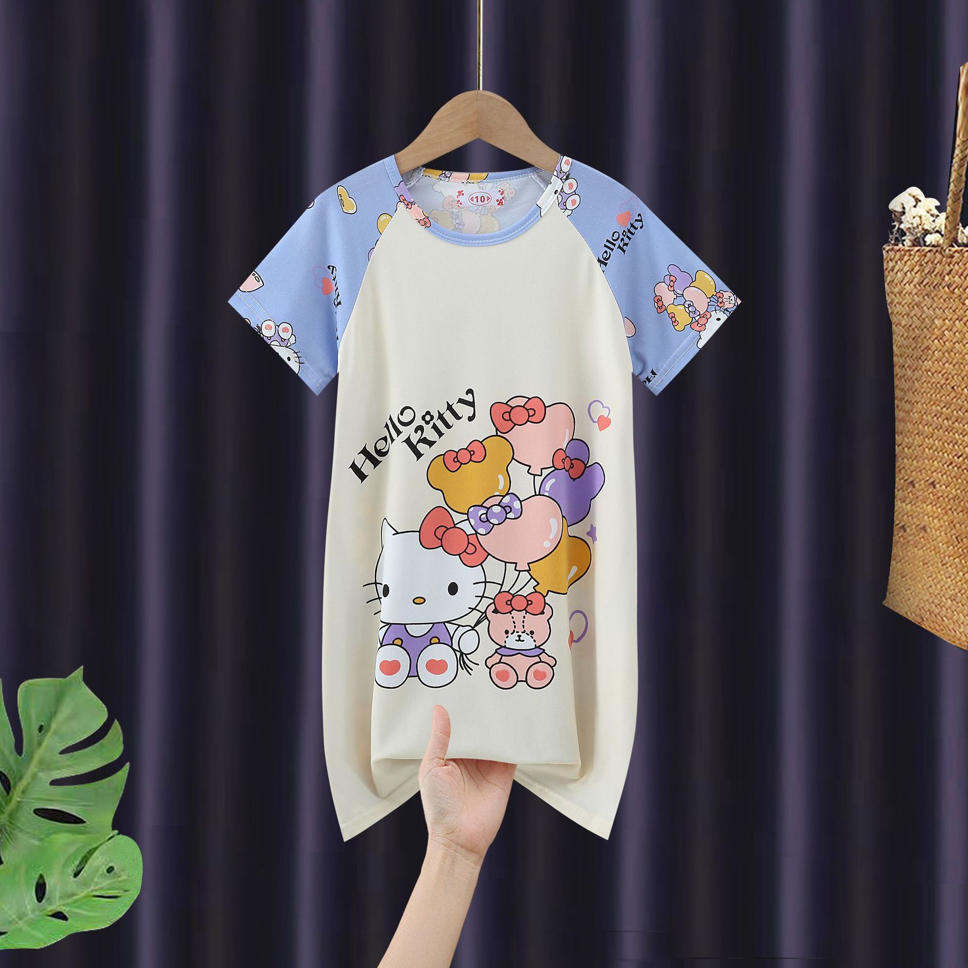 큰 어린이를위한 여름 얇은 반팔 소녀 잠옷 만화 스타일 Kuromi 아기 어린이 여름 공주 잠옷