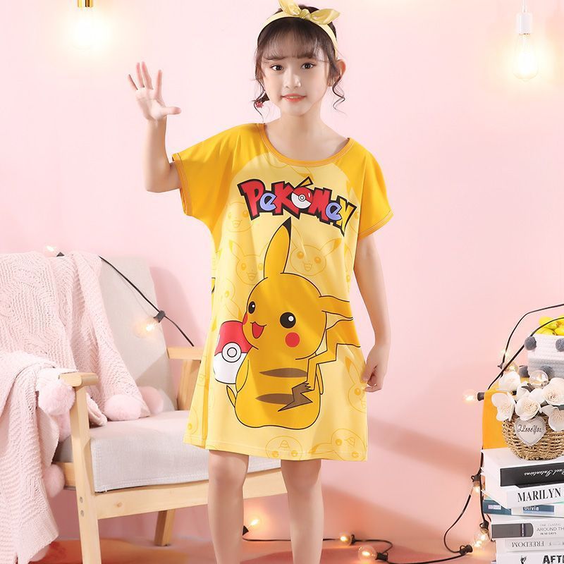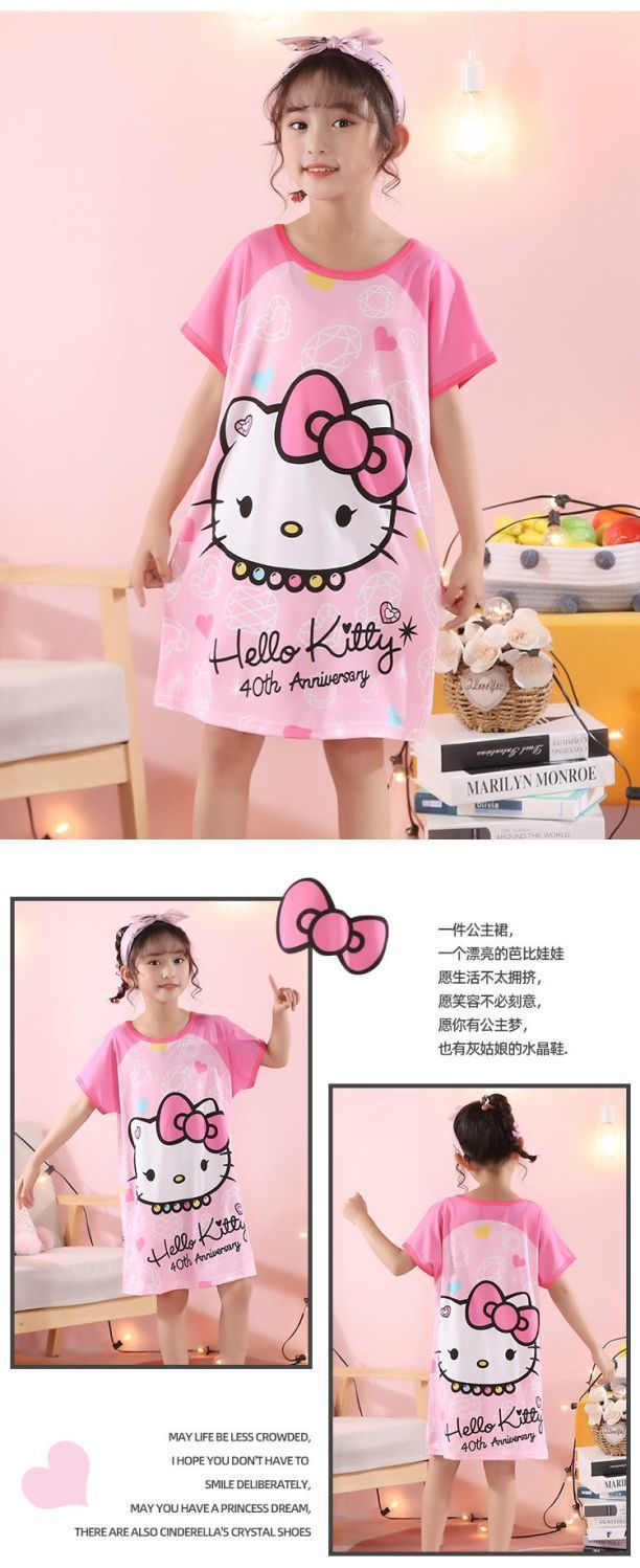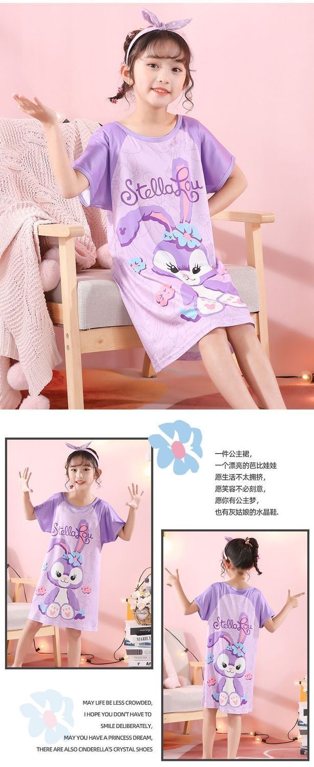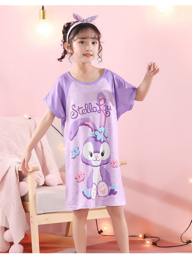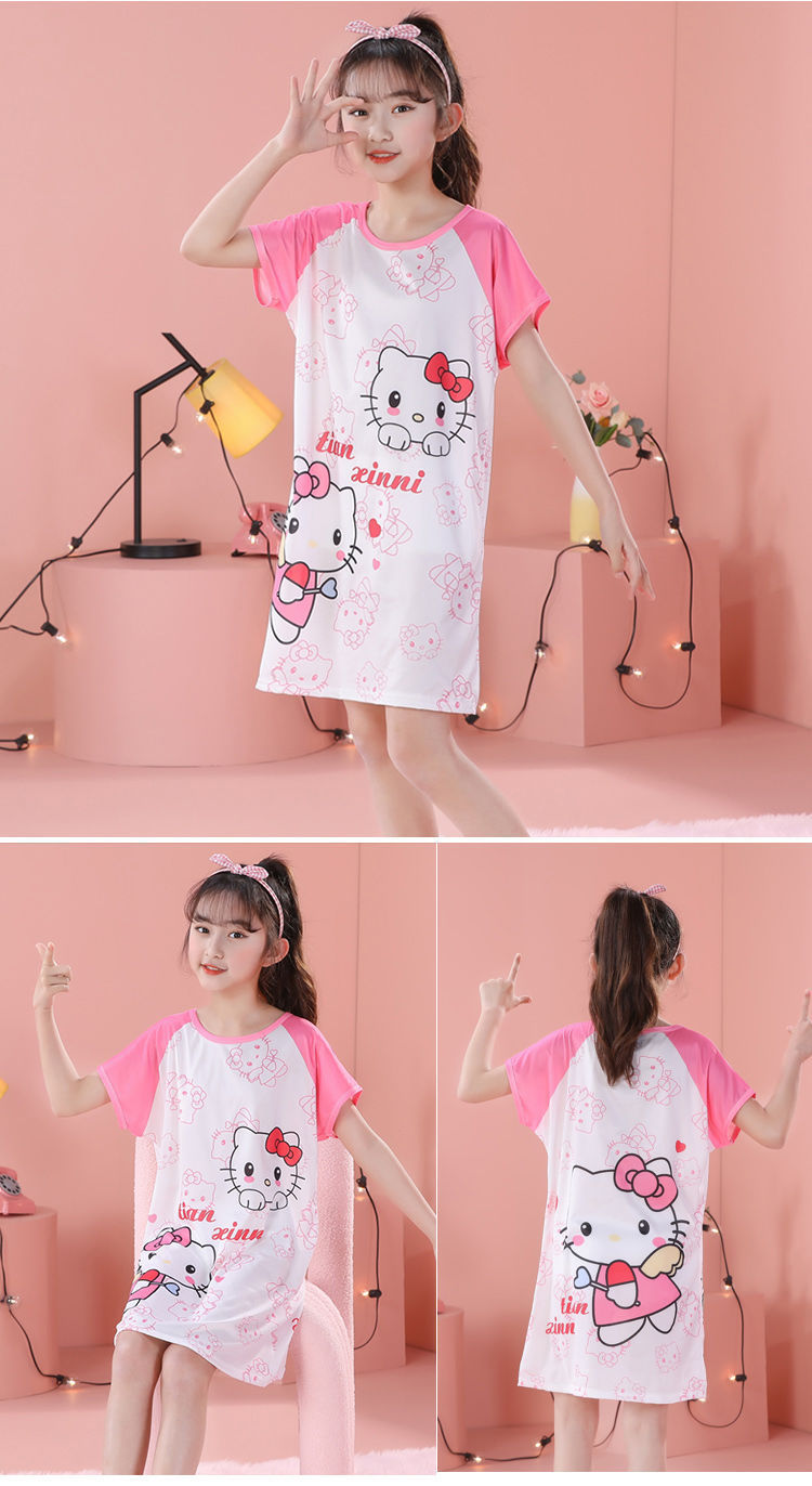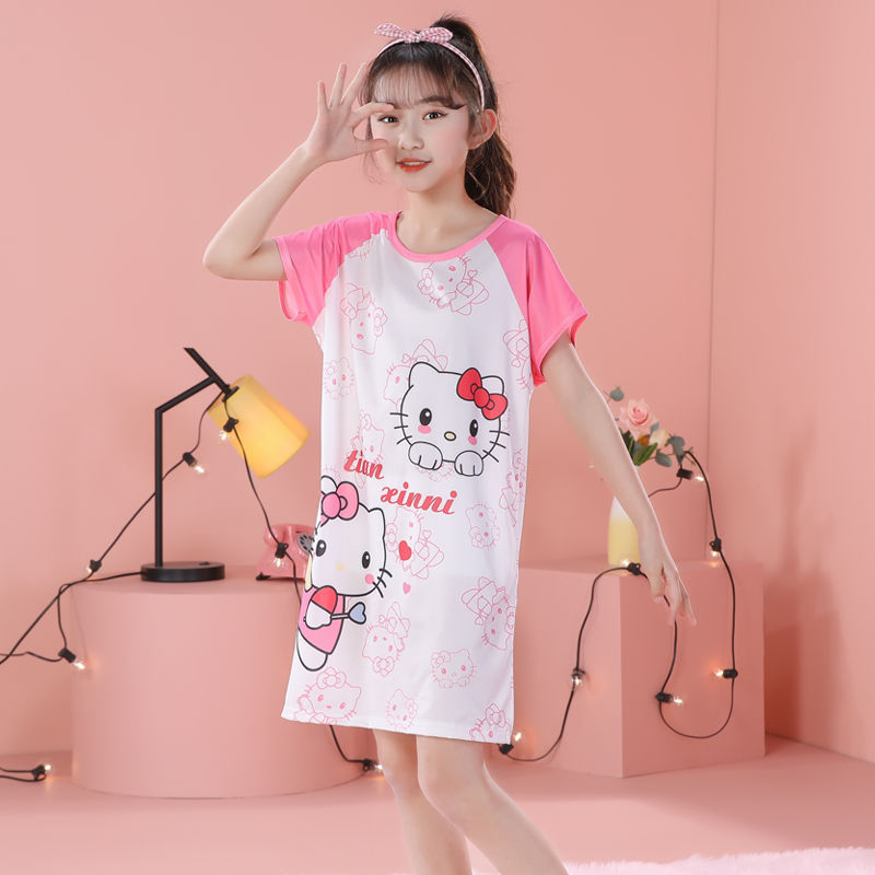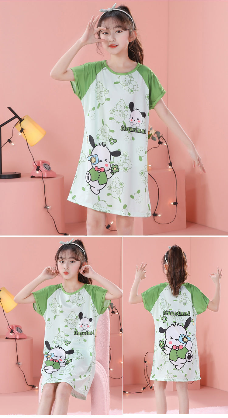 큰 어린이를위한 여름 얇은 반팔 소녀 잠옷 만화 스타일 Kuromi 아기 어린이 여름 공주 잠옷스토어 가기