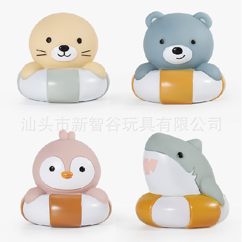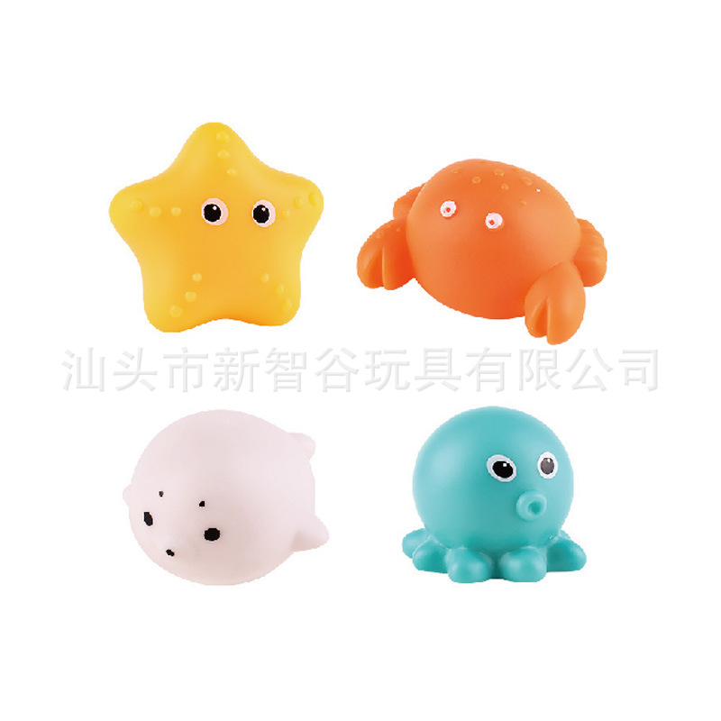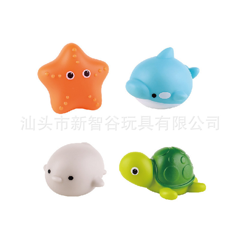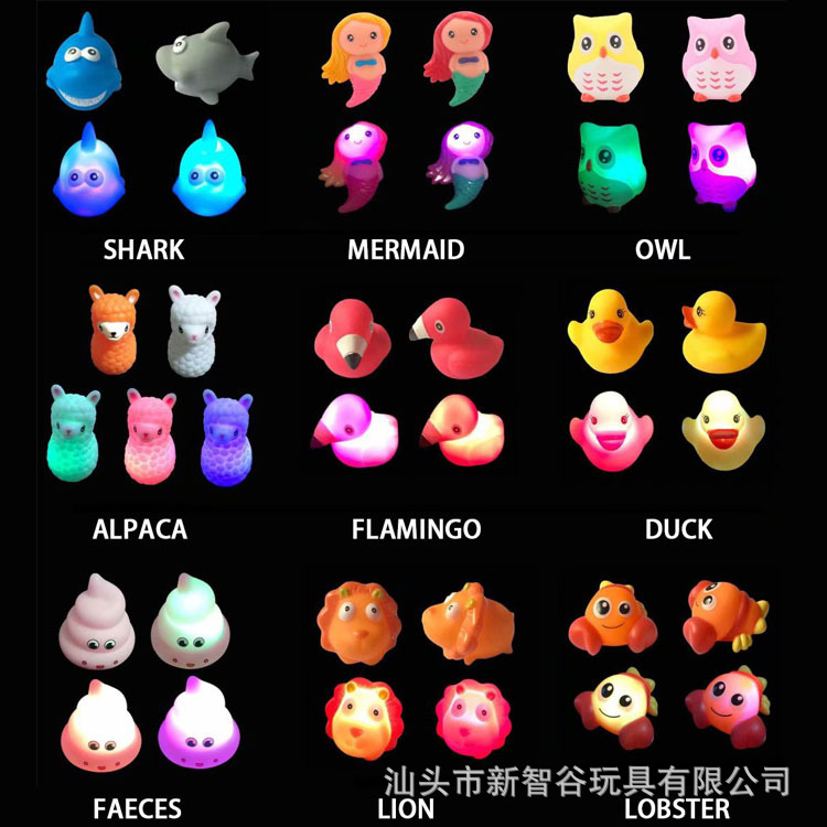 跨境宝宝洗澡玩具游泳圈动物触摸水感发光搪胶漂浮戏水灯玩具批发