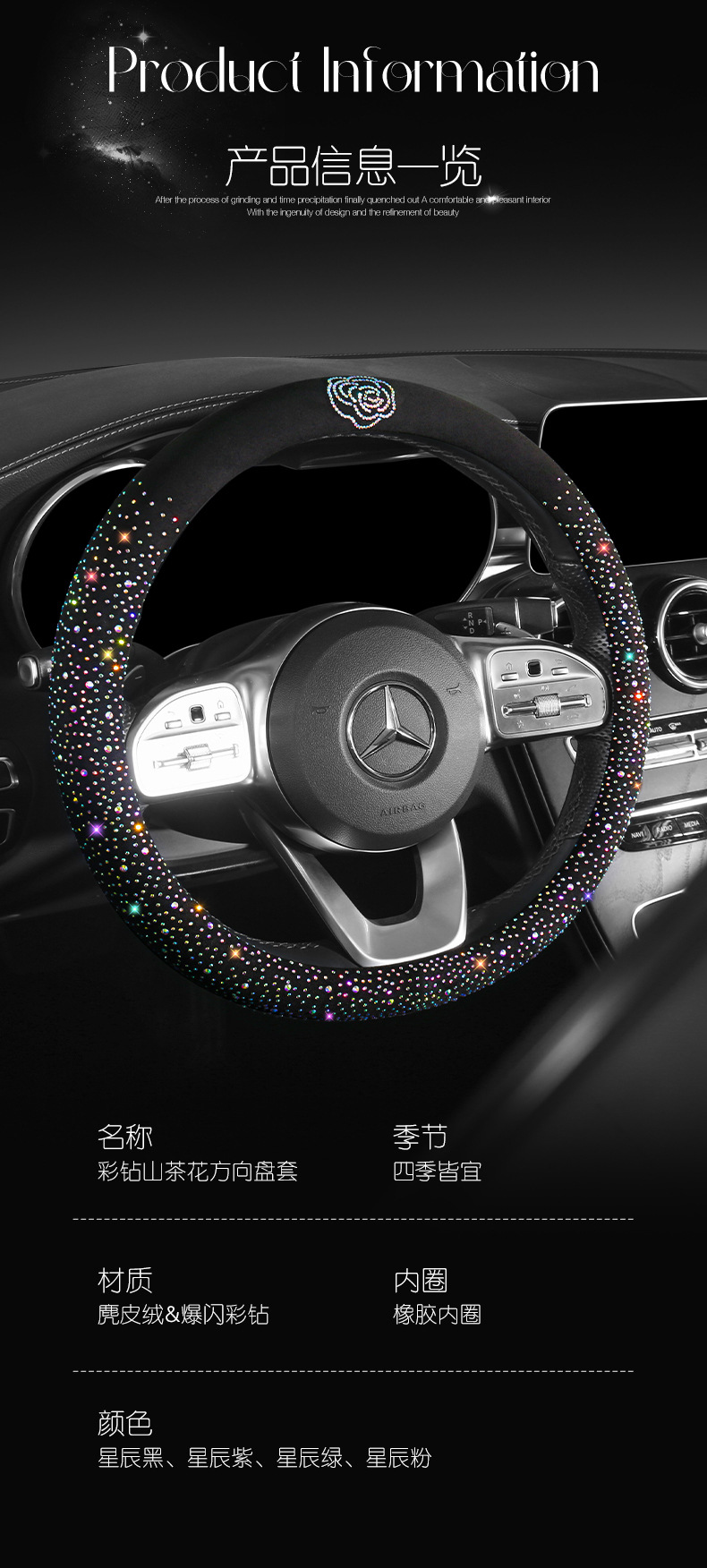 25년 내내 사용 가능한 호주산 워터다이아몬드 B형 통기성, 땀흡수, 미끄럼방지 자동차 핸들커버, 오염방지, 내마모성, 원형스토어 가기