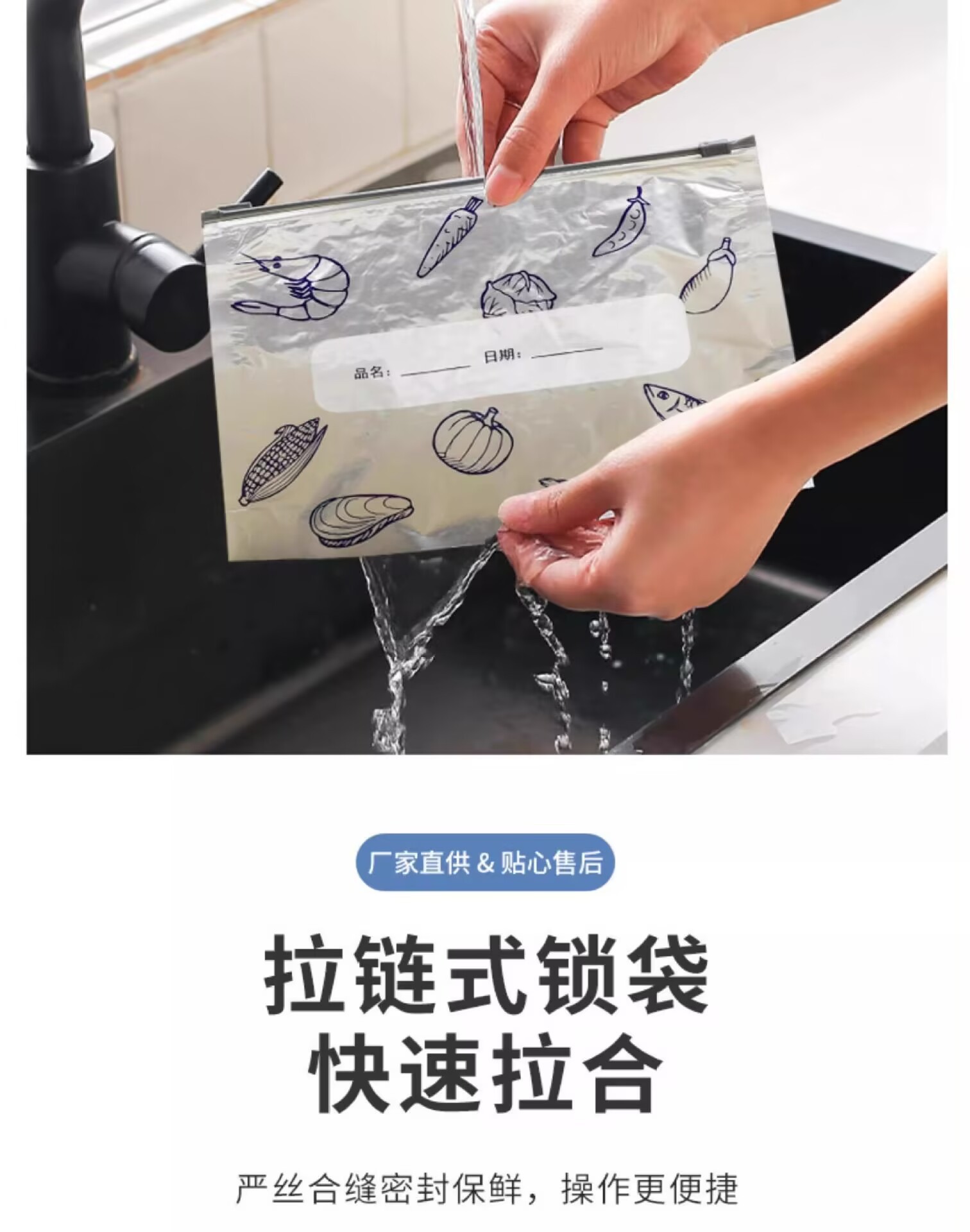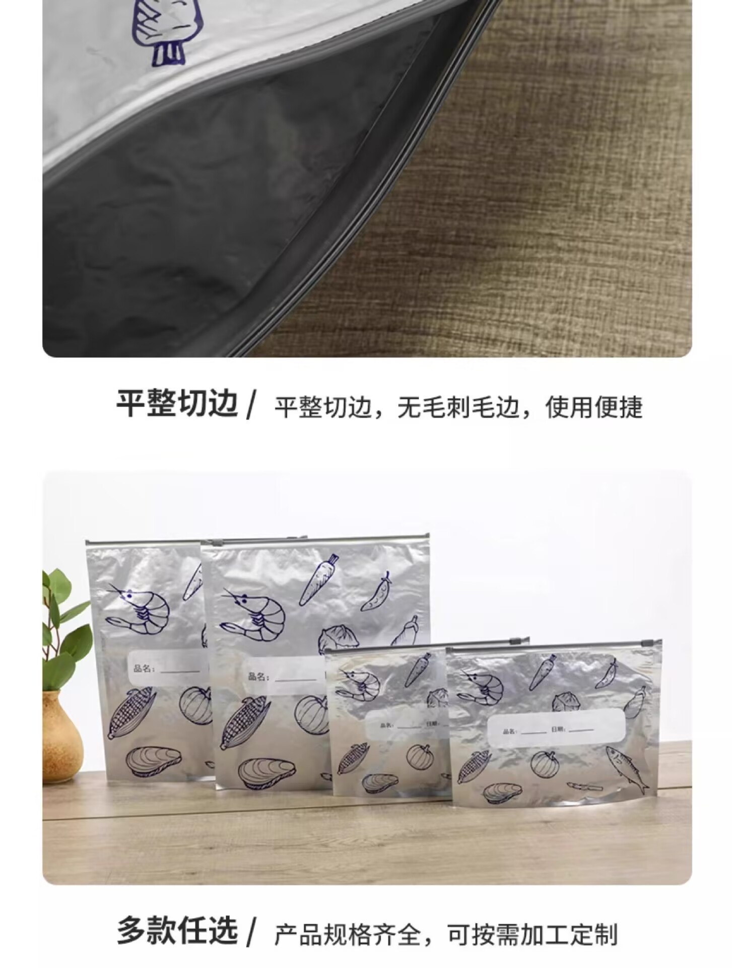 알루미늄 호일 두꺼운 신선도 유지 백 밀봉 식품 등급 가정용 냉장고 식품 냉동 보관 백【재사용 가능】