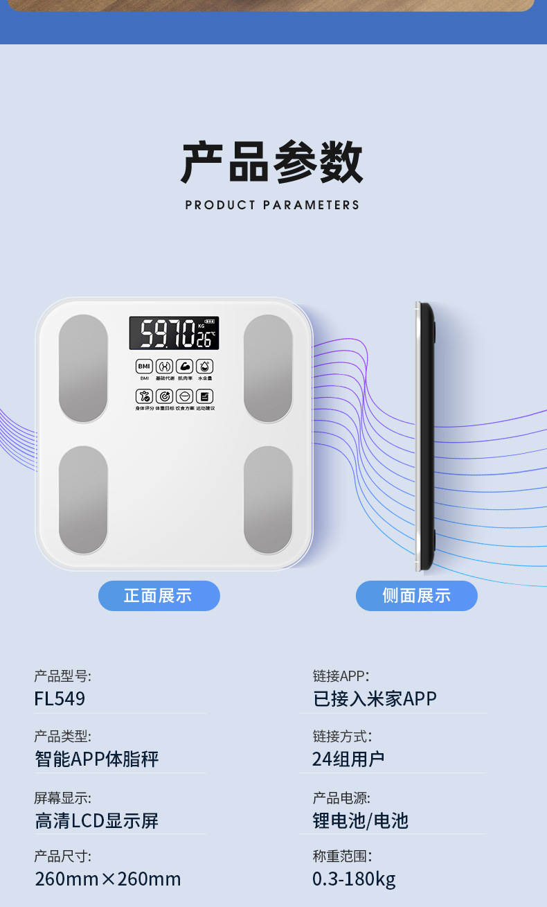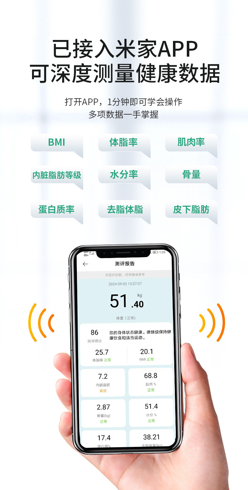 • 피아노 블랙 충전식 [체지방 측정기]가 Mijia 앱에 연결되었습니다.