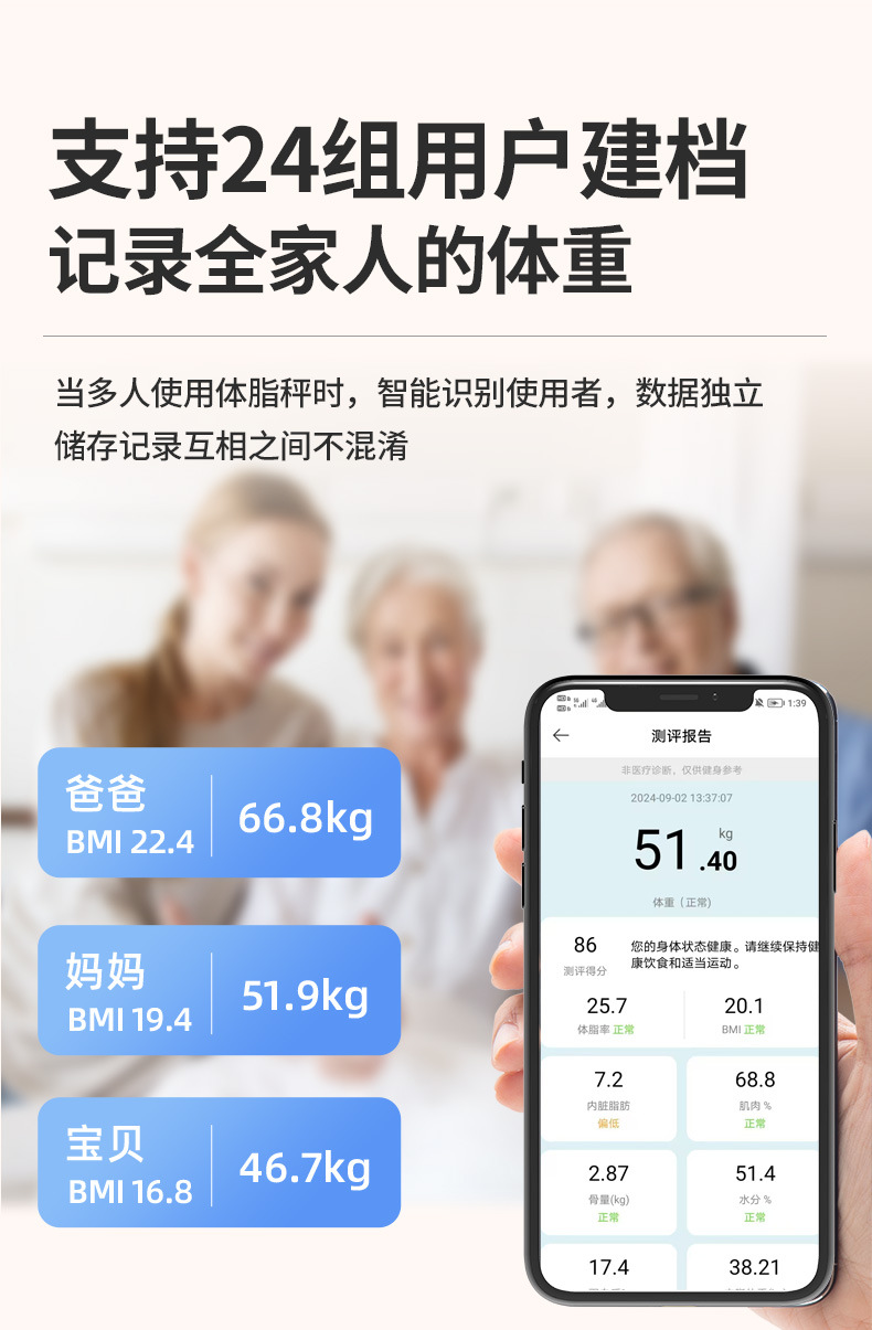 • 아이보리 화이트 충전식 모델 [체지방 측정기]가 Mijia APP에 연결되었습니다.