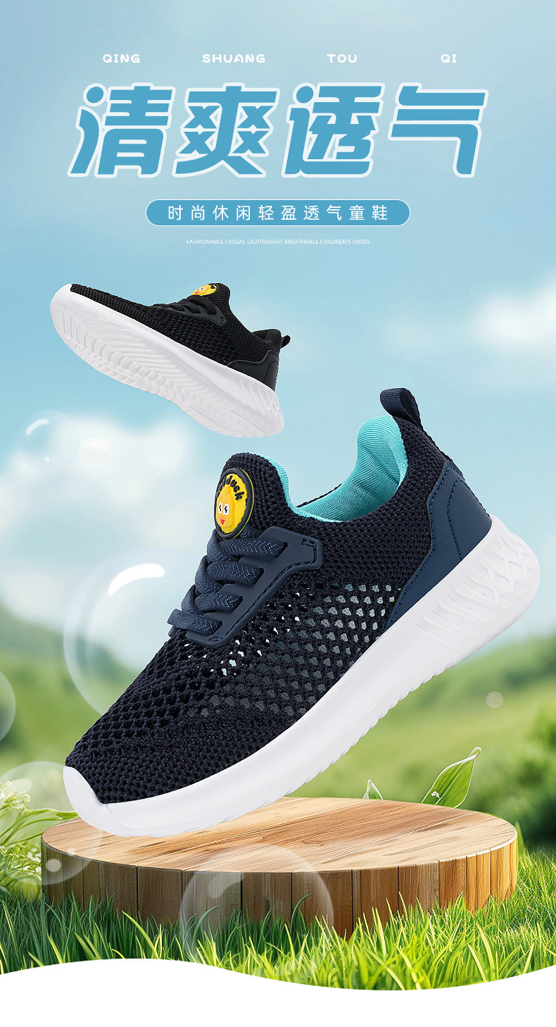 Little Yellow Duck 소년 신발 봄과 여름 2025 새로운 메쉬 어린이 싱글 메쉬 슬립 온 운동화 플라이 짠 통기성 스포츠 신발스토어 가기