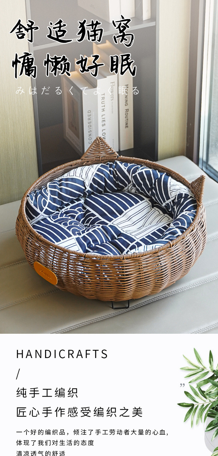 사계절 고양이둥지, 여름용 고양이둥지, 세탁 가능한 고양이 등나무둥지, 소형개둥지, 애완동물둥지