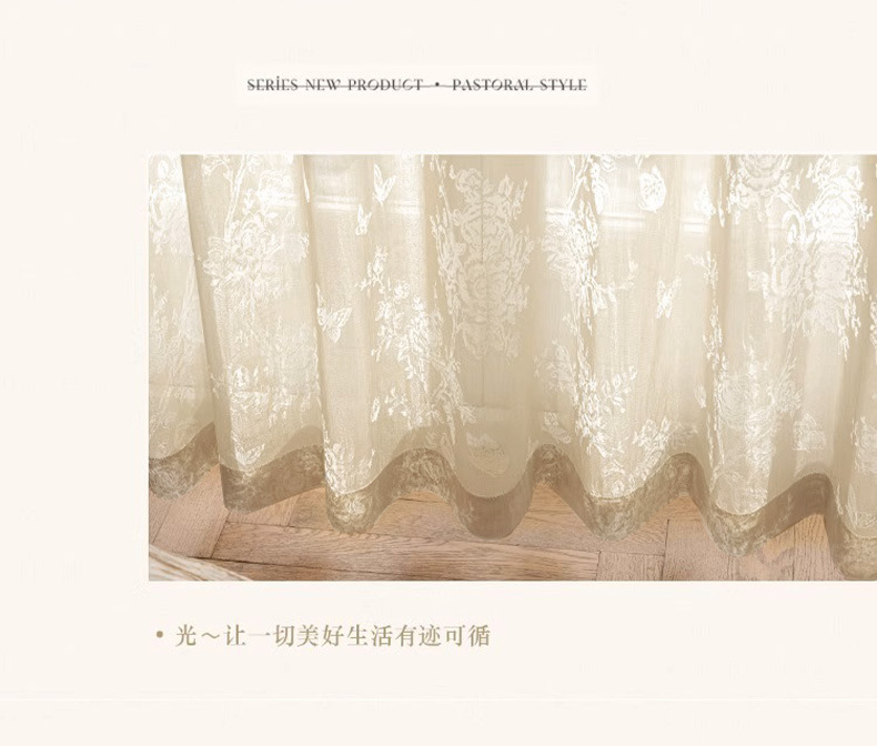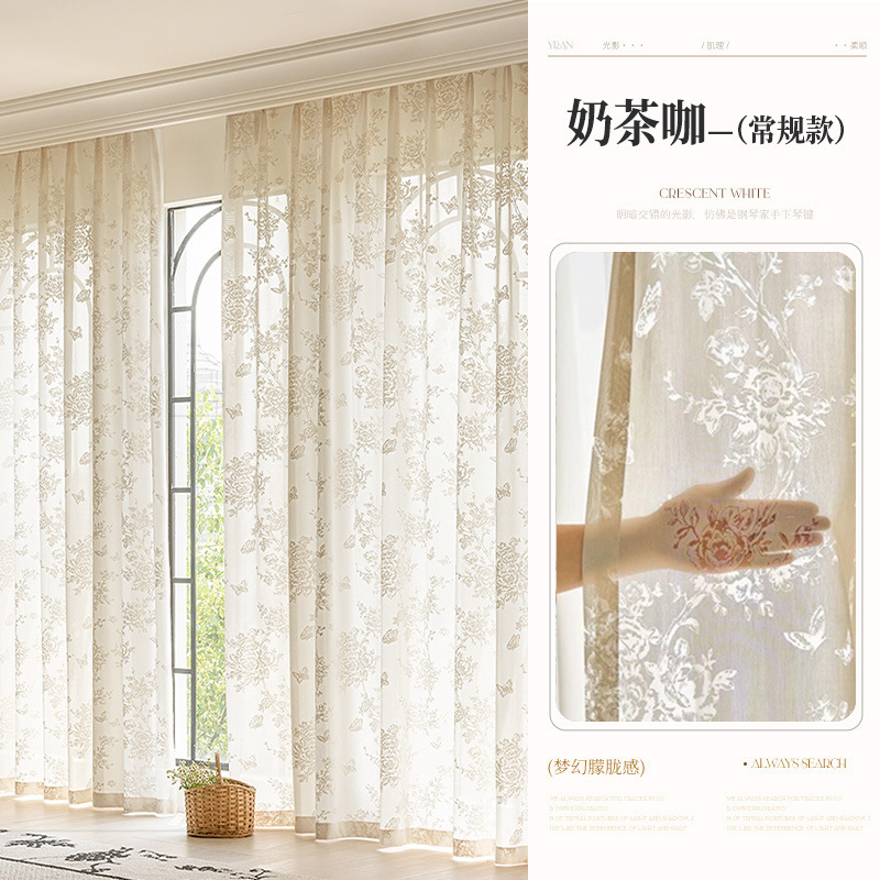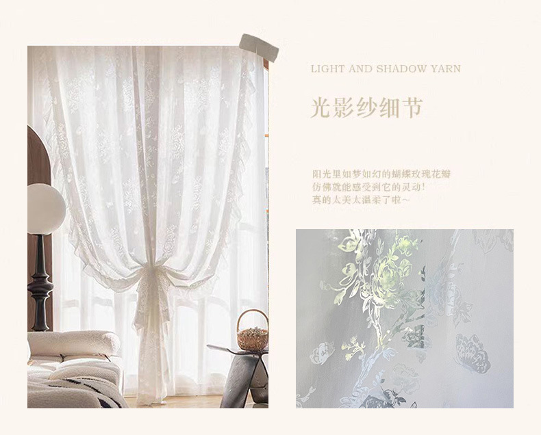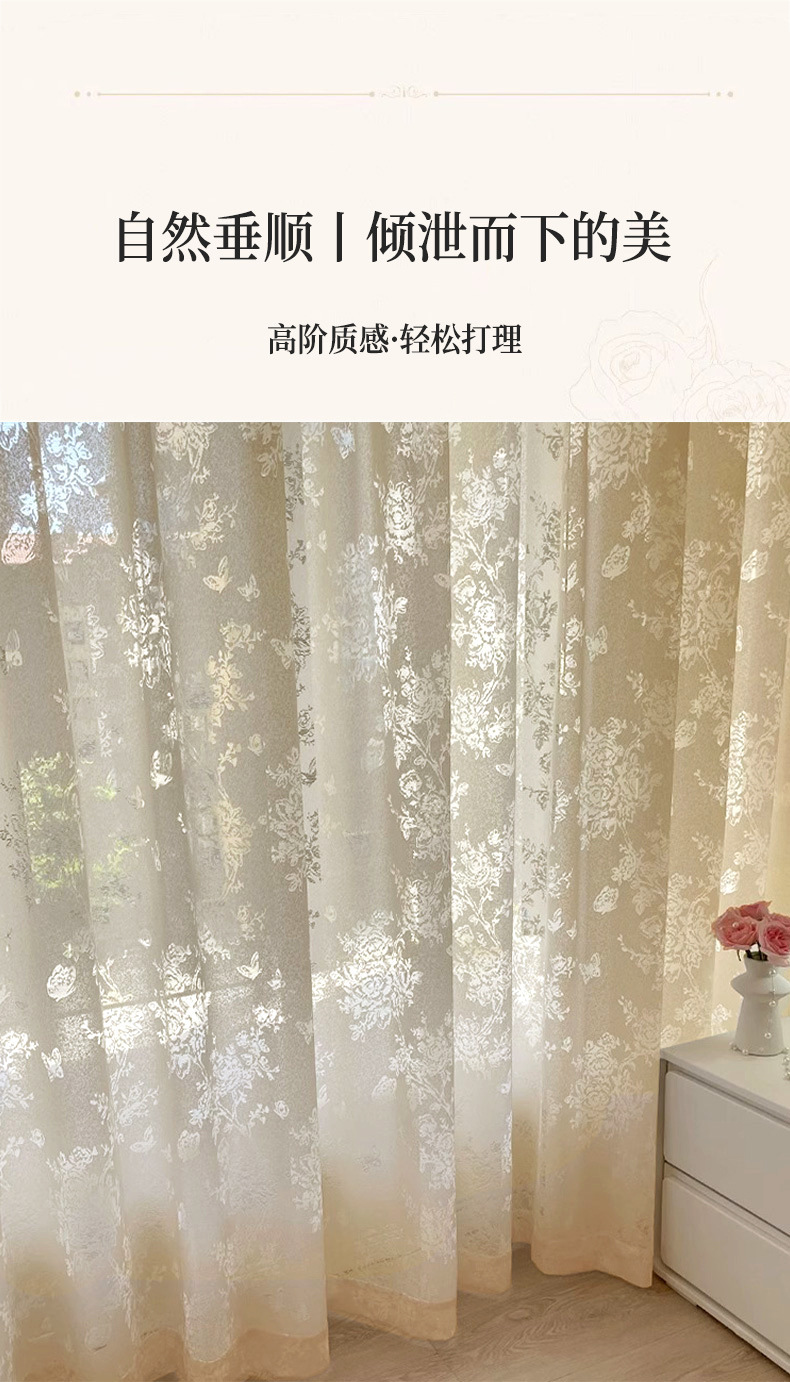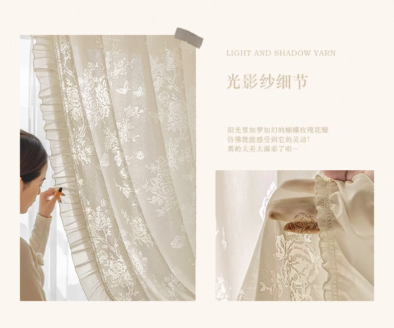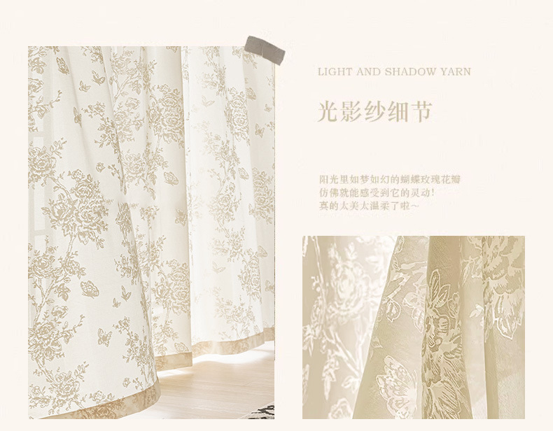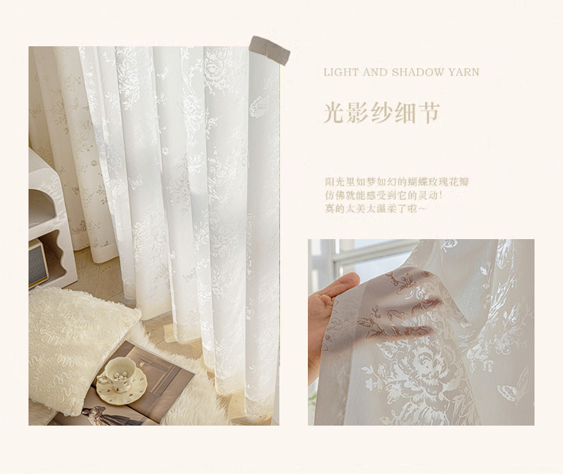 프랑스 빛 럭셔리 빛 퍼비지니스 나비 장미 창 화면 침실 거실 빈 빛과 그림자 효과 크림 윈드 거즈 커튼