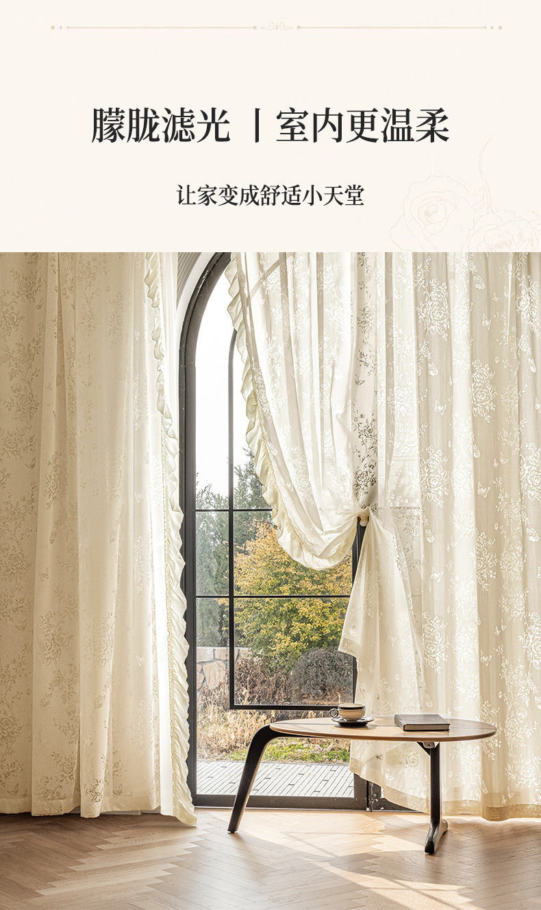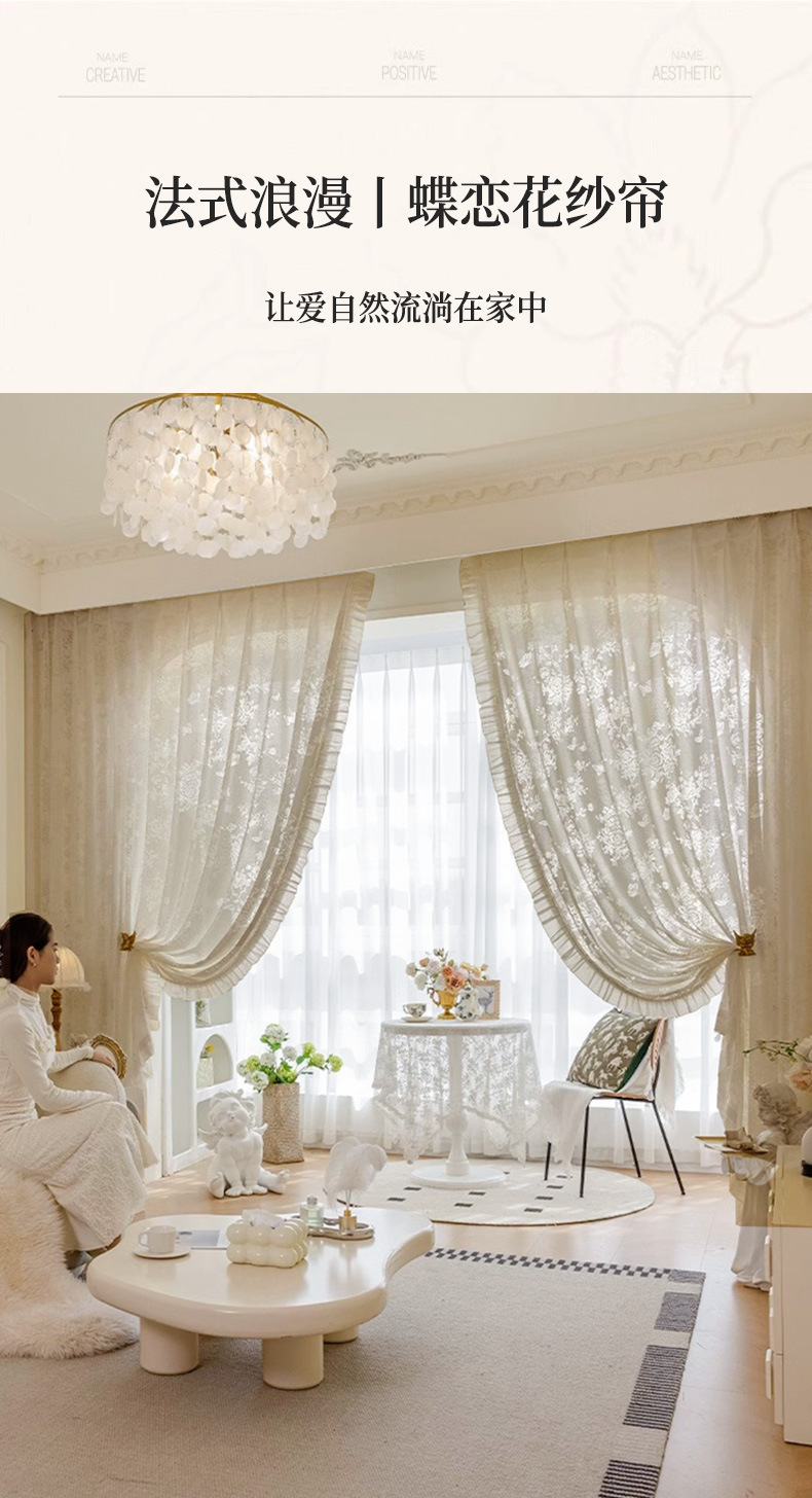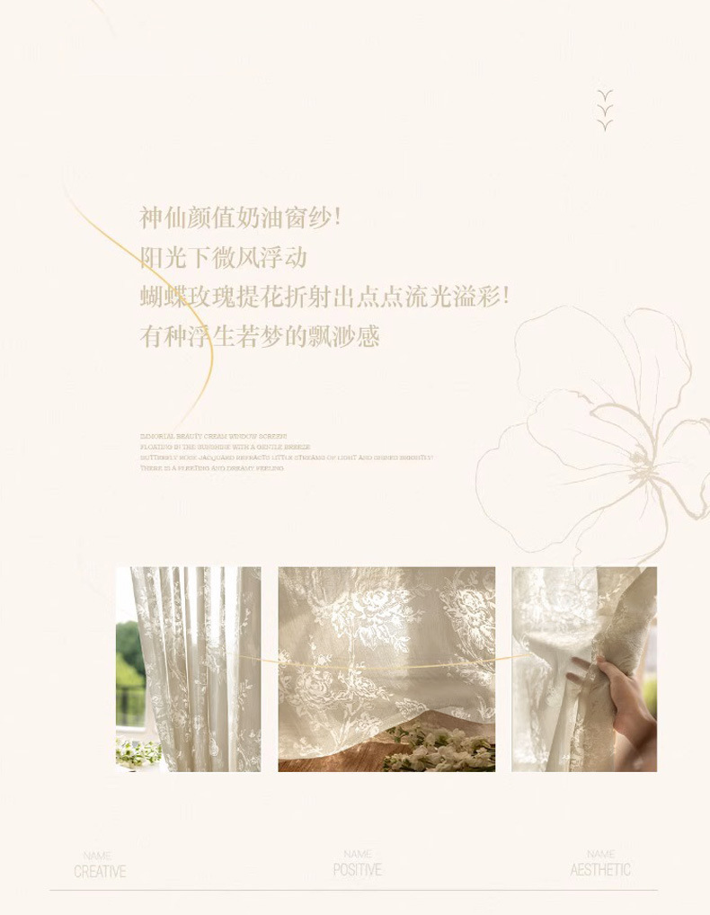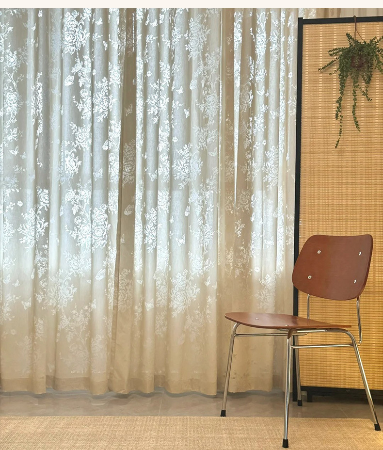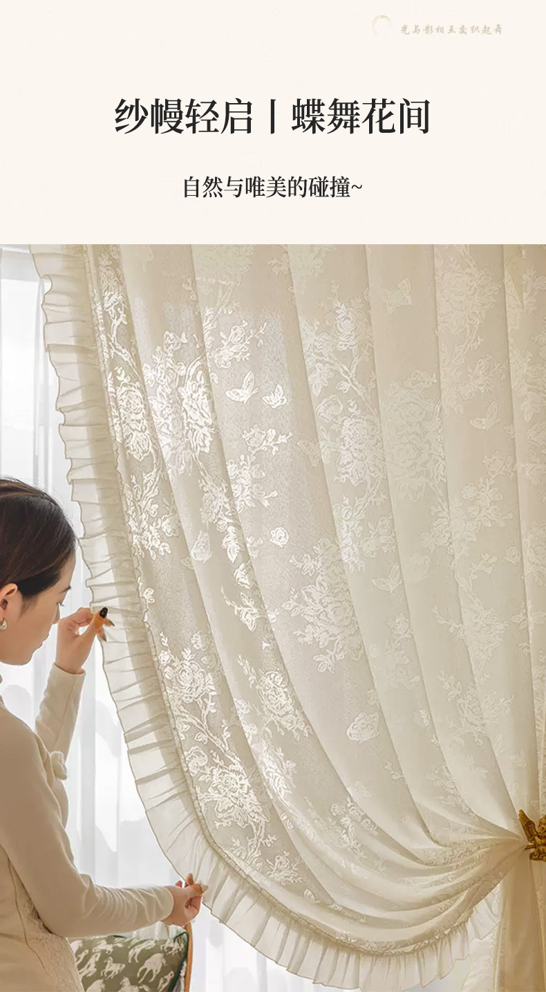 프랑스 빛 럭셔리 빛 퍼비지니스 나비 장미 창 화면 침실 거실 빈 빛과 그림자 효과 크림 윈드 거즈 커튼