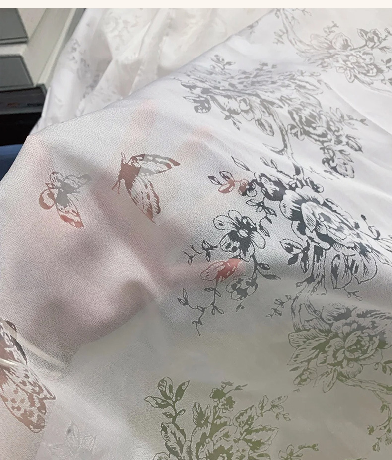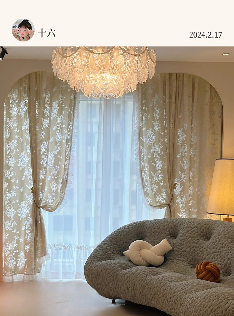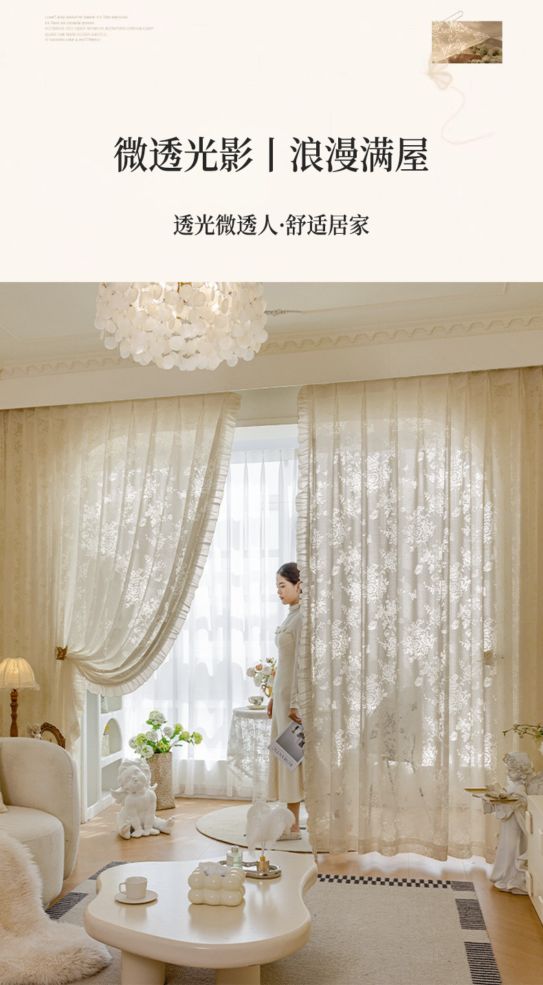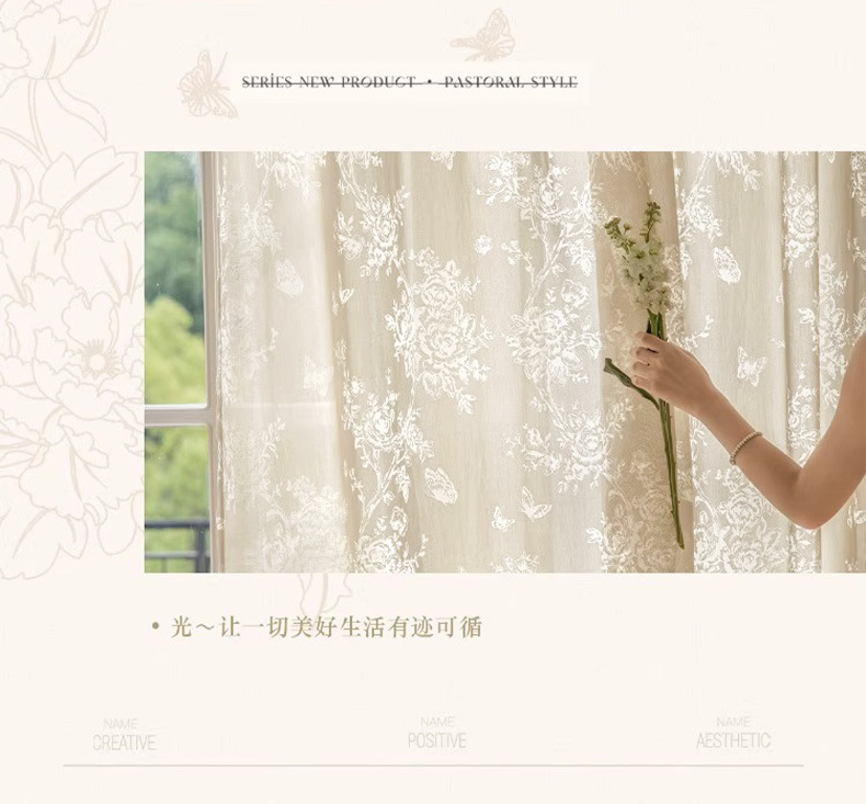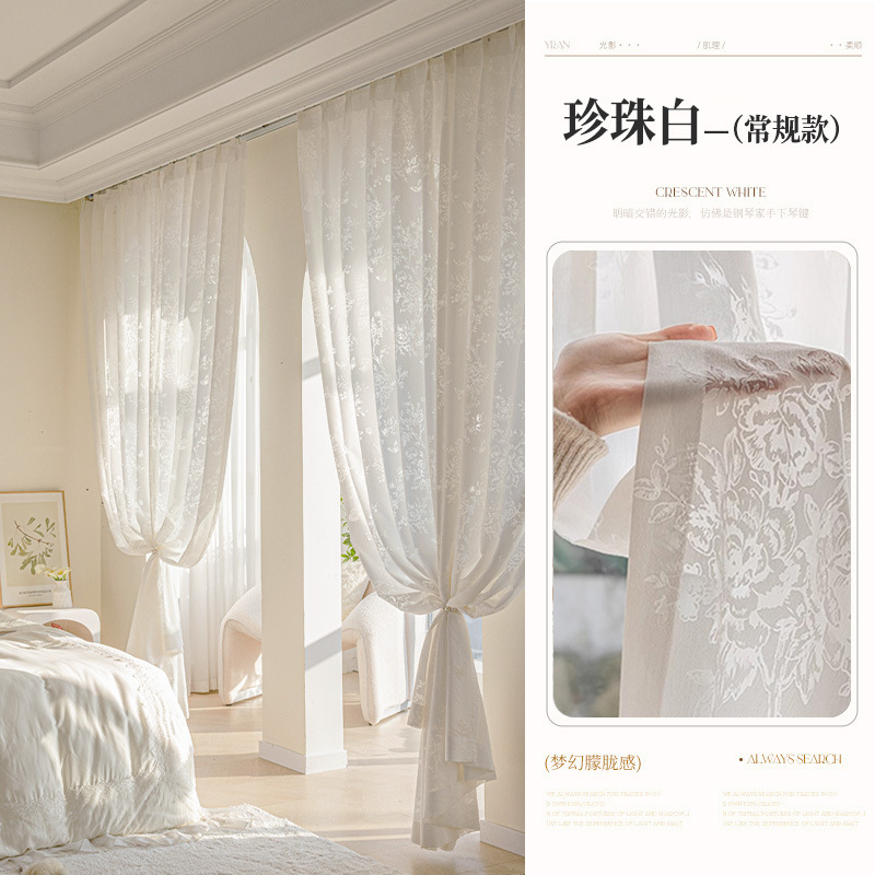 프랑스 빛 럭셔리 빛 퍼비지니스 나비 장미 창 화면 침실 거실 빈 빛과 그림자 효과 크림 윈드 거즈 커튼