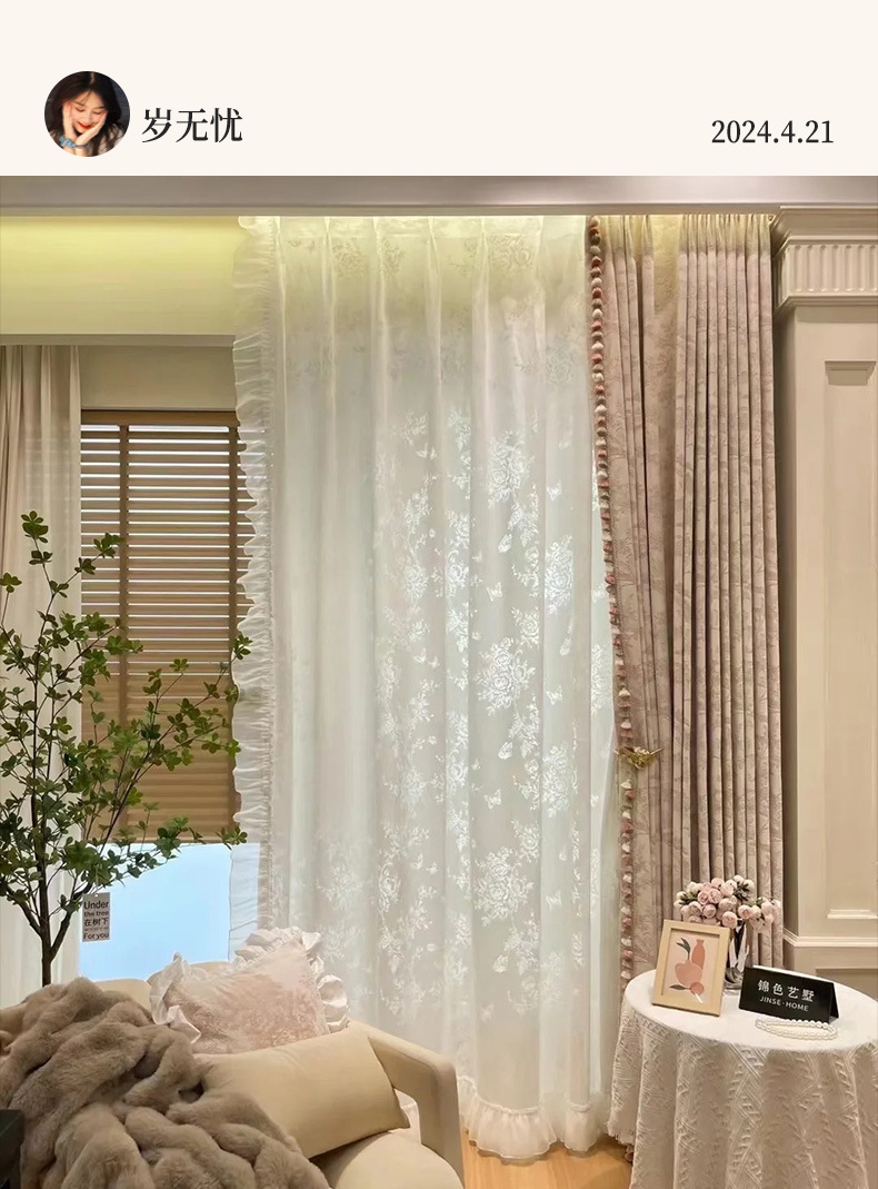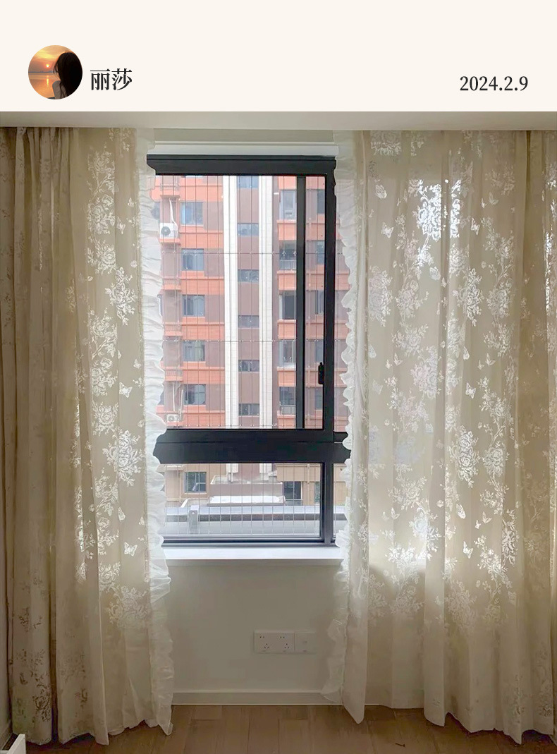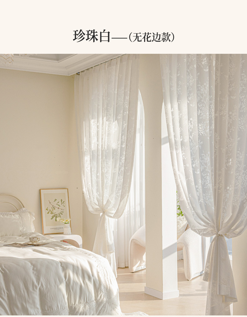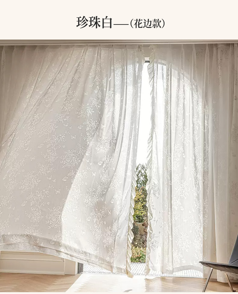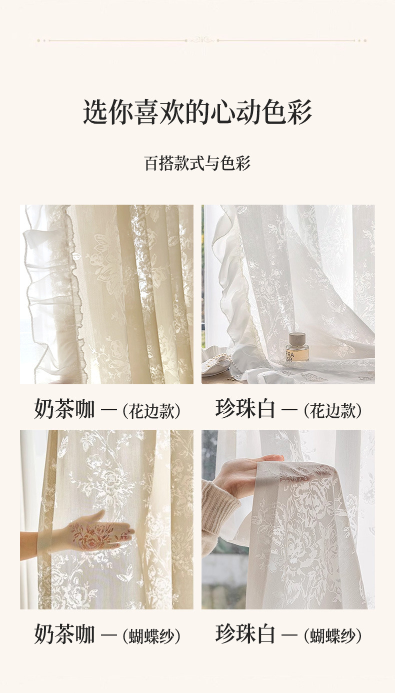 프랑스 빛 럭셔리 빛 퍼비지니스 나비 장미 창 화면 침실 거실 빈 빛과 그림자 효과 크림 윈드 거즈 커튼스토어 가기