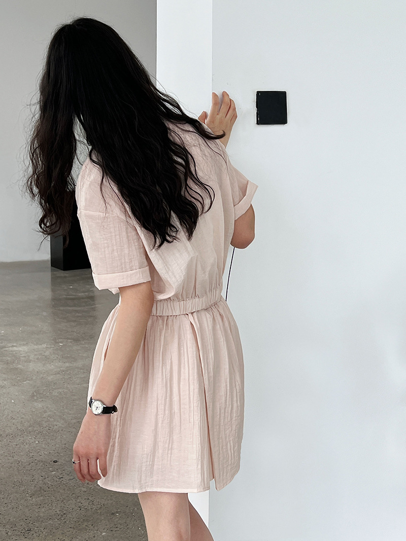 룩시 일본 간단한 반팔 셔츠 와이드 레그 투피스 세트 여성 여름 새로운 통근 레저 세트 8748스토어 가기