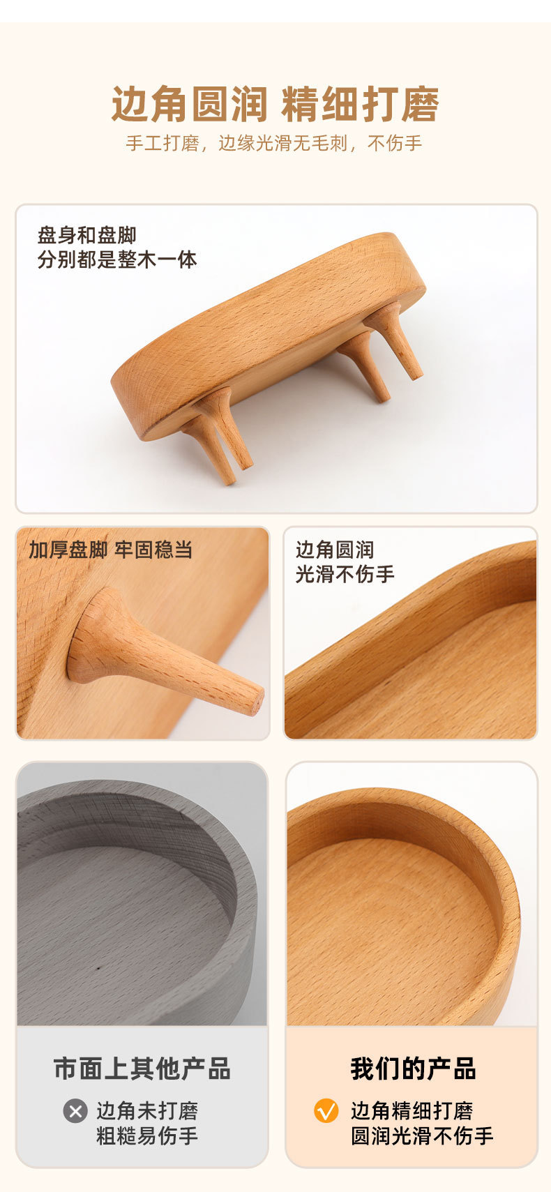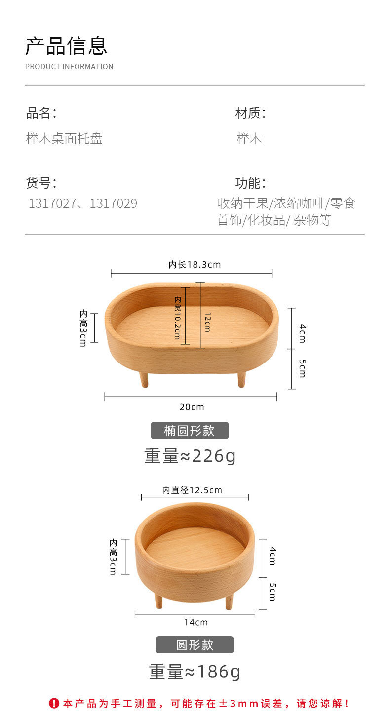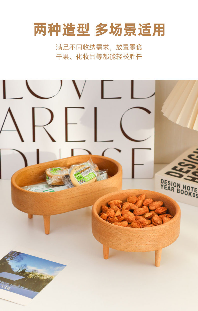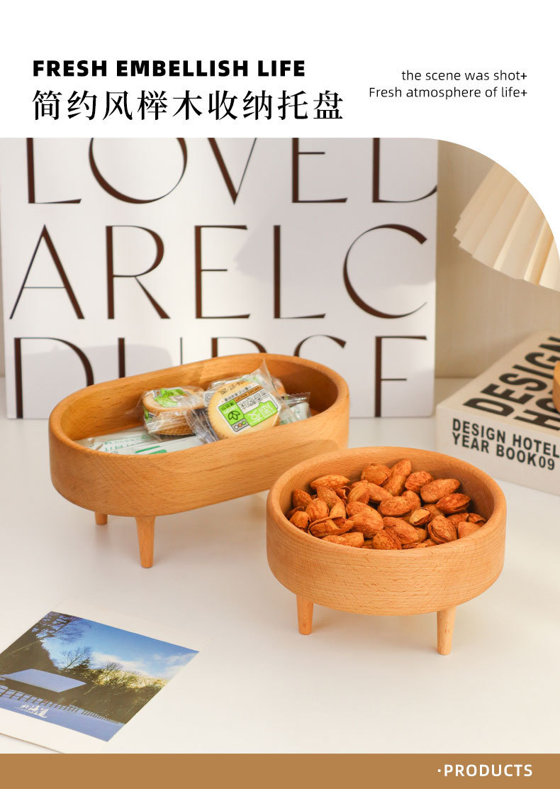 榉木椭圆形四腿收纳盘: