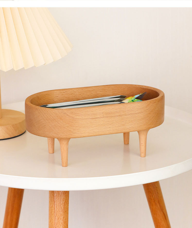 • 너도밤나무 타원형 4개 다리 수납 트레이