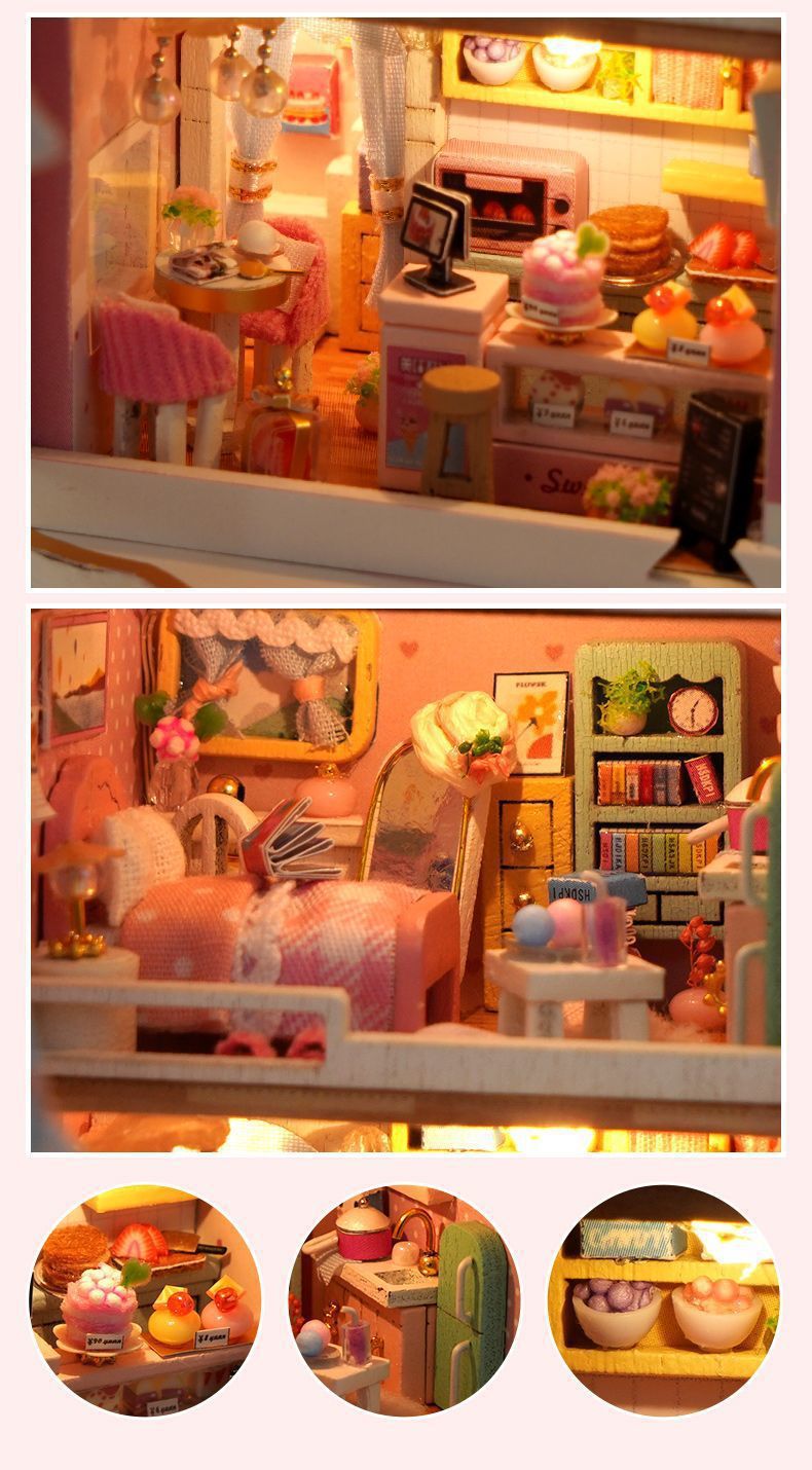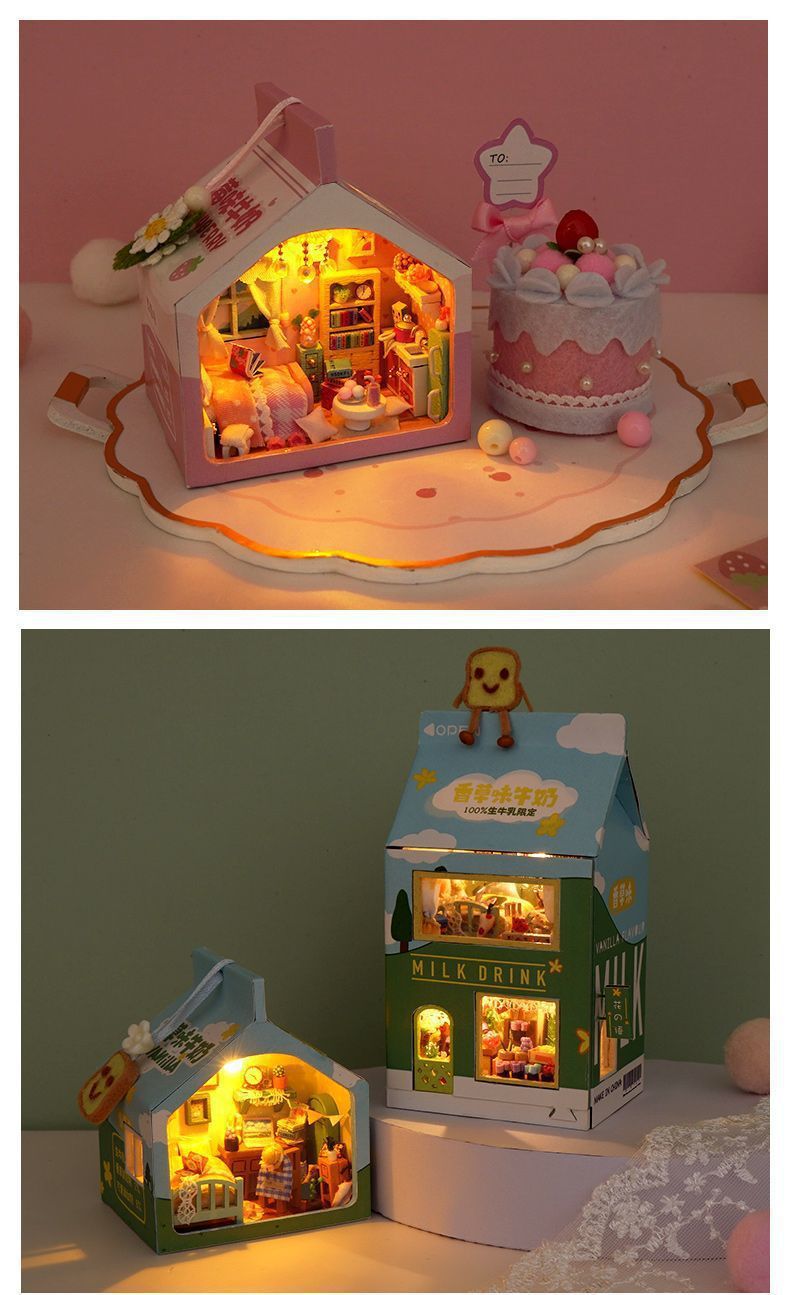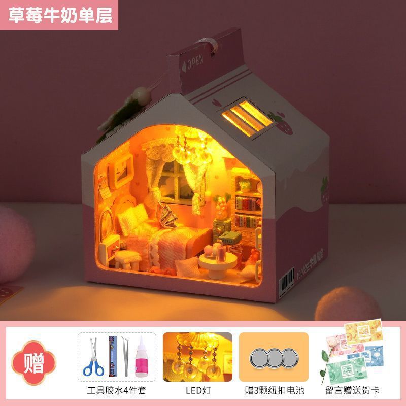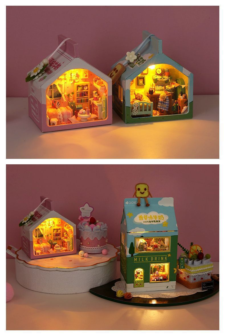 소형 장면 diy 캐빈 건물 조립 장난감 소녀와 남자 친구를위한 미니 작은 집 모델 생일 선물스토어 가기