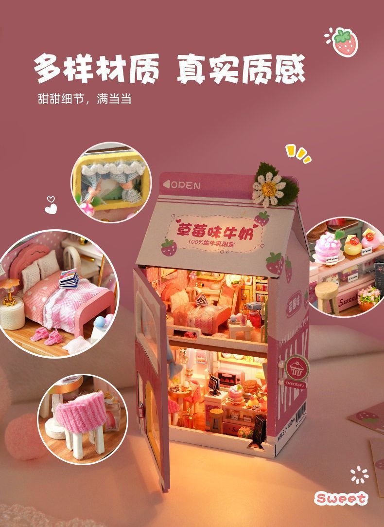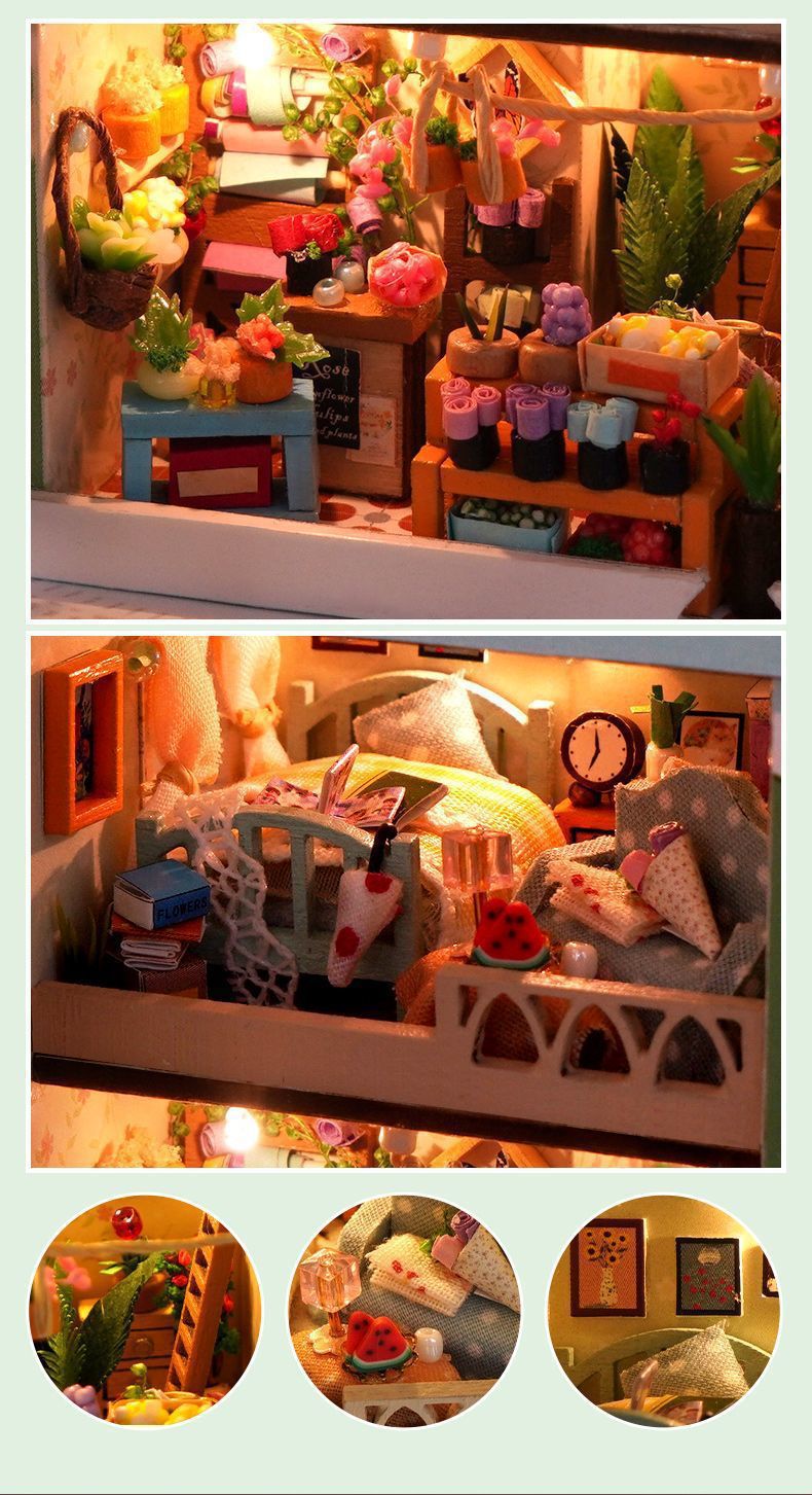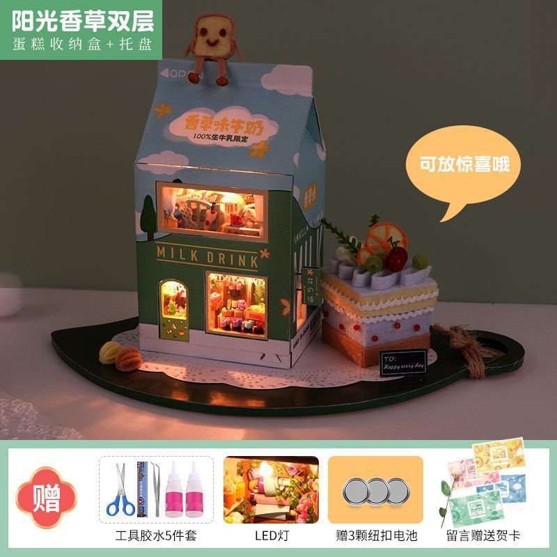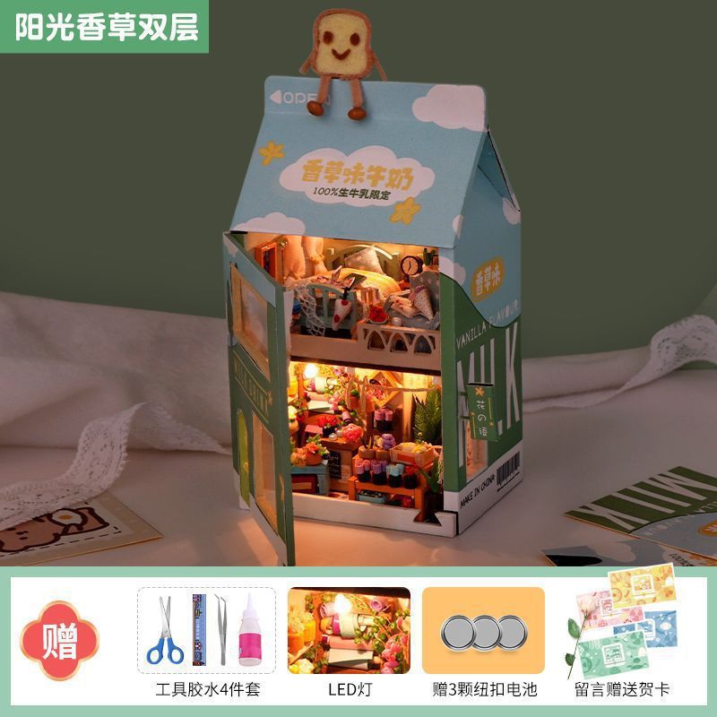 소형 장면 diy 캐빈 건물 조립 장난감 소녀와 남자 친구를위한 미니 작은 집 모델 생일 선물스토어 가기