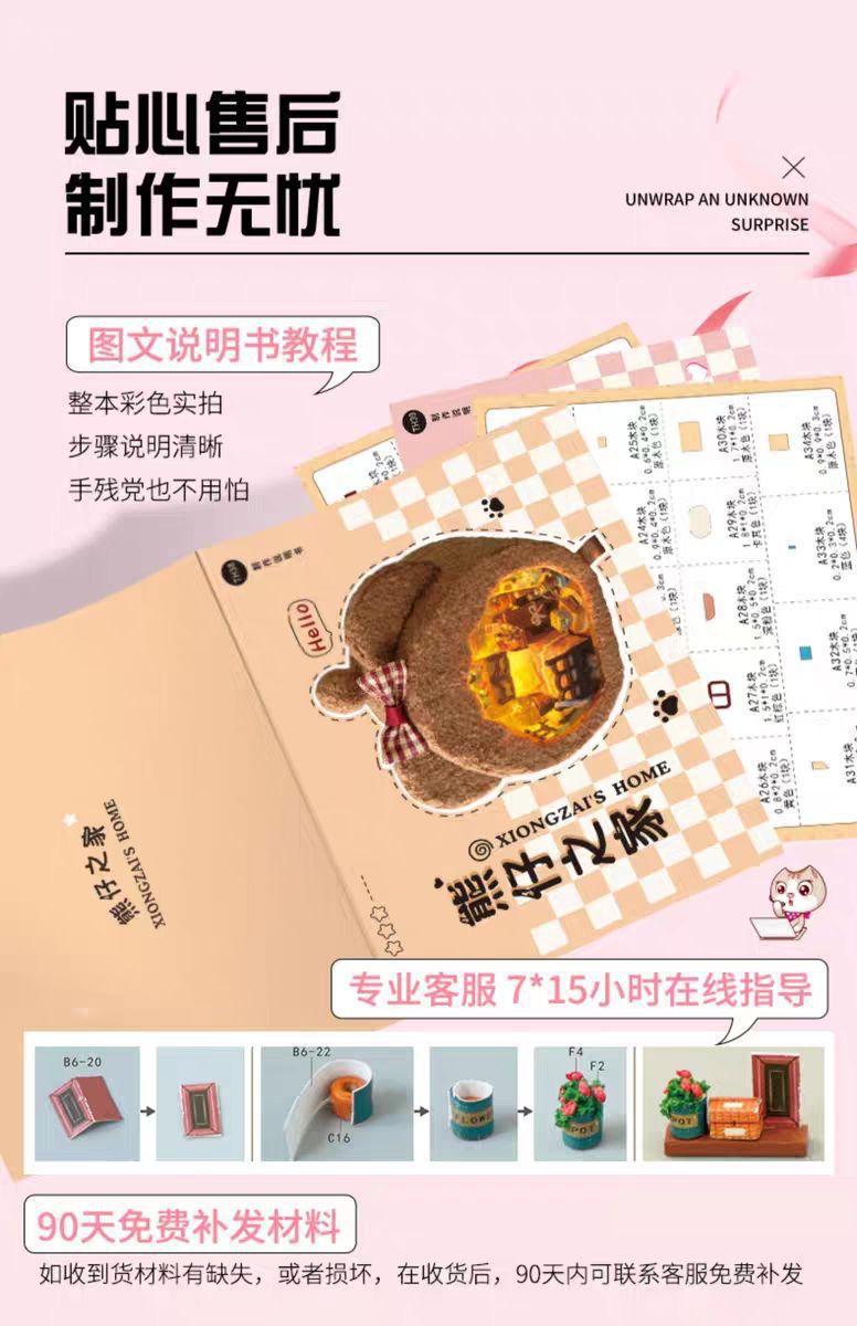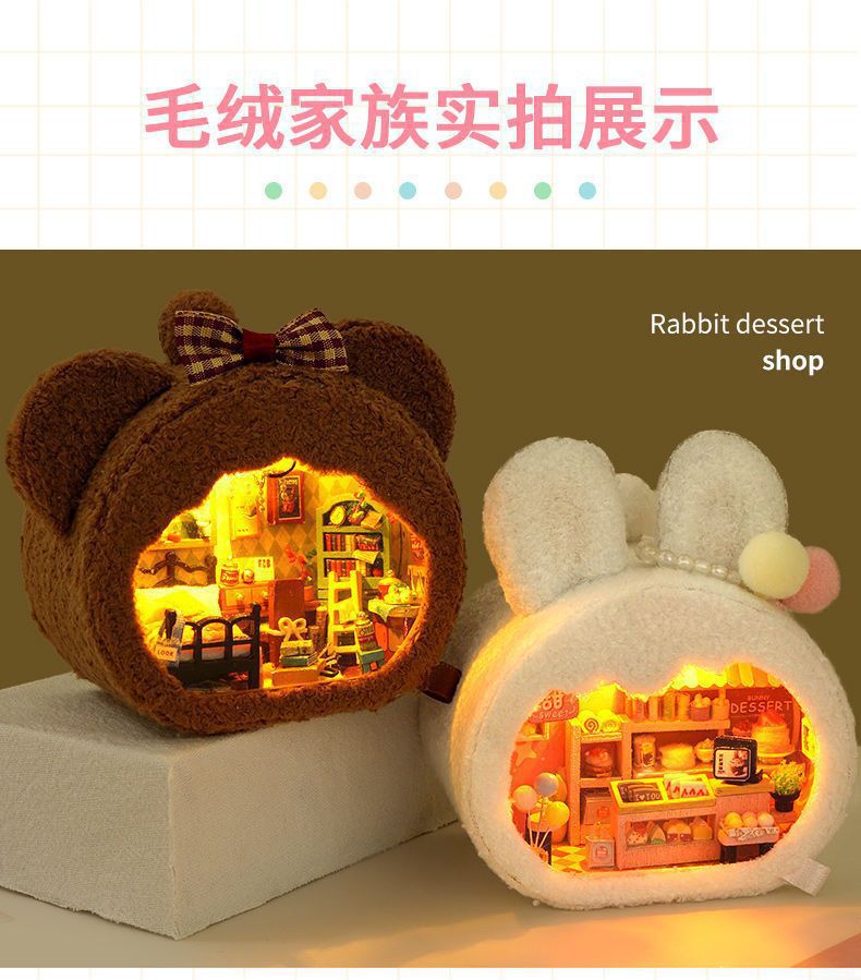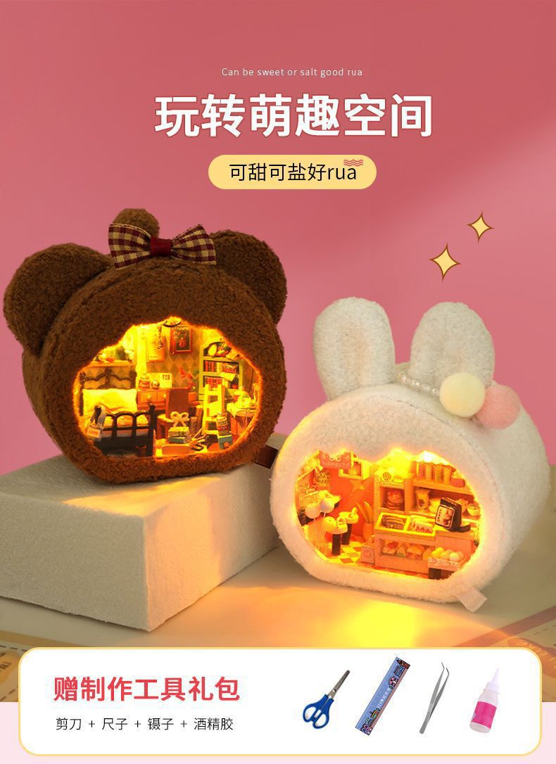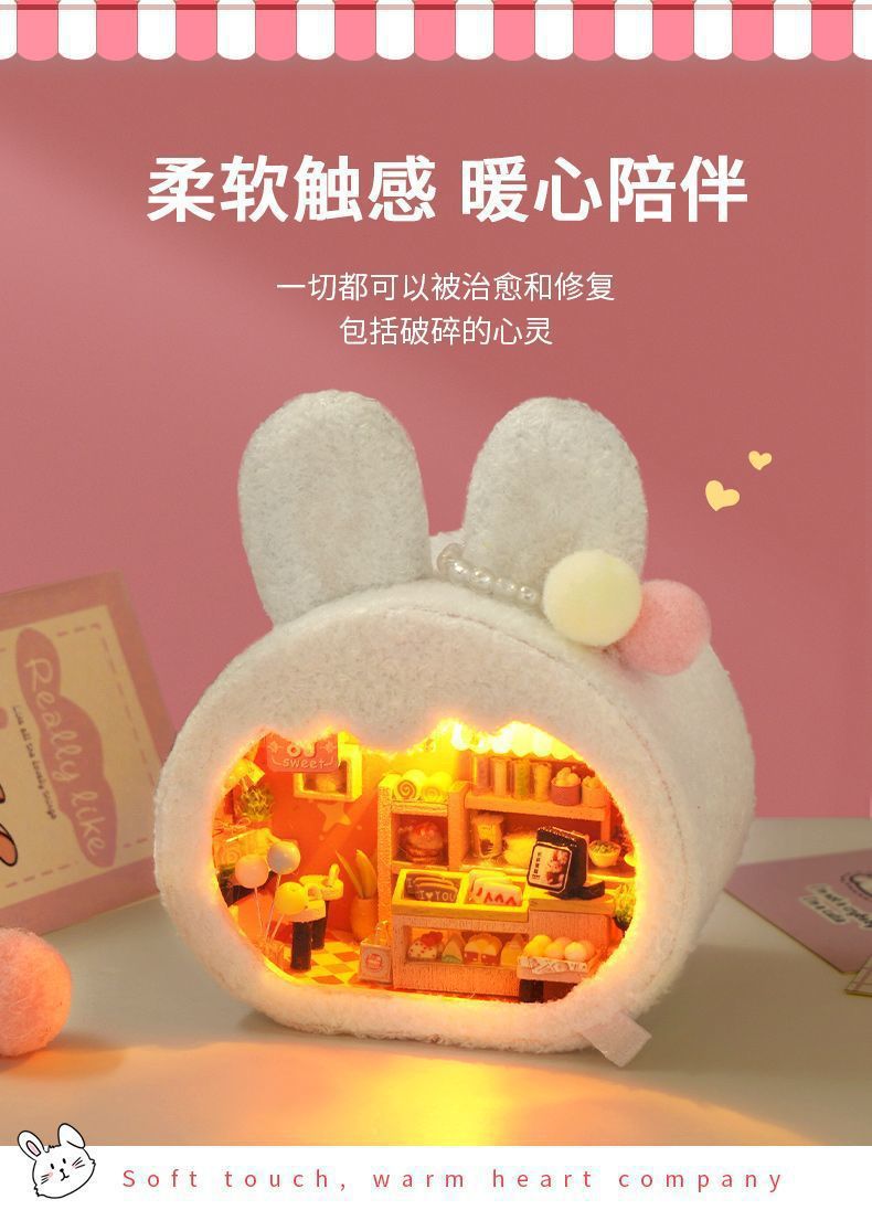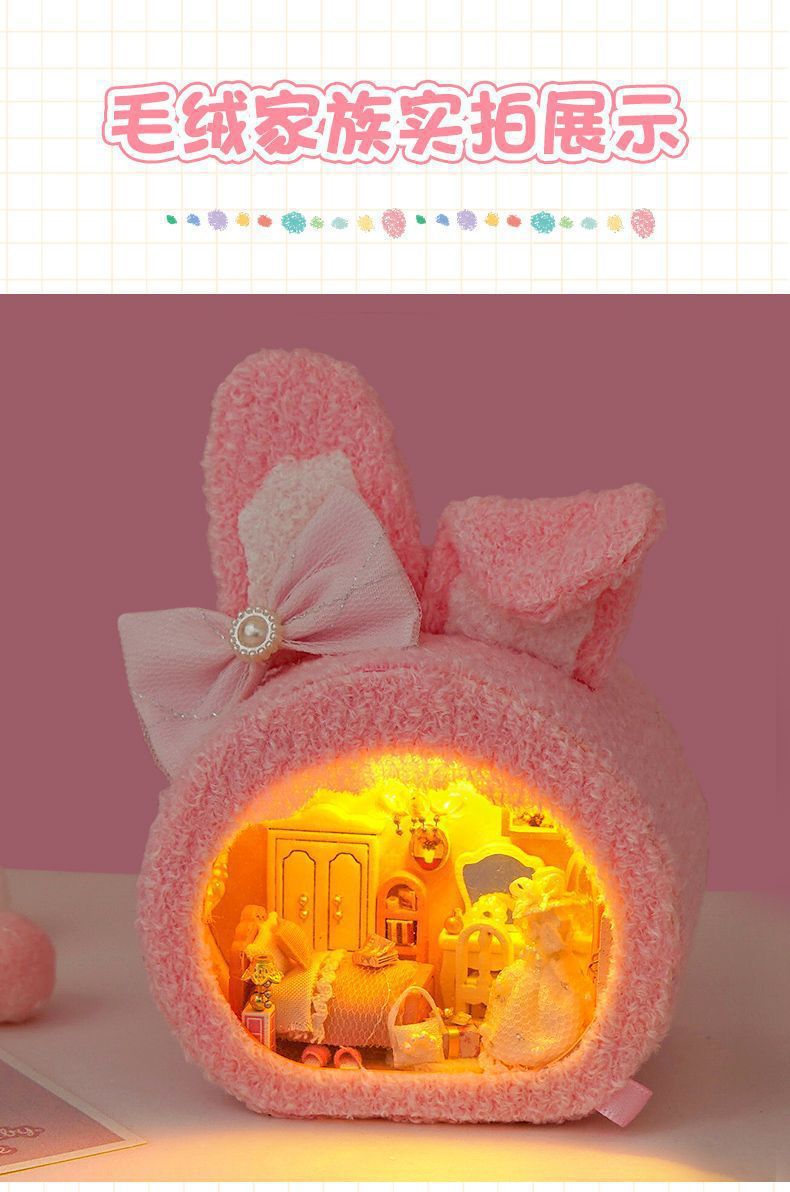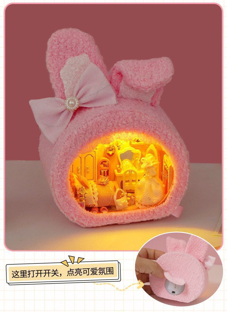 • [선물 상자 모델] 핑크 토끼 집 + 공업용 접착제 + 램프 + 선물 상자