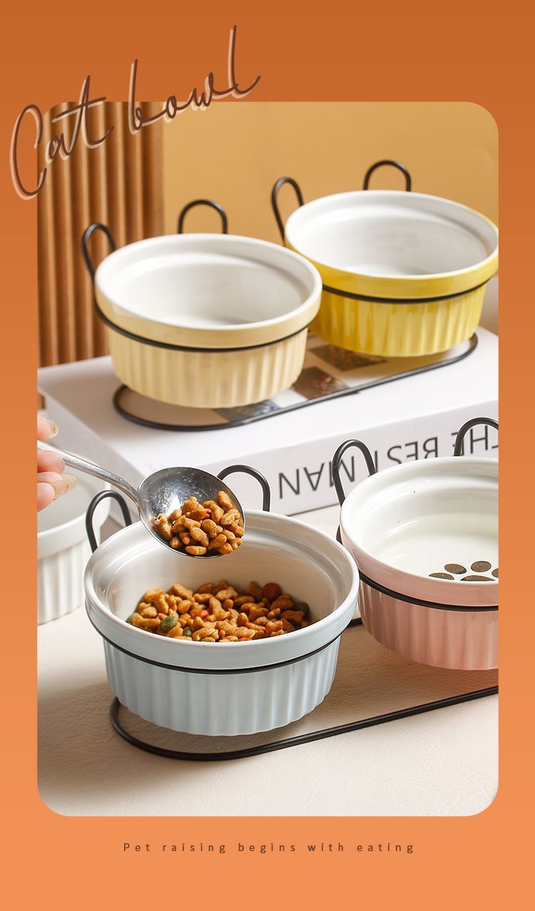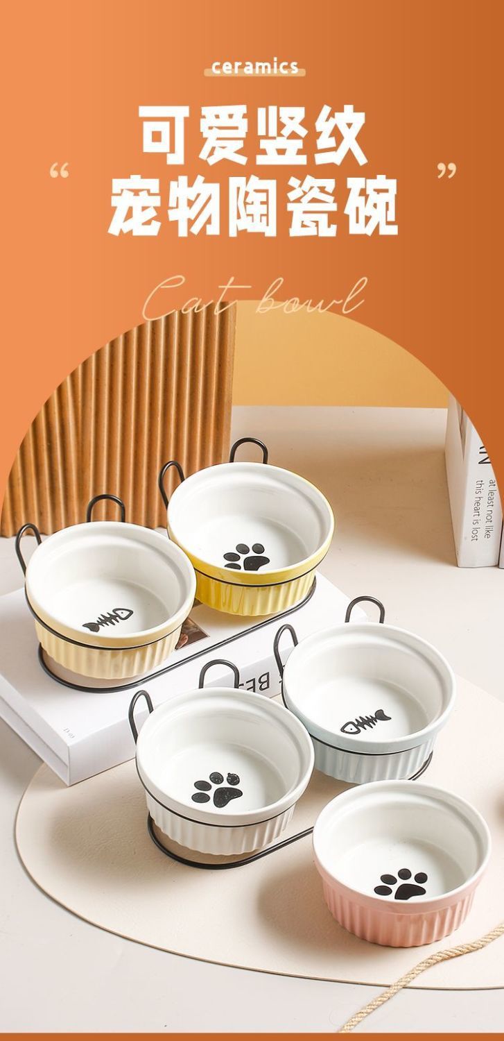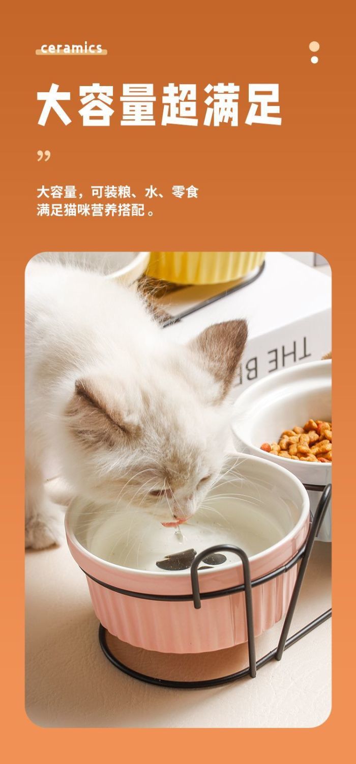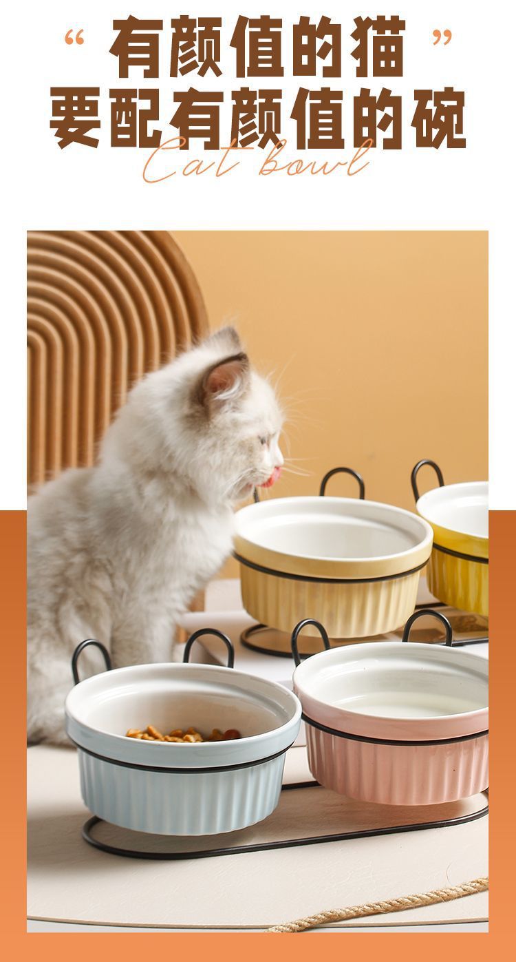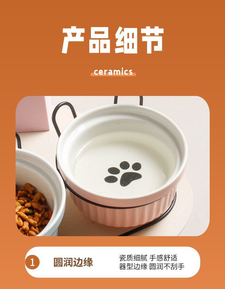 목 보호 세라믹 애완 동물 그릇 대구경 미끄럼 방지 검은 턱 방지 고양이 및 개 식품 그릇 분리형 탈착식 및 세척 가능 가정용스토어 가기