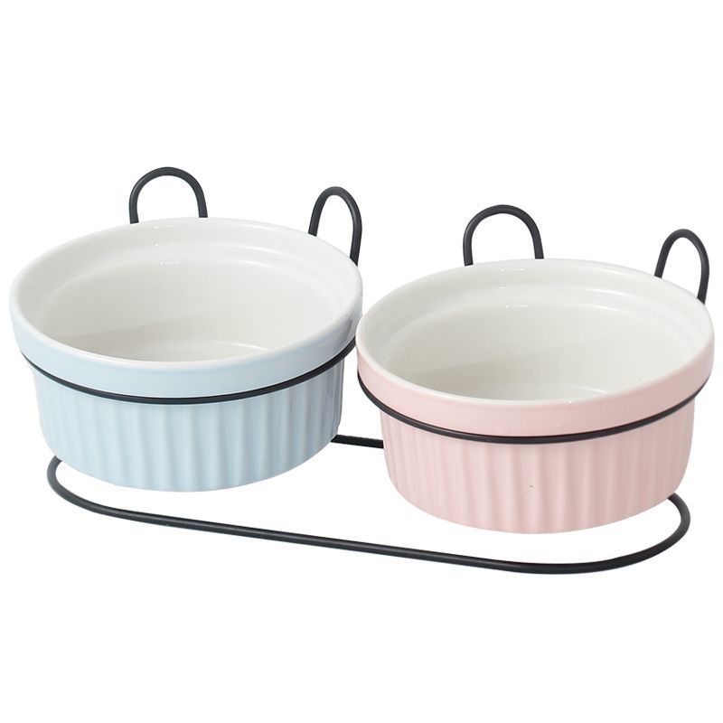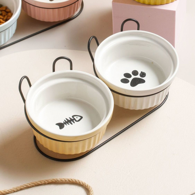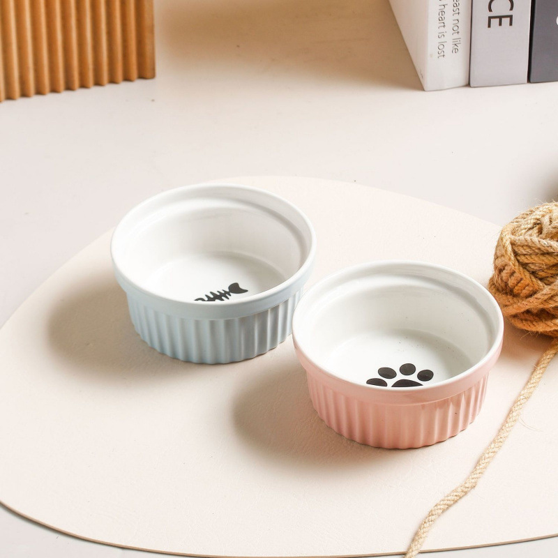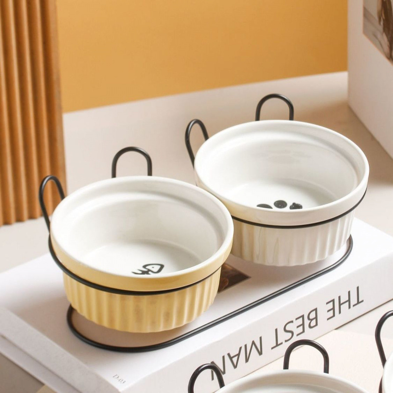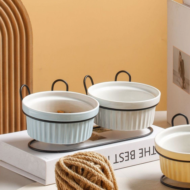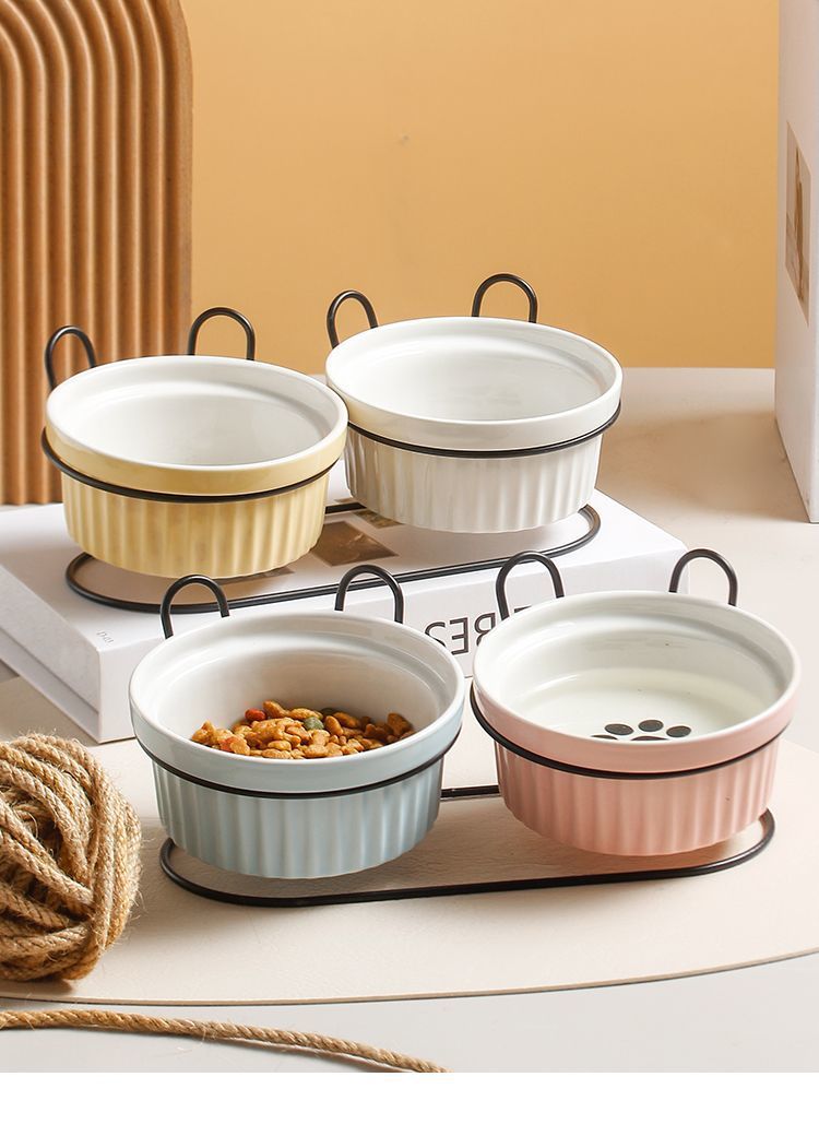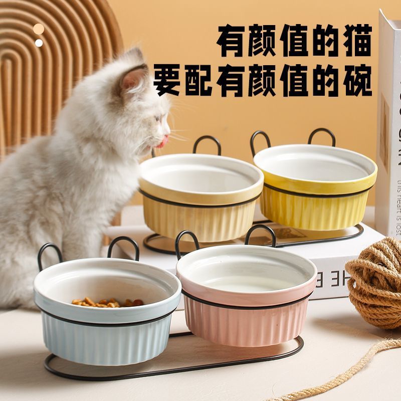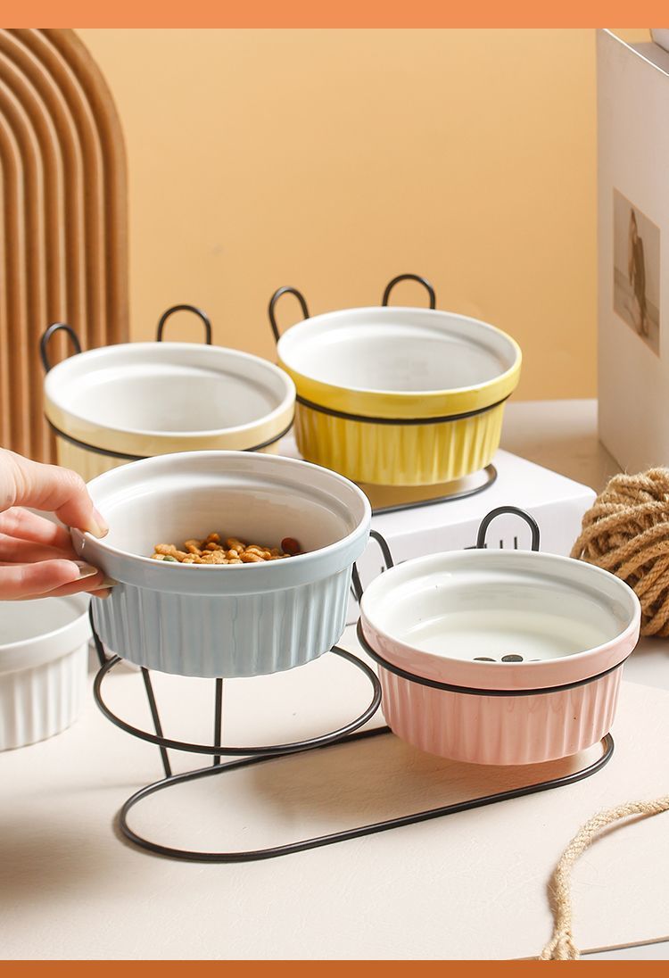 목 보호 세라믹 애완 동물 그릇 대구경 미끄럼 방지 검은 턱 방지 고양이 및 개 식품 그릇 분리형 탈착식 및 세척 가능 가정용스토어 가기