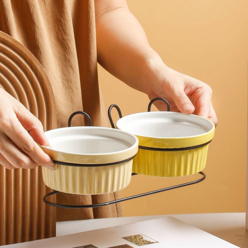 • 살구 노란색 싱글 그릇 2개(무료 철제 스탠드)