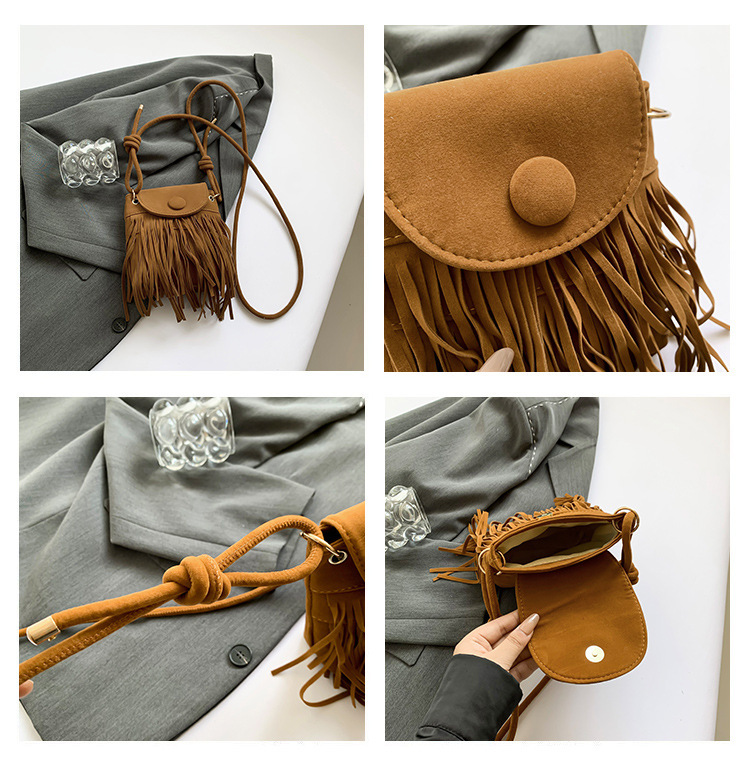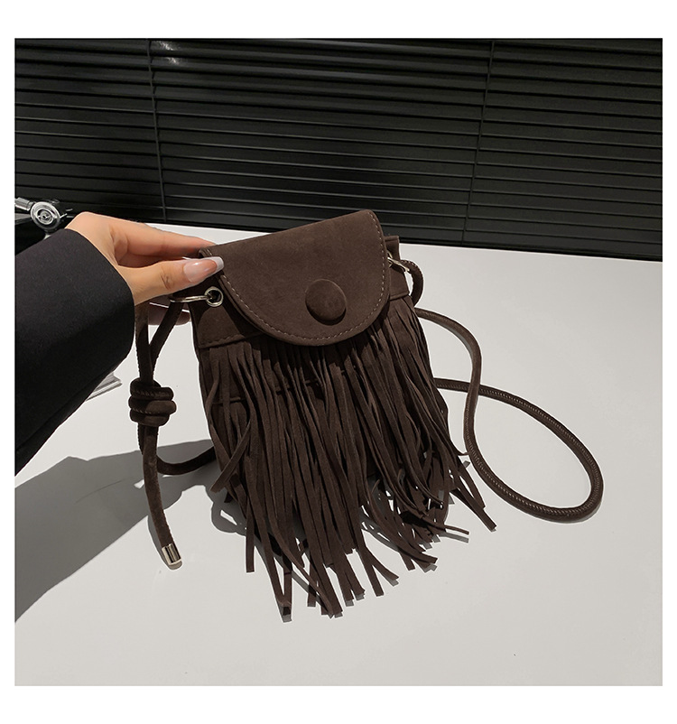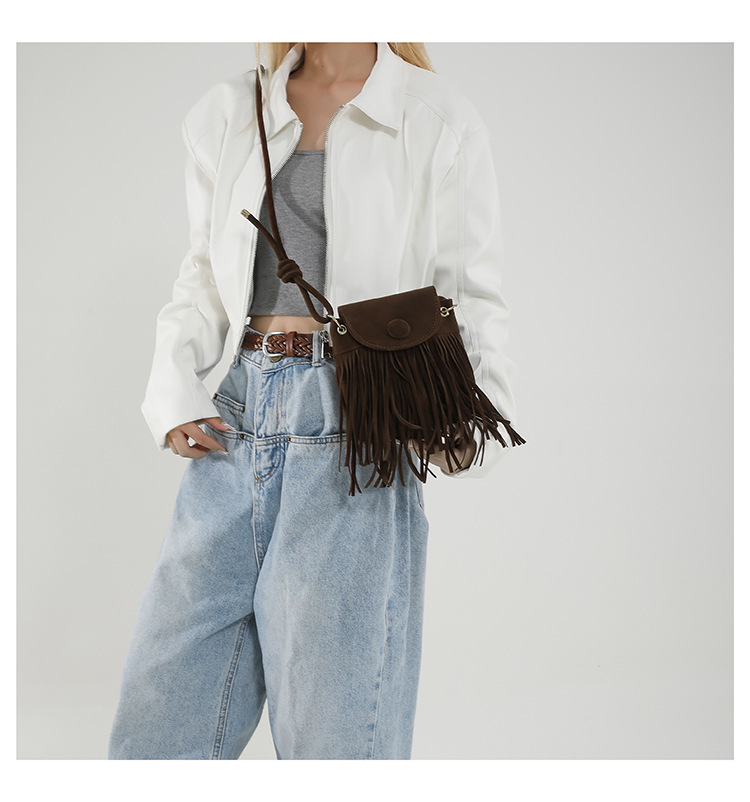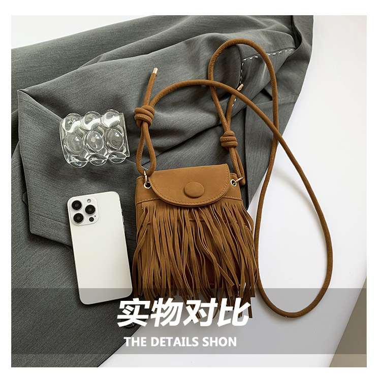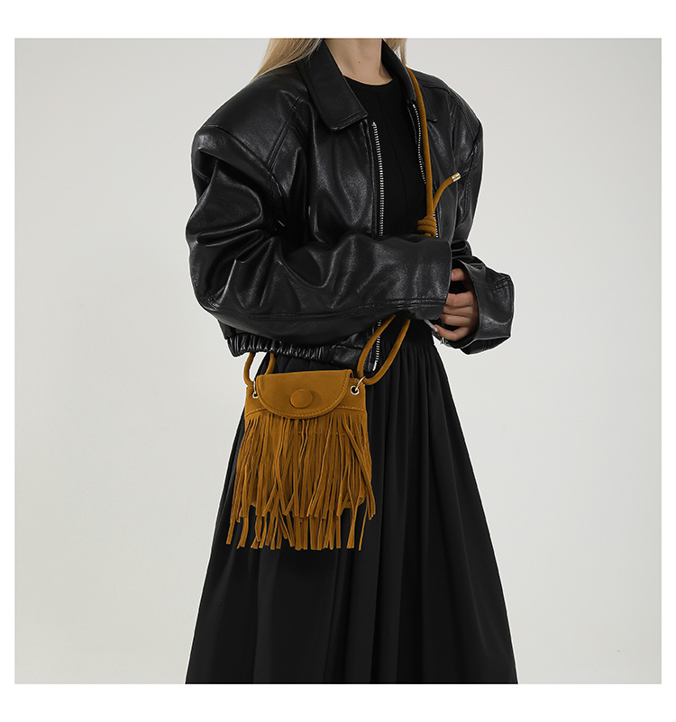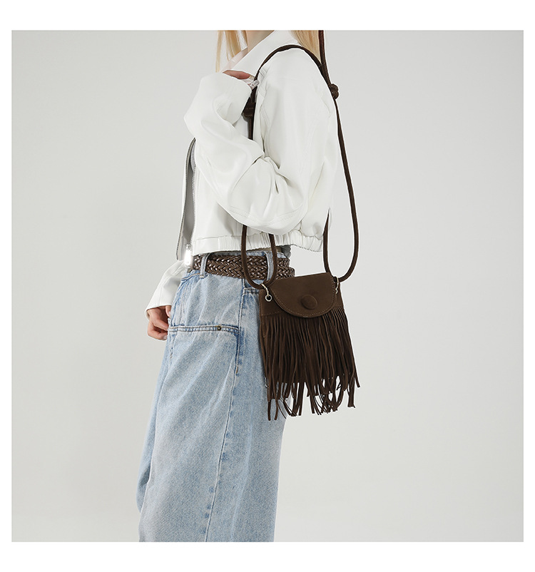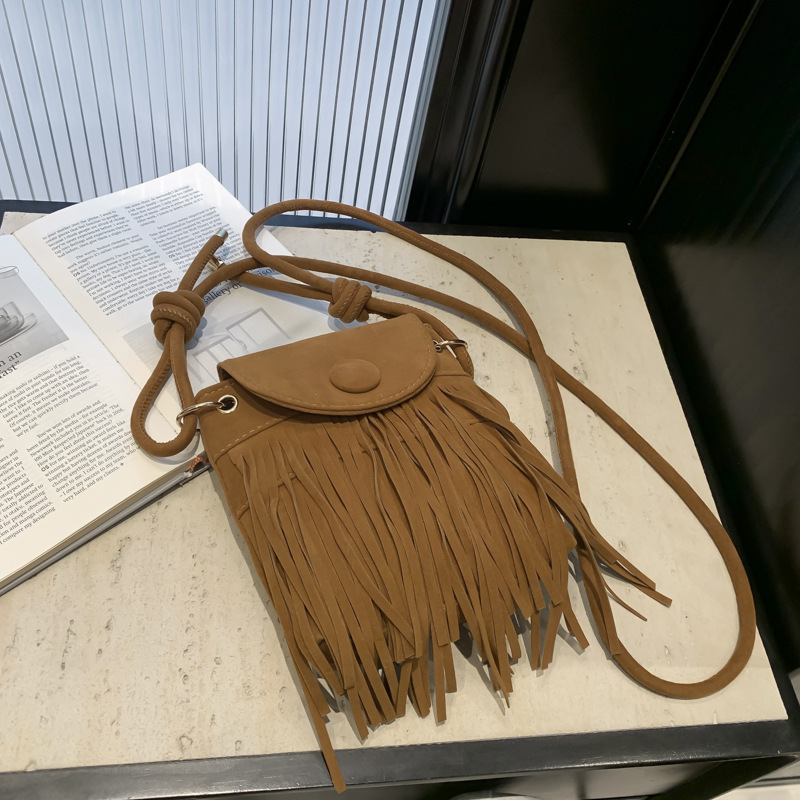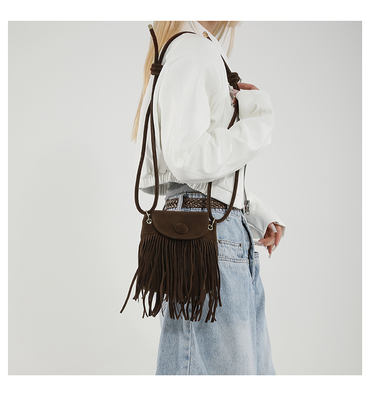 小众设计包包女2024新款复古百搭磨砂单肩斜挎包高级感时尚流苏包