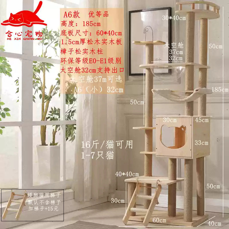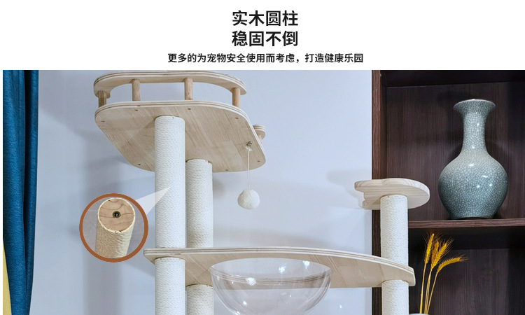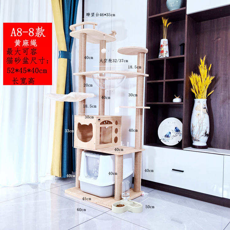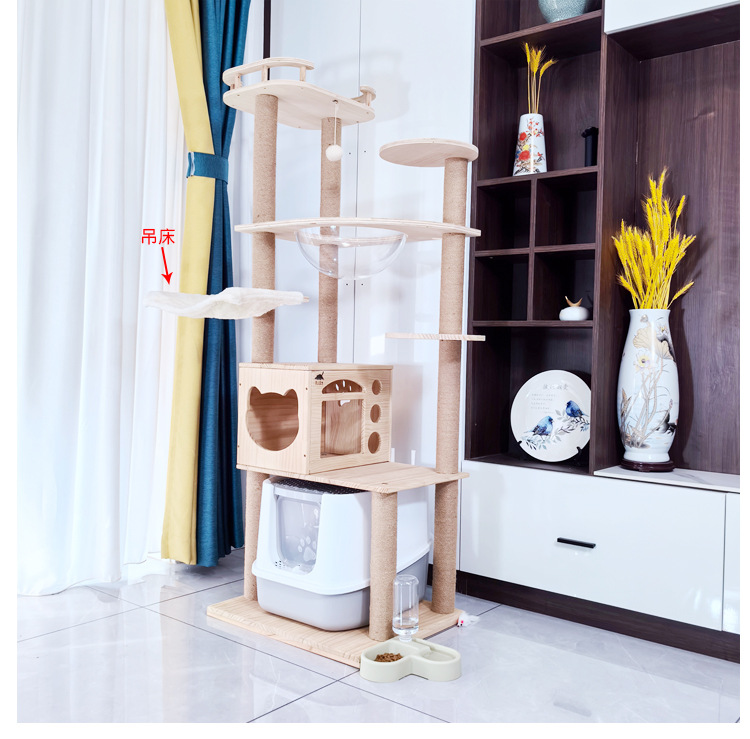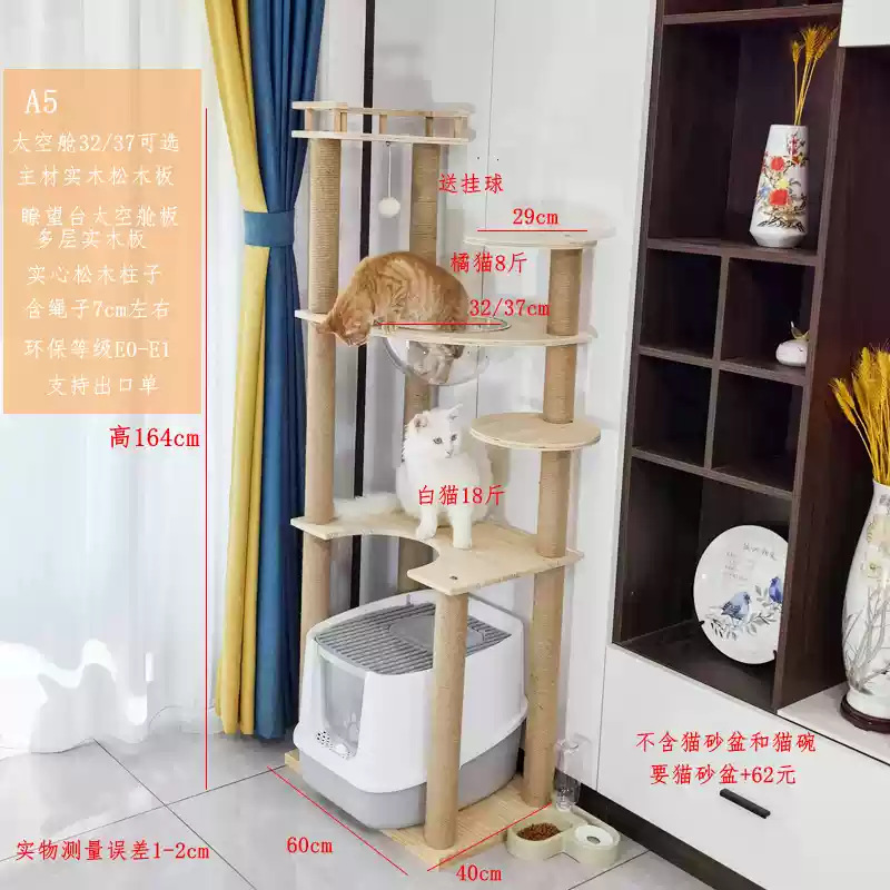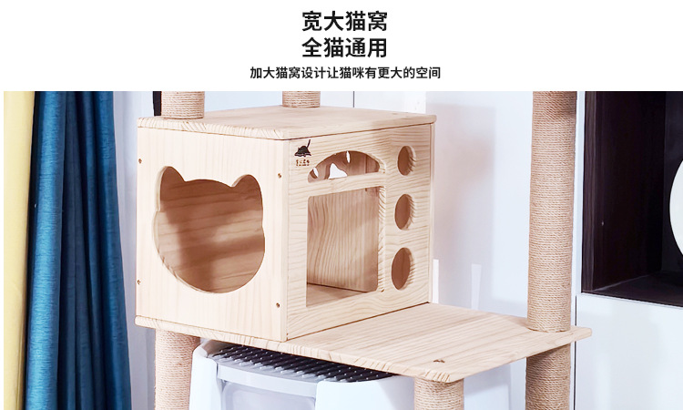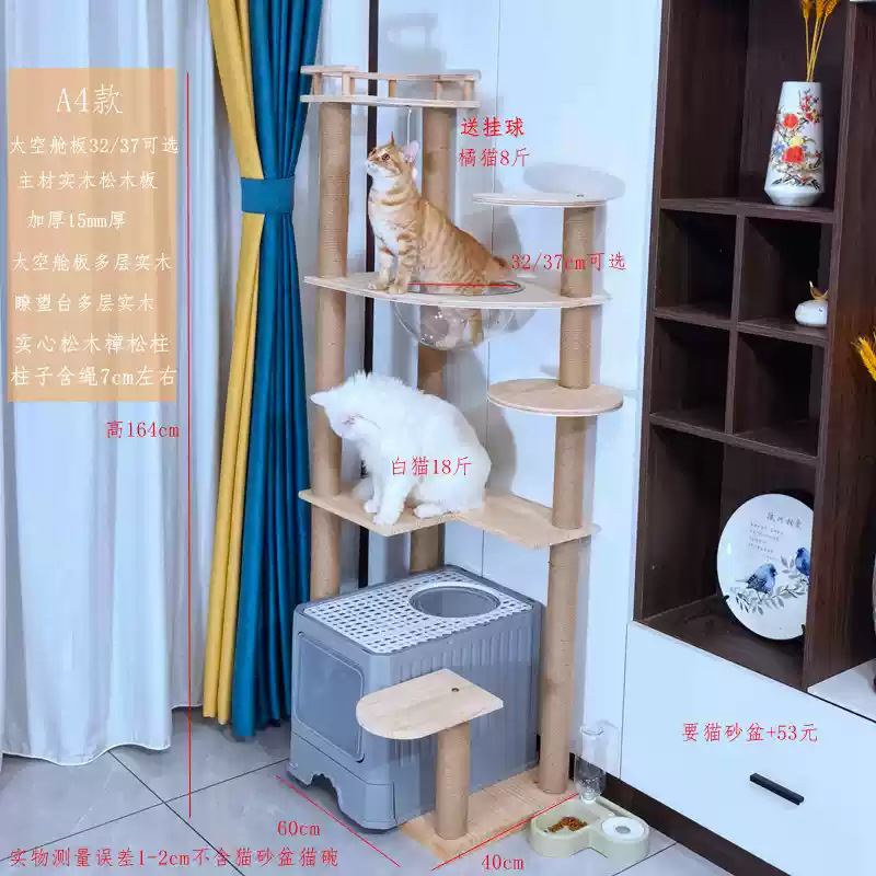 소나무 원목 대형 고양이 클라이밍 프레임 및 둥지 일체형 빌라 노란색 삼나무 기둥 우주 캡슐 다층 고양이 쓰레기통 캐비닛스토어 가기