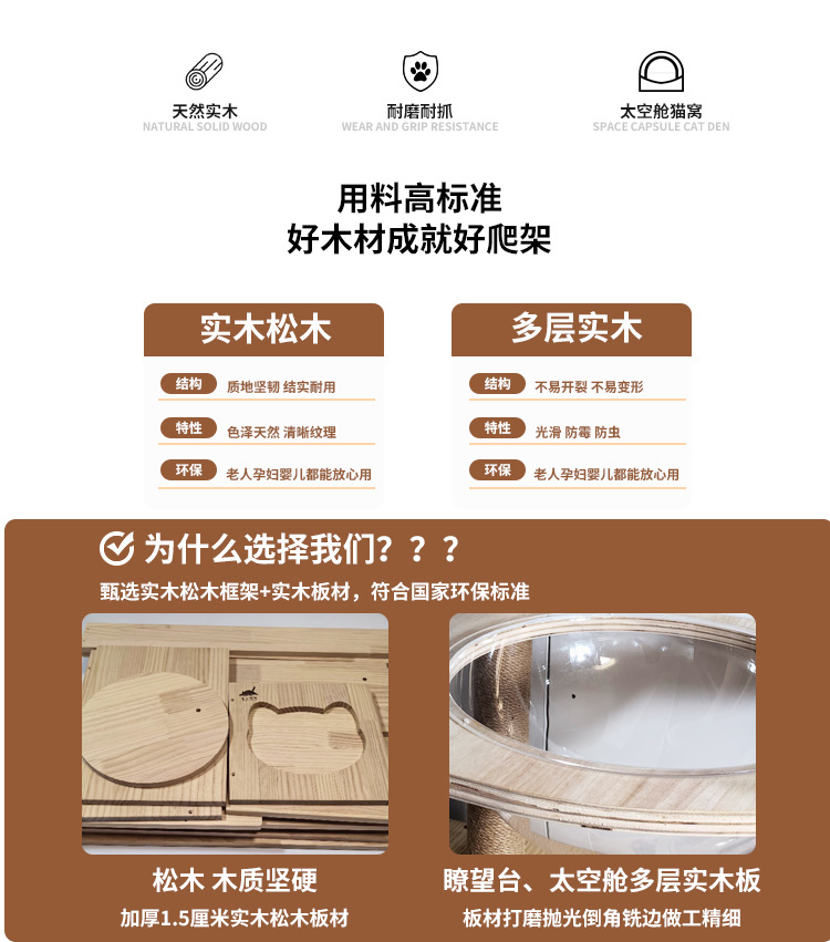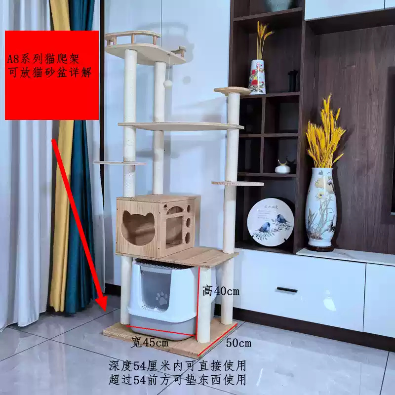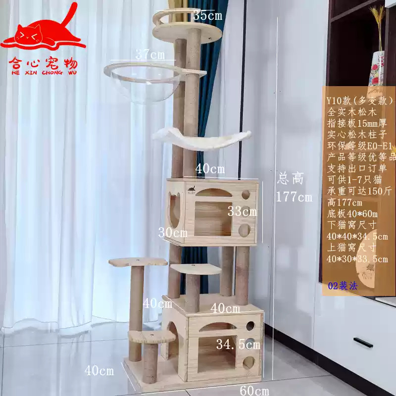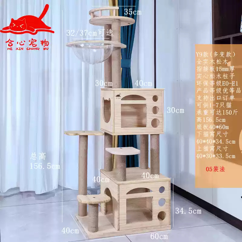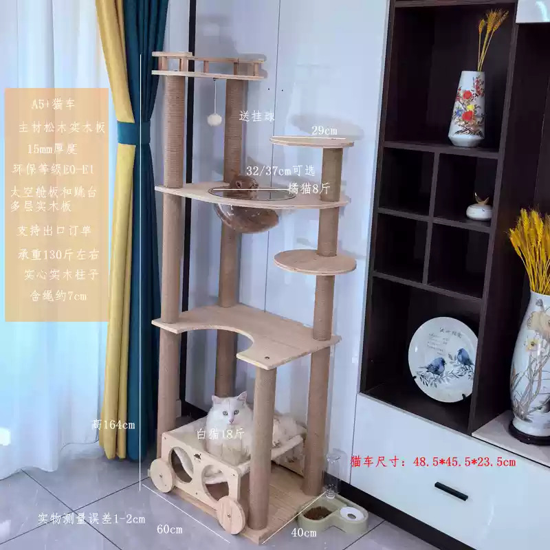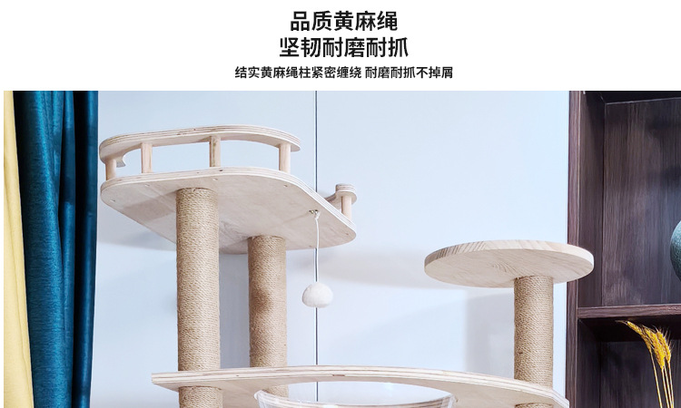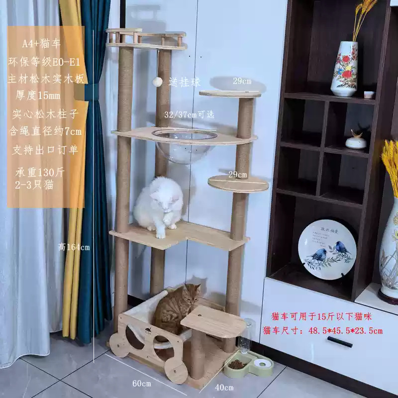 소나무 원목 대형 고양이 클라이밍 프레임 및 둥지 일체형 빌라 노란색 삼나무 기둥 우주 캡슐 다층 고양이 쓰레기통 캐비닛스토어 가기