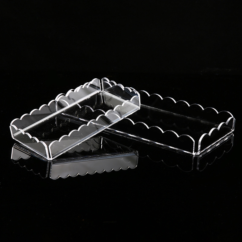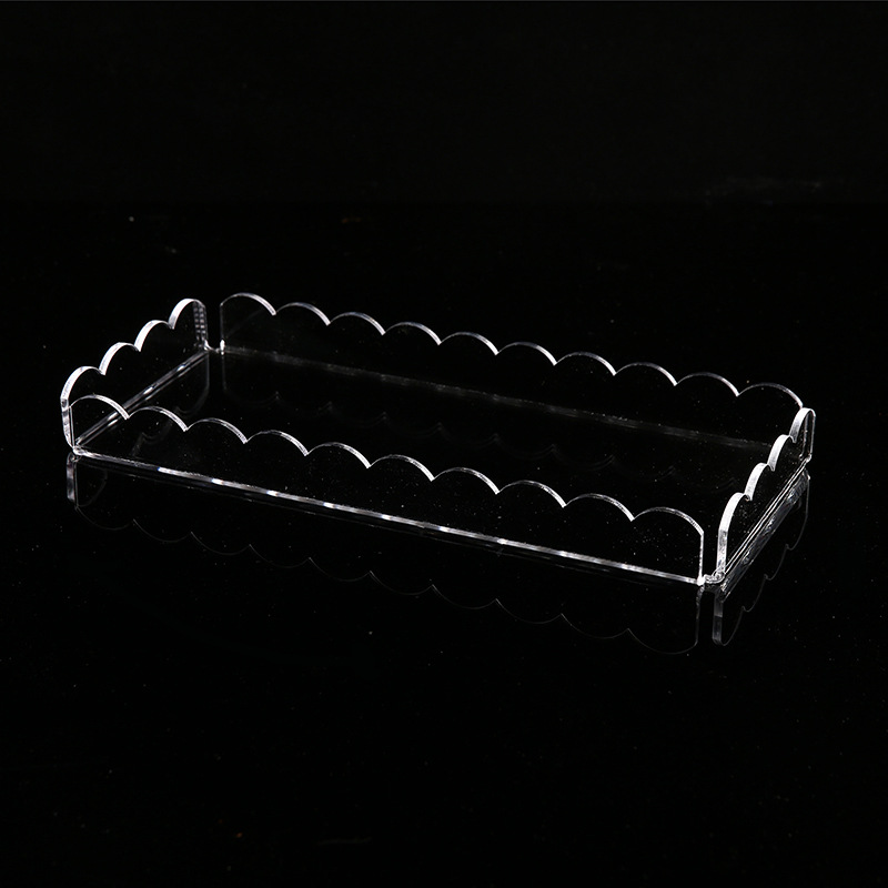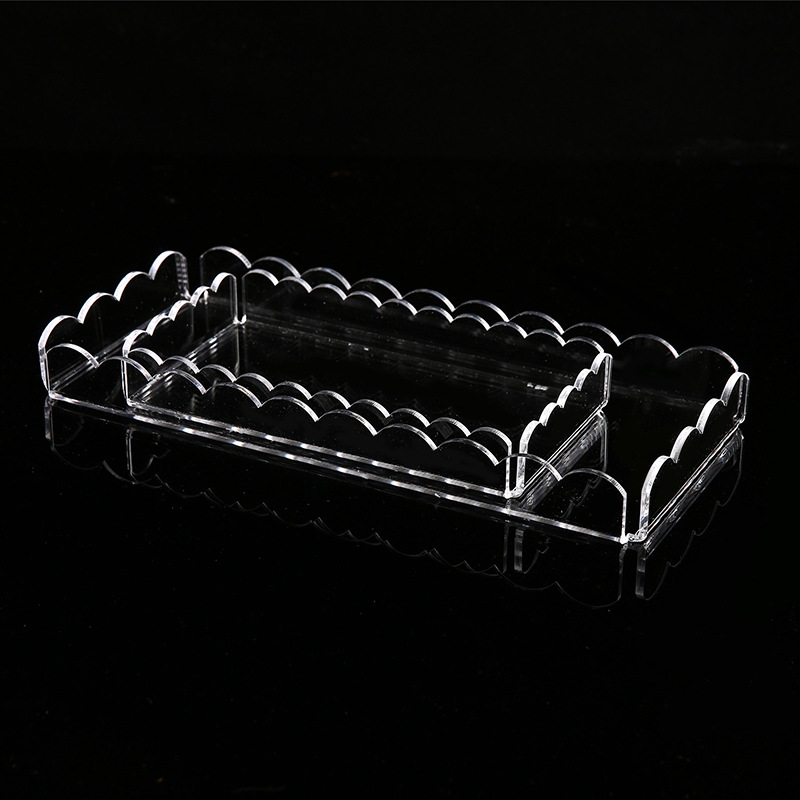 국경 간 아크릴 투명 부채꼴 트레이 사진 프레임 데스크탑 장식 스토리지 장식품 레이스 모양 데스크탑 스토리지 박스