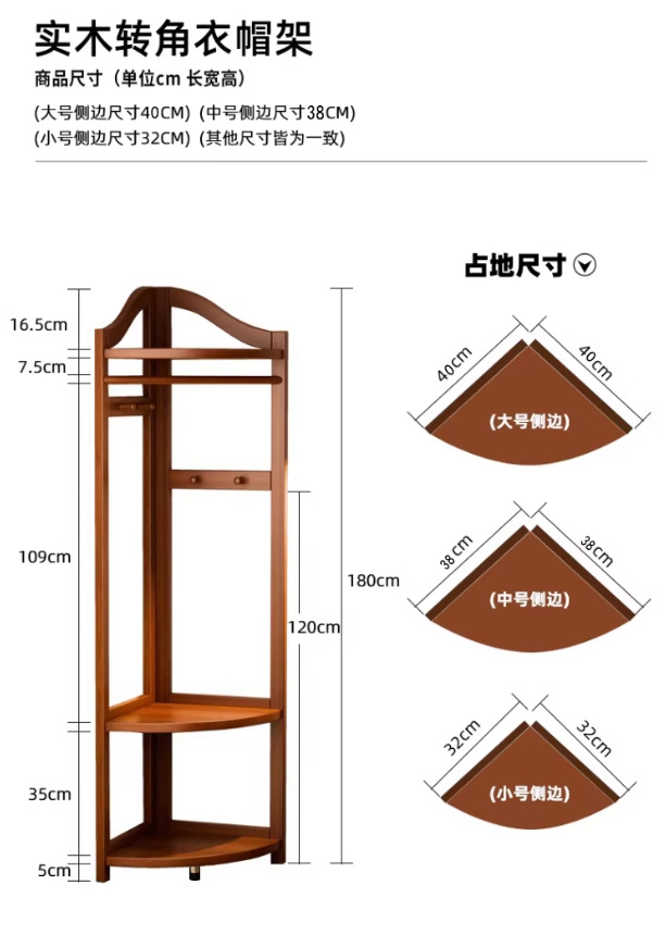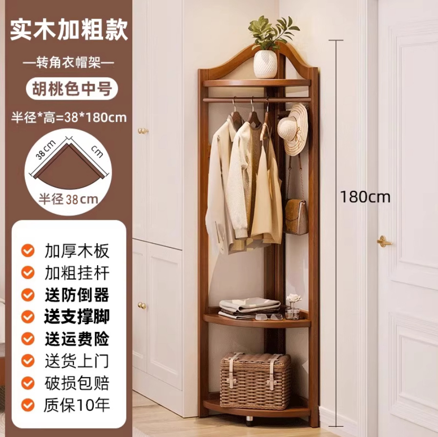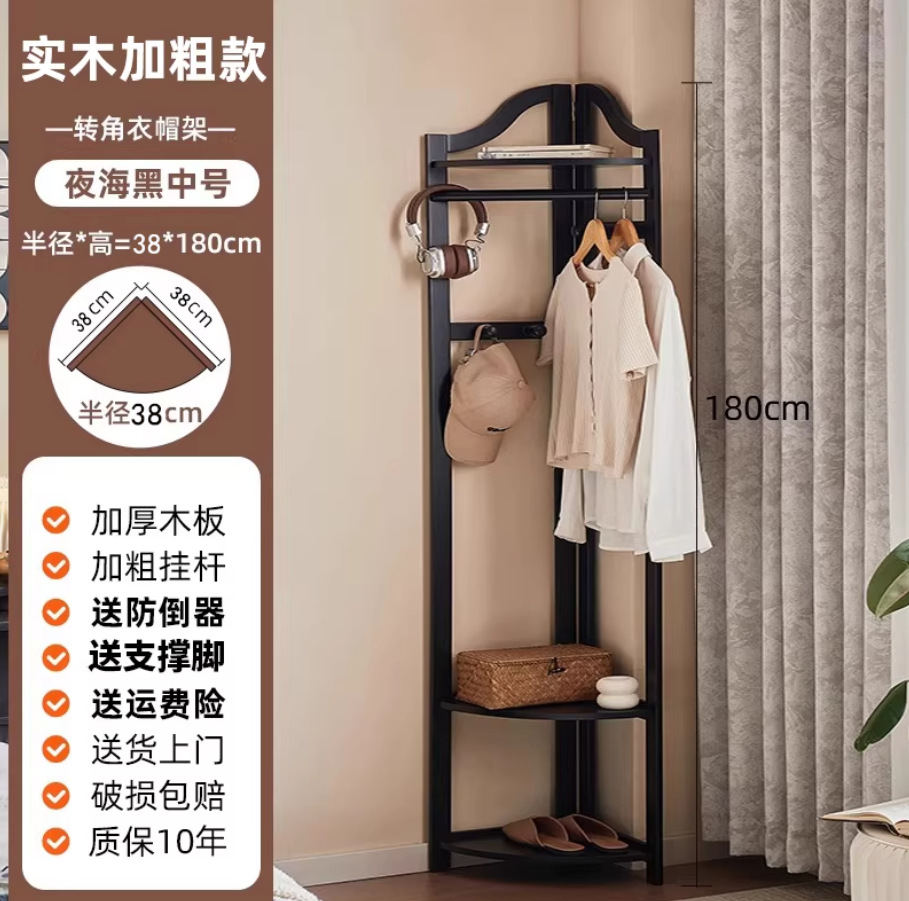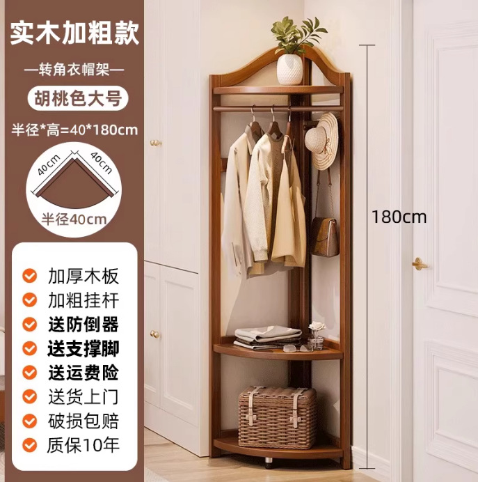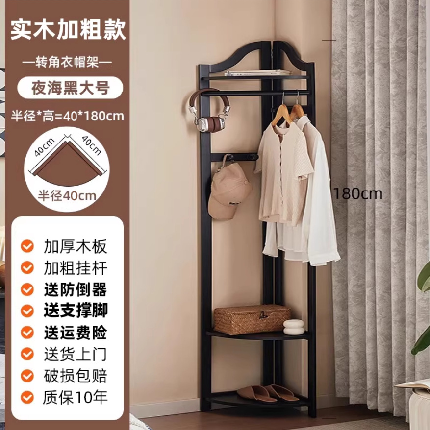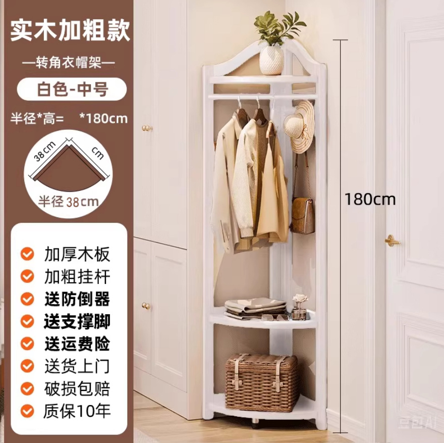 Jiayi 단단한 나무 코너 코트 랙 바닥 침실 옷걸이 홈 옷 랙 침대 옆 침대 끝 코너 스토리지