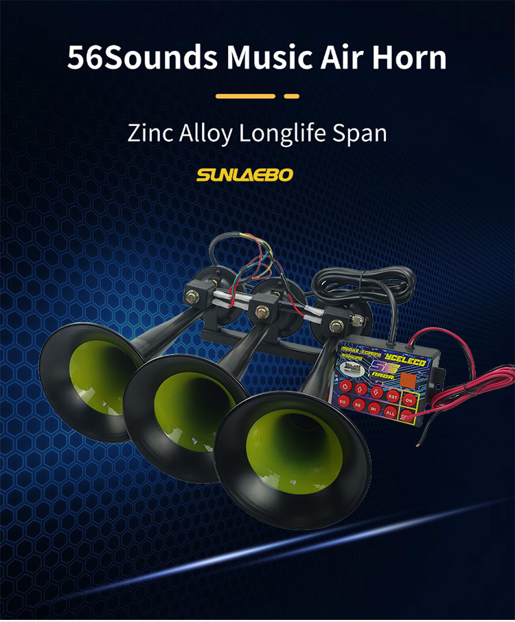 자동차 및 트럭에 적합한 공장 직접 판매 56톤 3관 음악 전자 제어 에어 혼 금속