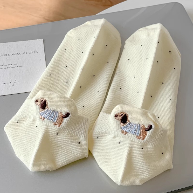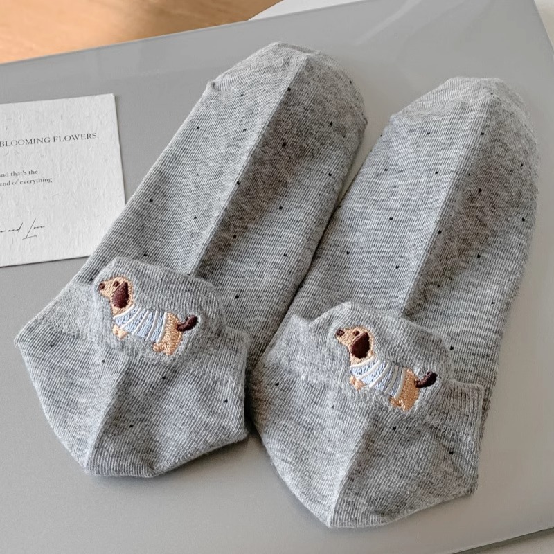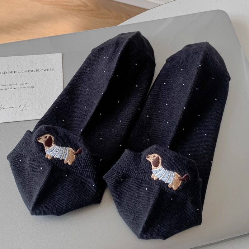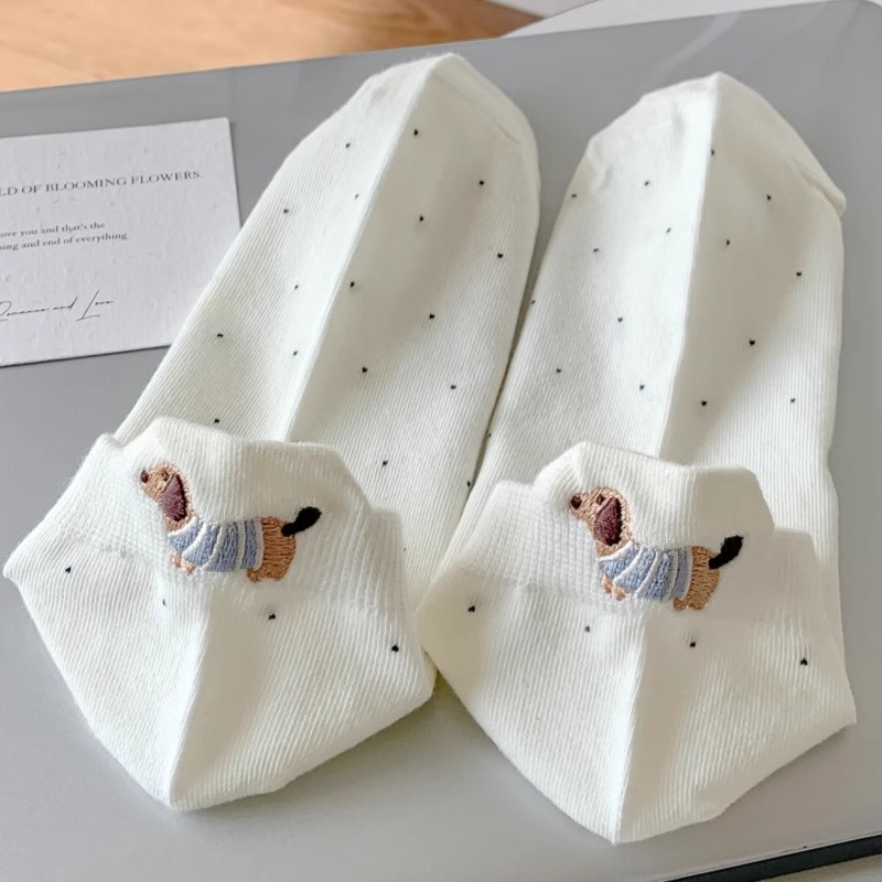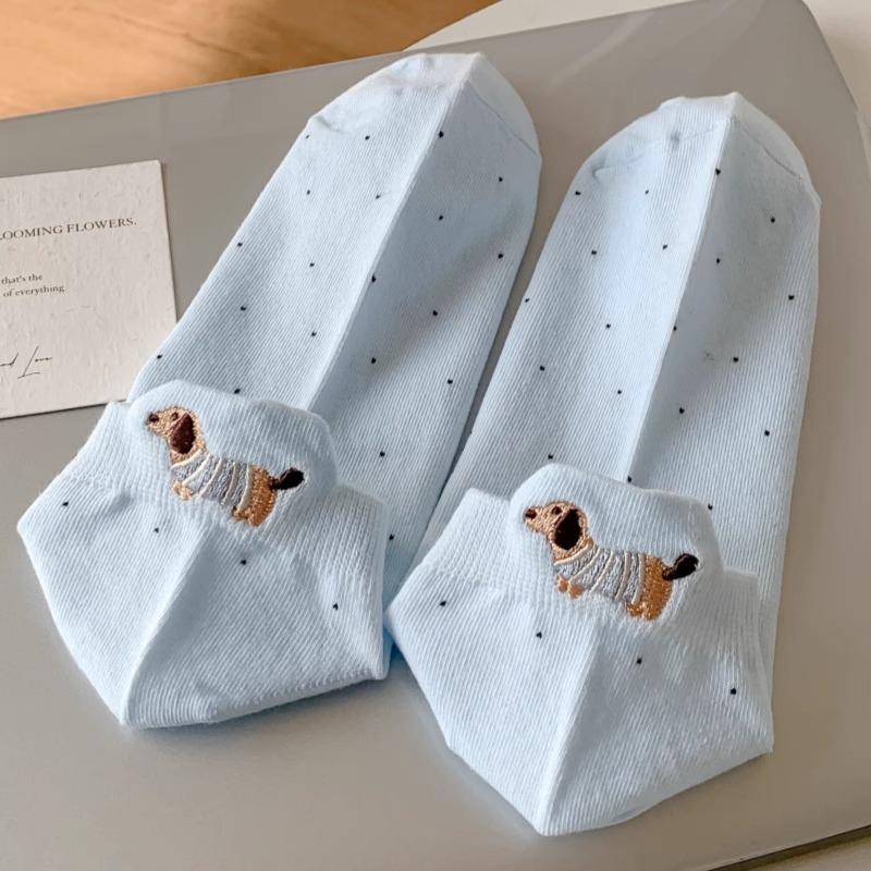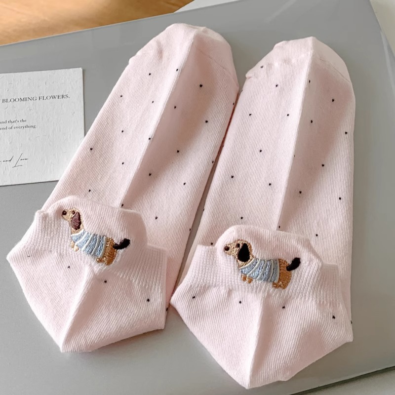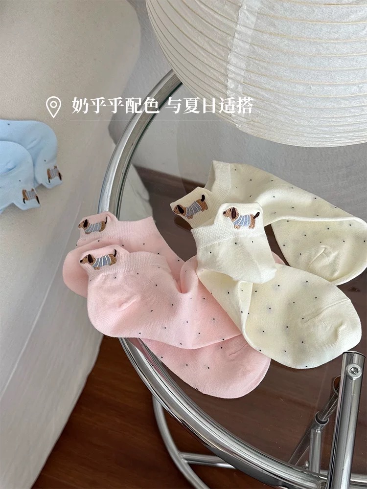양말 여성 짧은 양말 봄과 여름 얇은 폴카 도트 귀여운 만화 닥스 훈트 보트 양말 여성 Ins 유행 양말 면화 짧은 튜브 여름