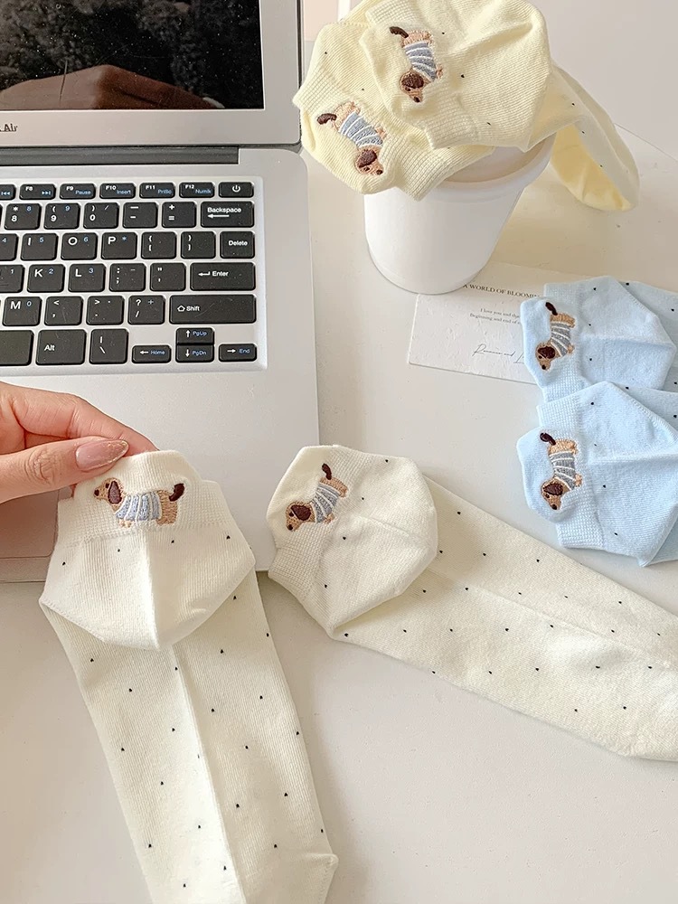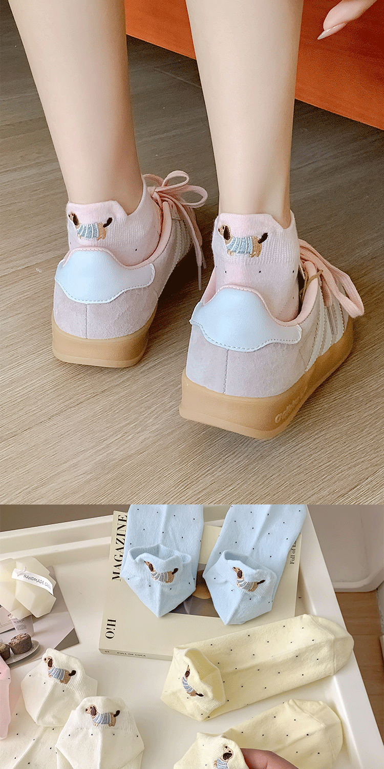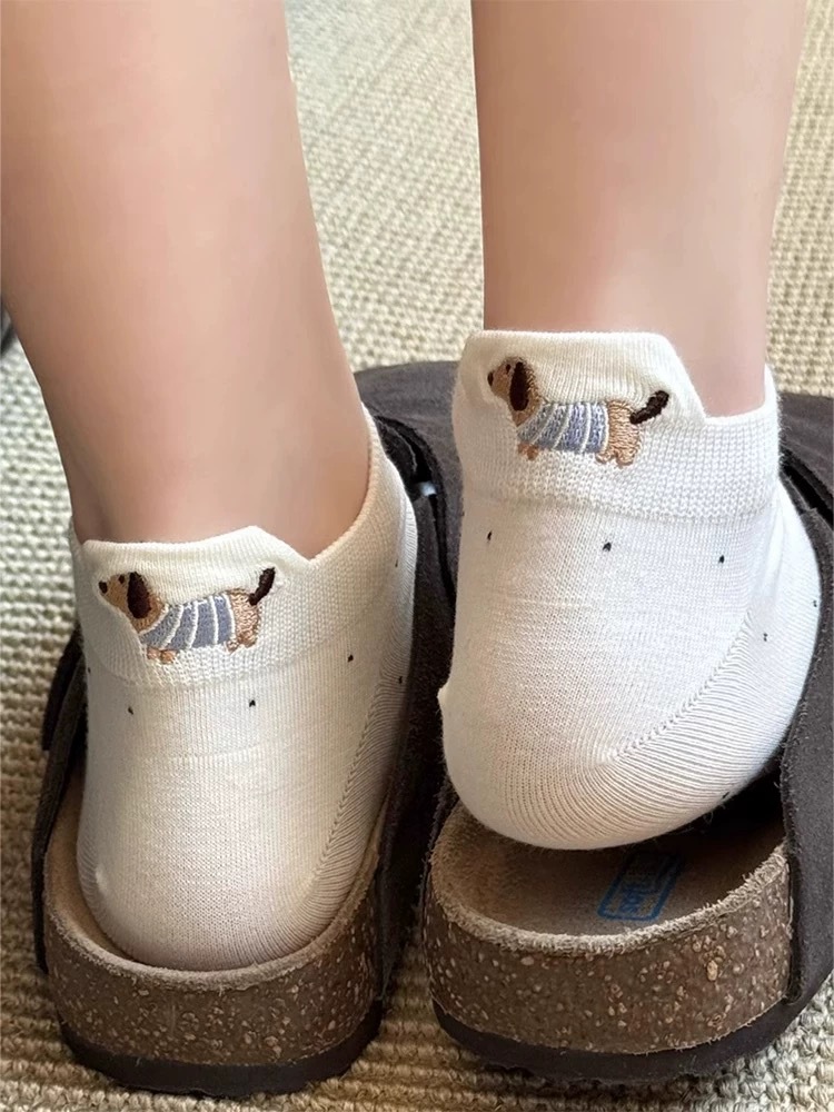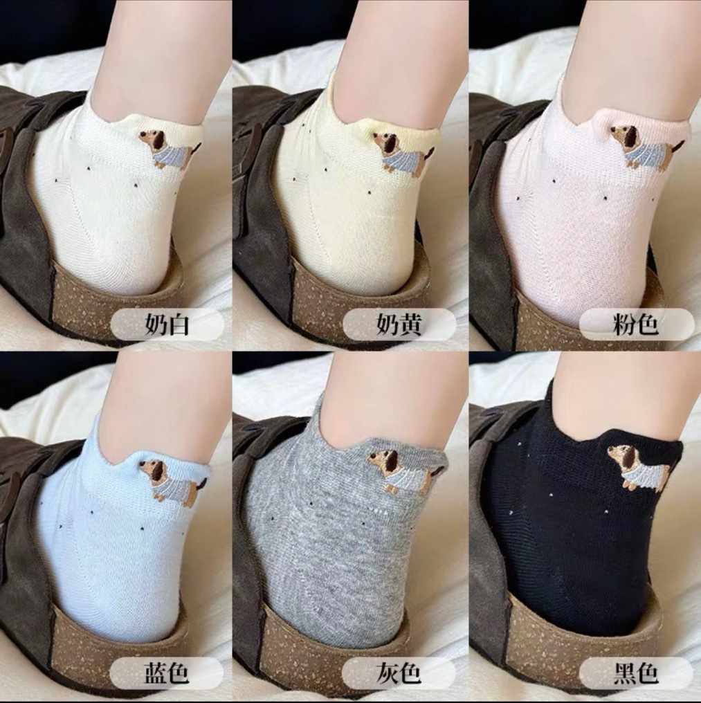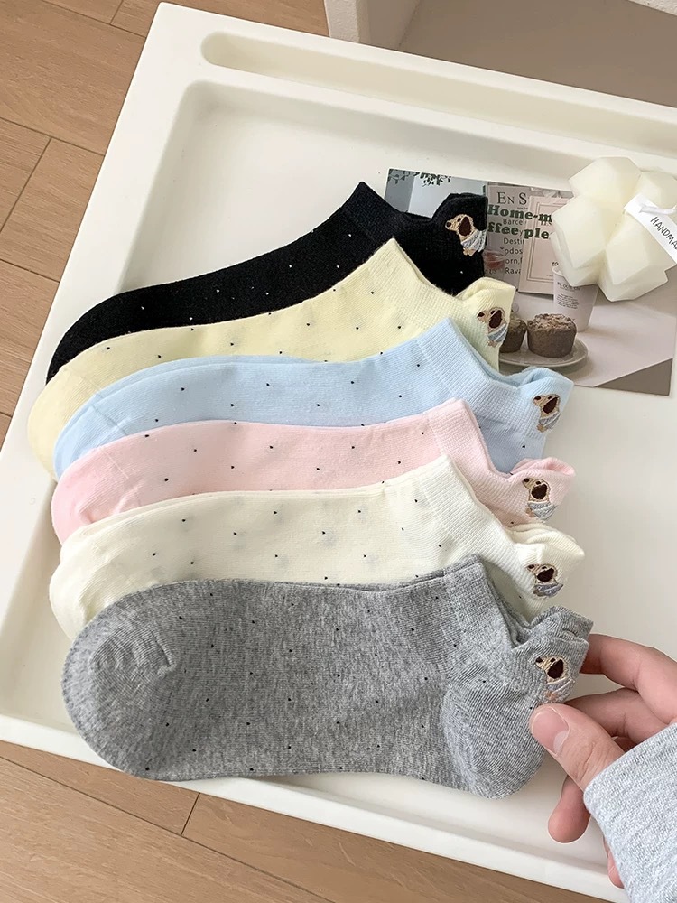 양말 여성 짧은 양말 봄과 여름 얇은 폴카 도트 귀여운 만화 닥스 훈트 보트 양말 여성 Ins 유행 양말 면화 짧은 튜브 여름