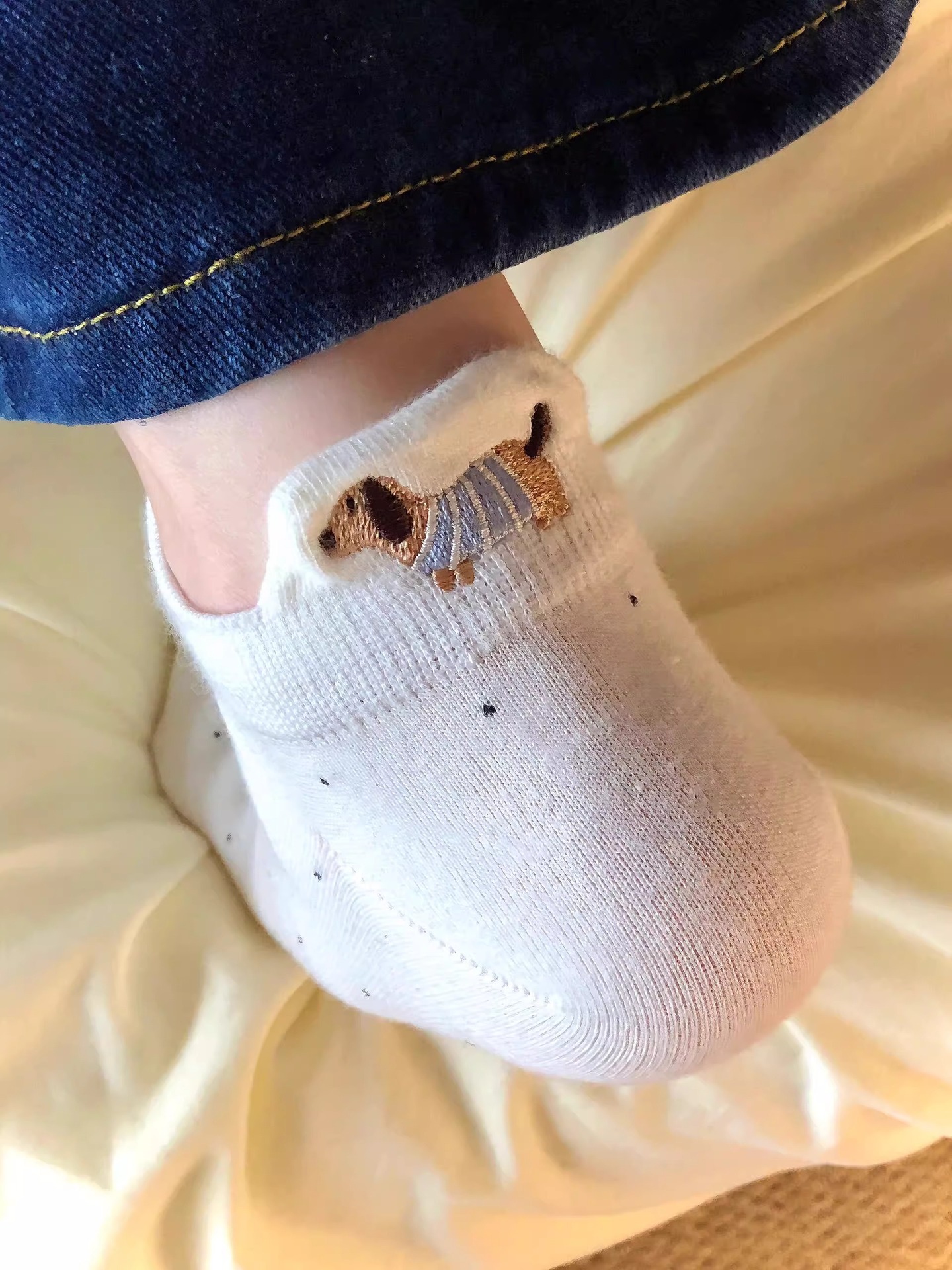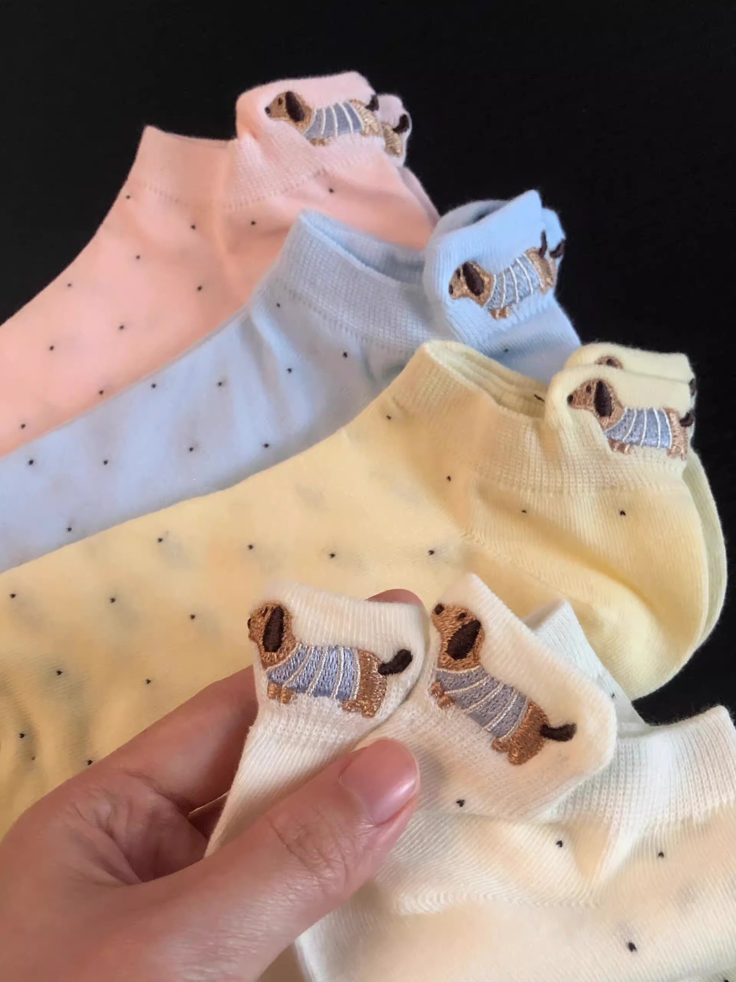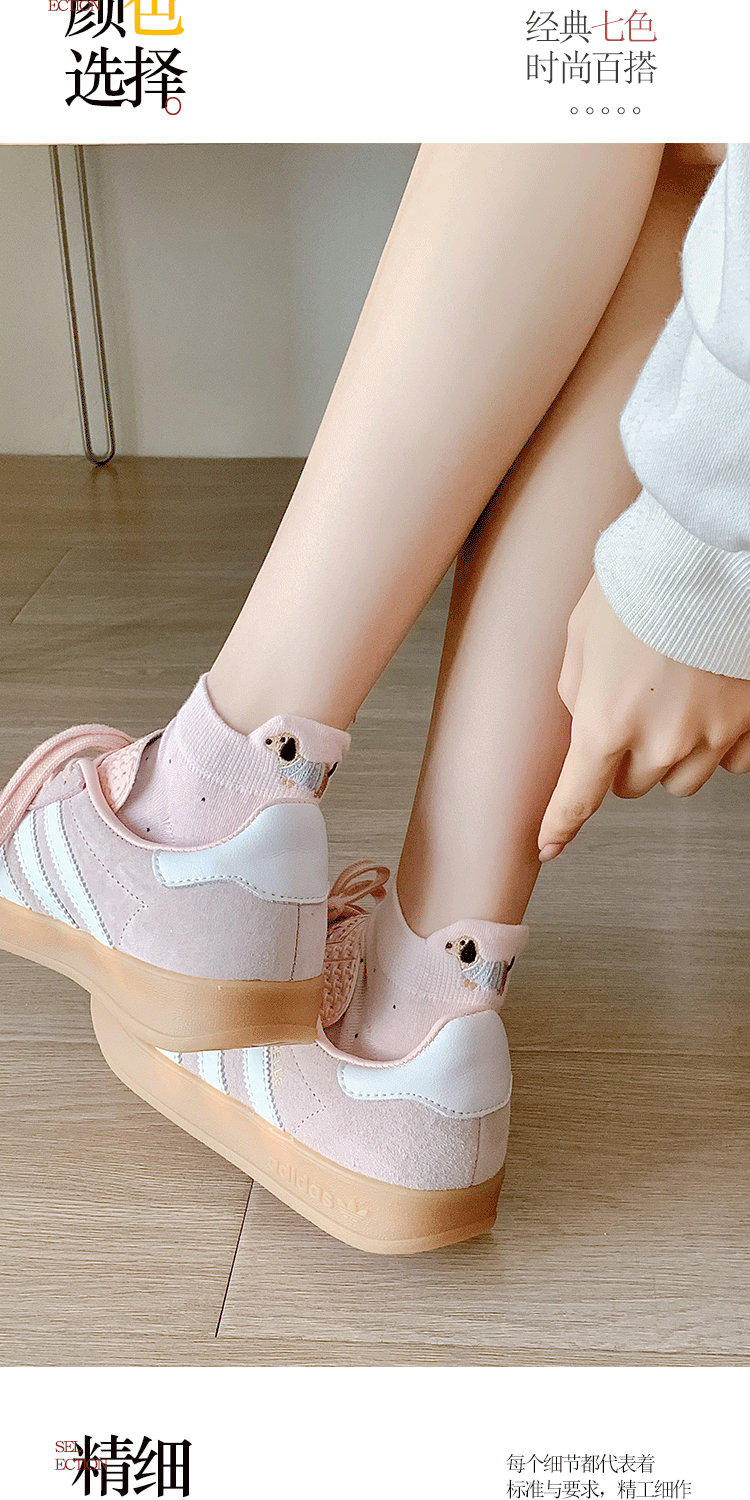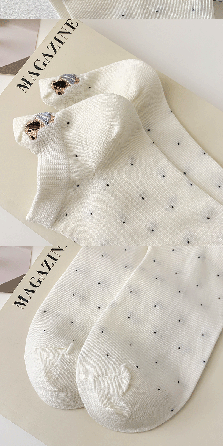 양말 여성 짧은 양말 봄과 여름 얇은 폴카 도트 귀여운 만화 닥스 훈트 보트 양말 여성 Ins 유행 양말 면화 짧은 튜브 여름