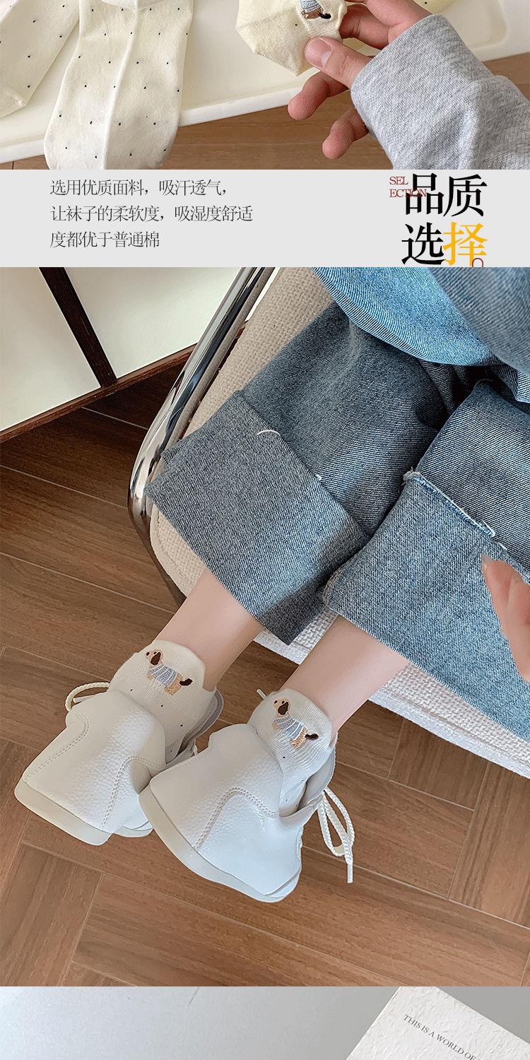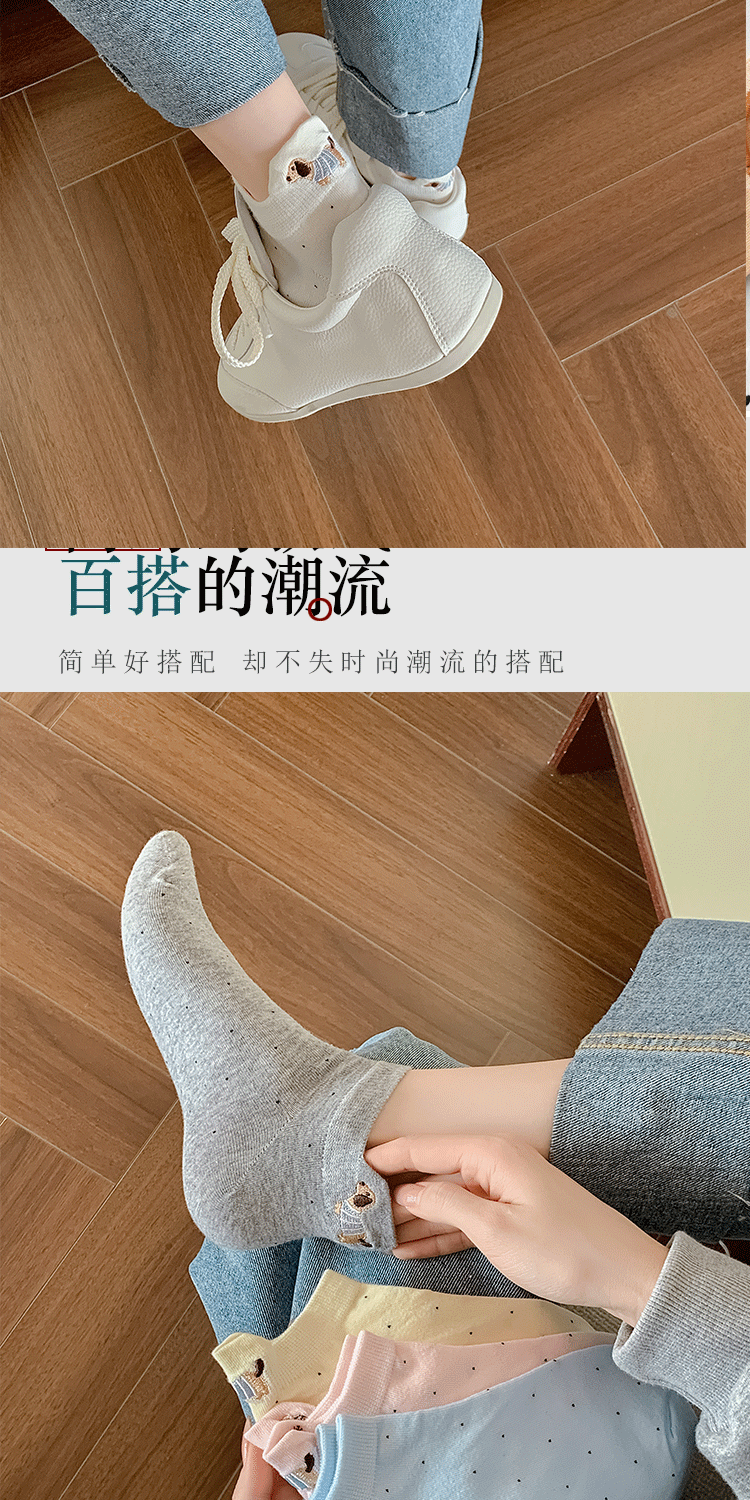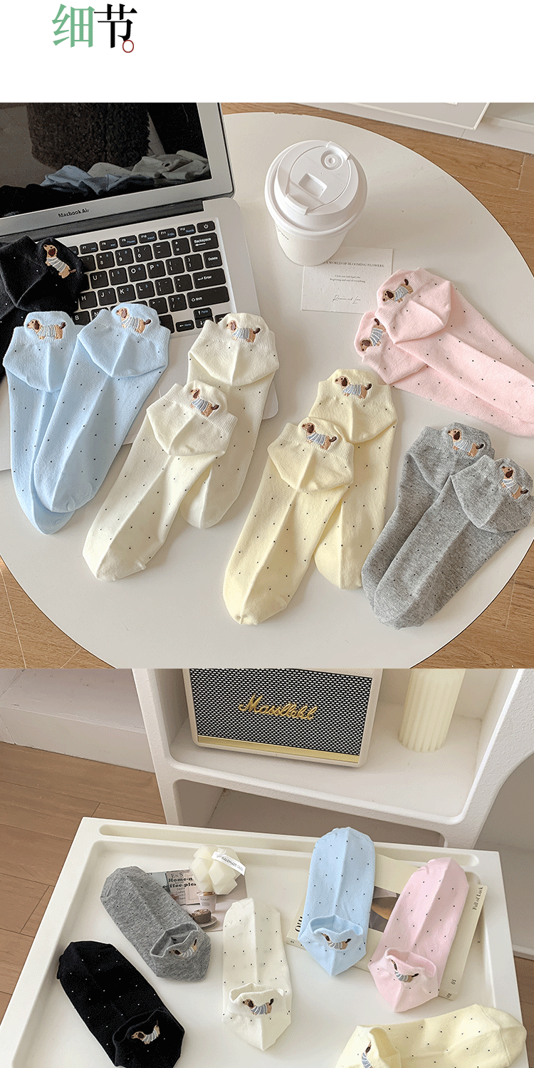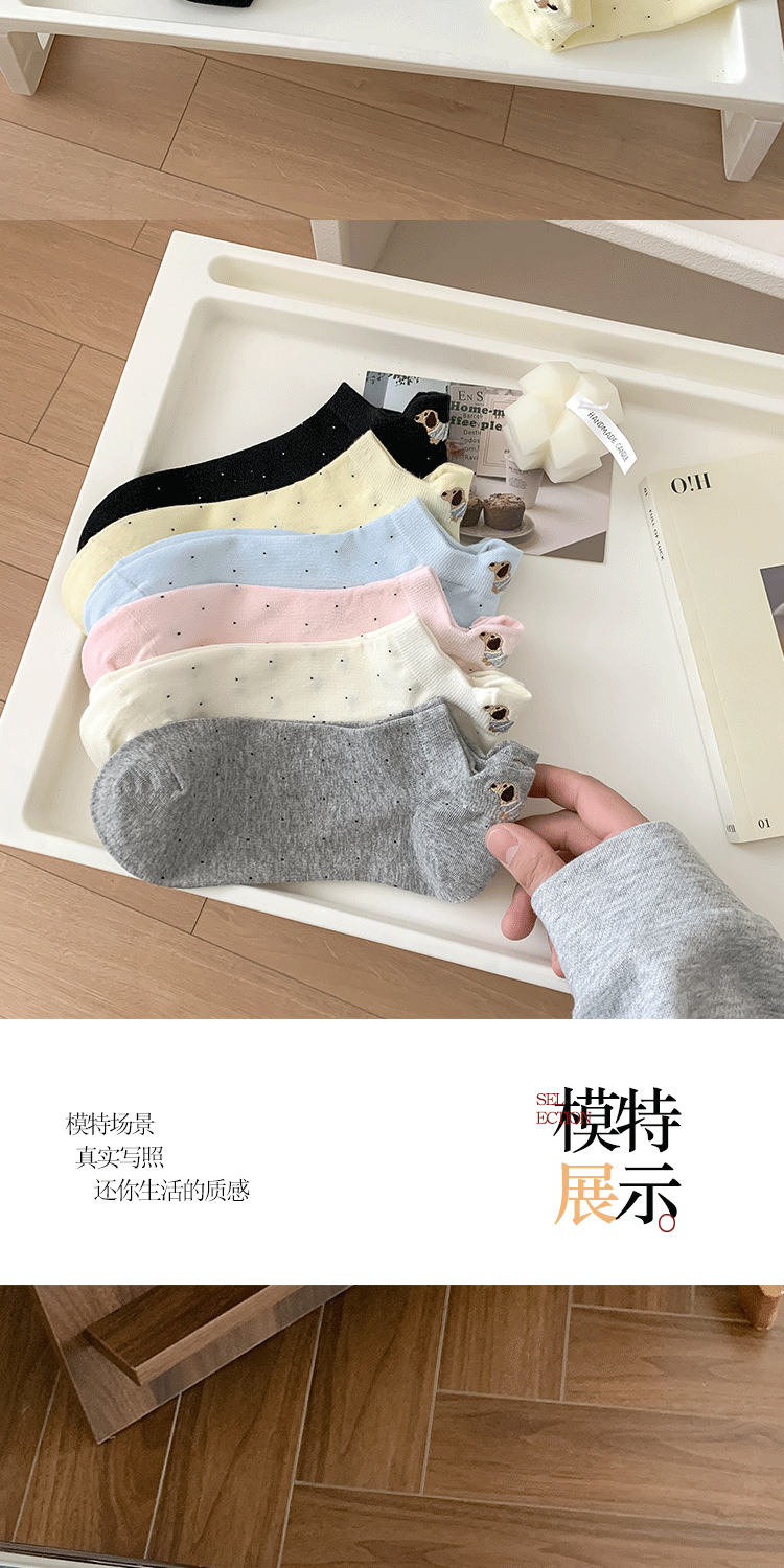 양말 여성 짧은 양말 봄과 여름 얇은 폴카 도트 귀여운 만화 닥스 훈트 보트 양말 여성 Ins 유행 양말 면화 짧은 튜브 여름스토어 가기