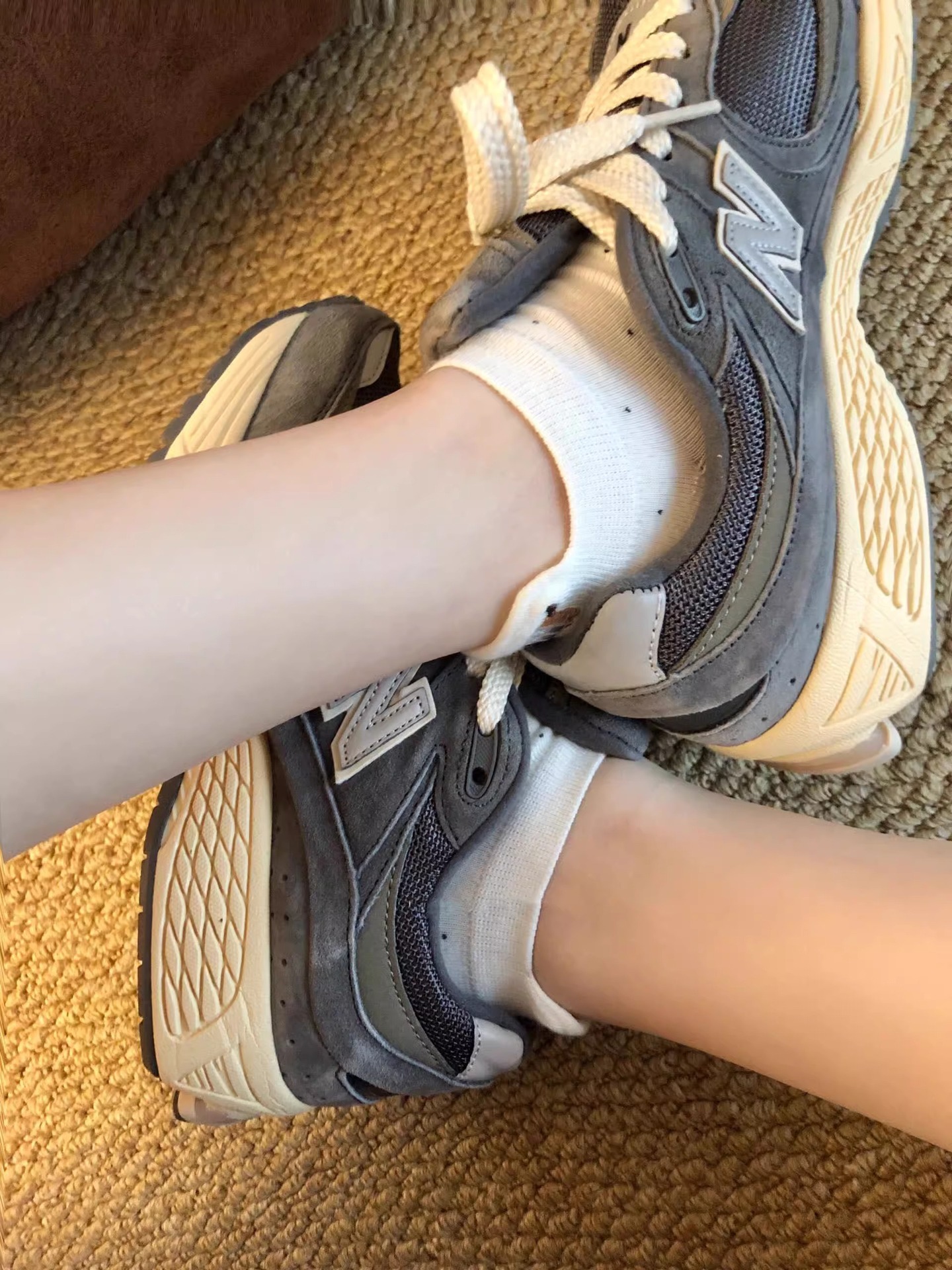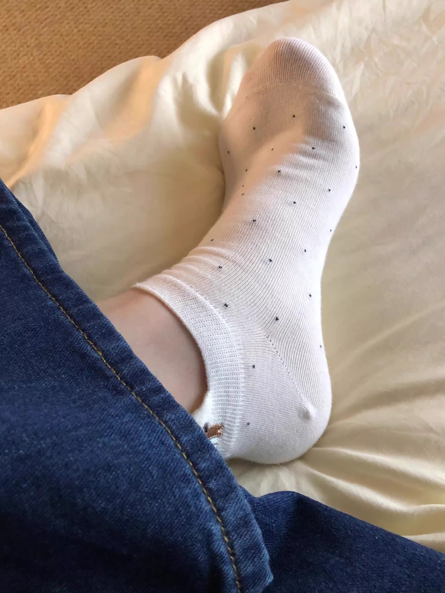 波点羊毛袜子女中筒袜春秋季款加厚加绒保暖灰色百搭冬天长筒袜 RMB:5.00