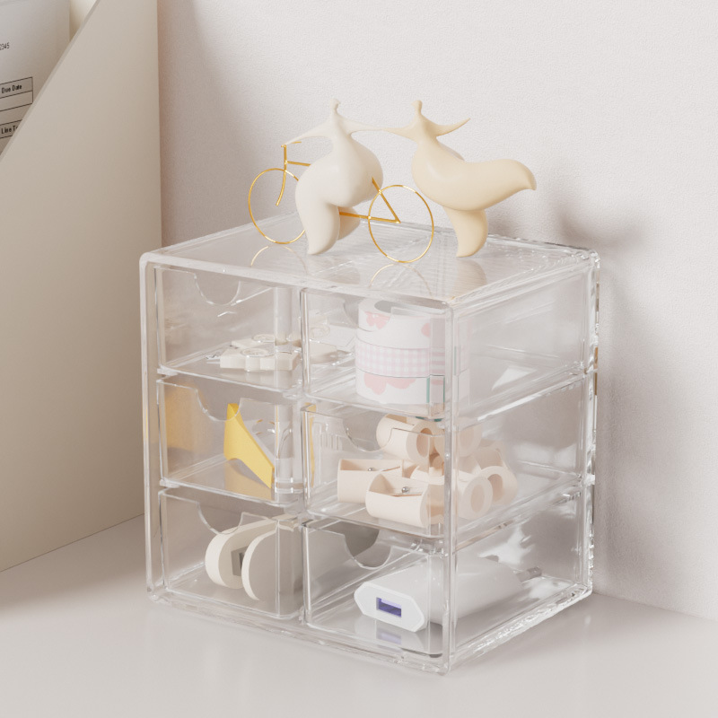 도매 쌓을 수있는 한국 소녀 심장 데스크탑 6 궁전 저장 상자 학생 책상 투명 서랍 유형 마무리 상자스토어 가기