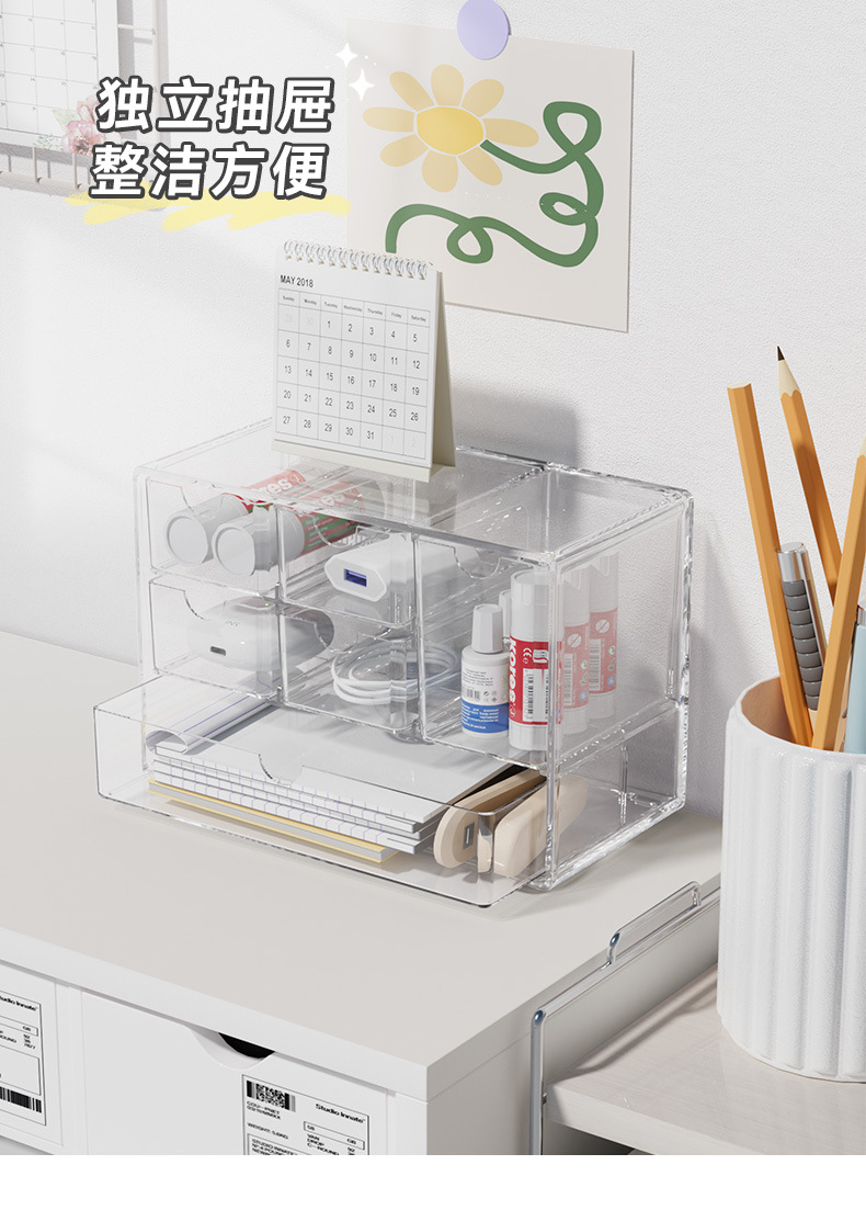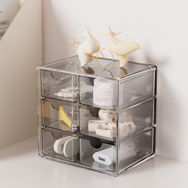 도매 쌓을 수있는 한국 소녀 심장 데스크탑 6 궁전 저장 상자 학생 책상 투명 서랍 유형 마무리 상자