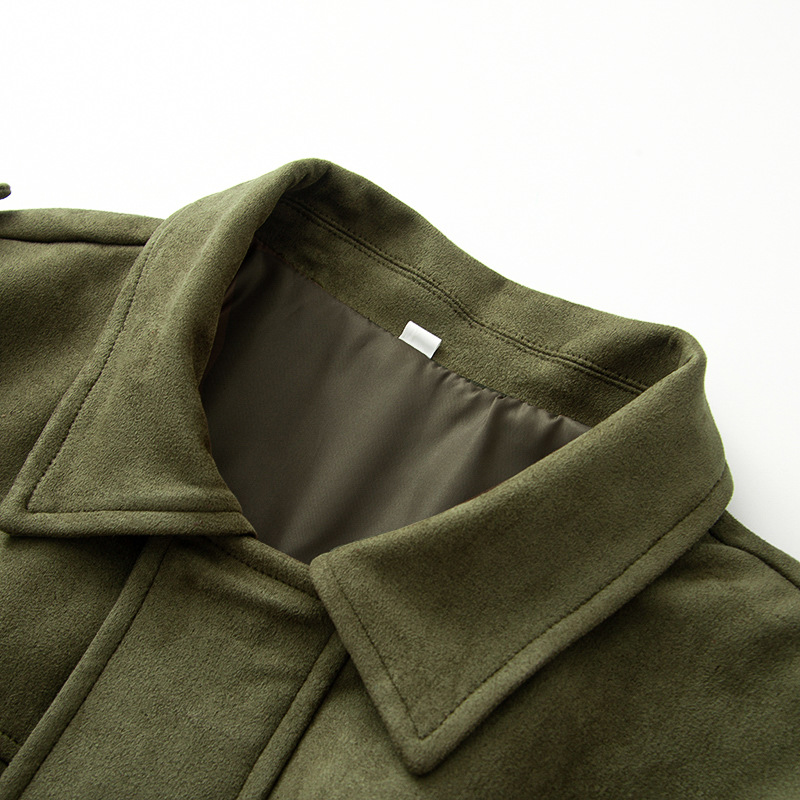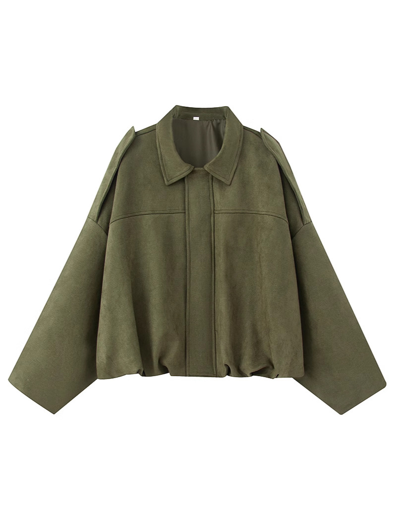 2025 봄과 가을 새로운 유럽과 미국 스타일의 단색 느슨한 긴팔 재킷 스웨이드 기질 녹색 재킷 여성