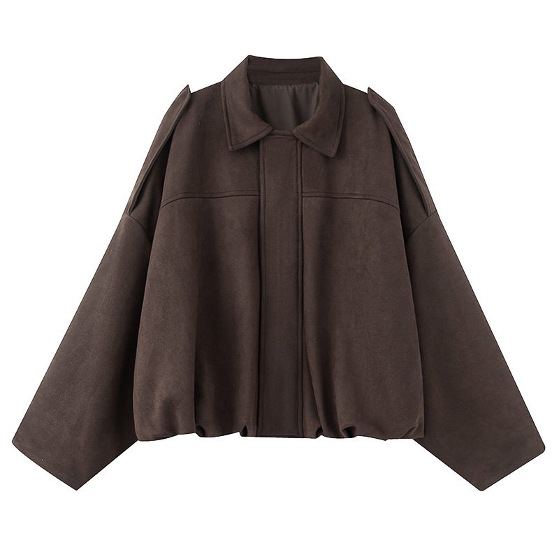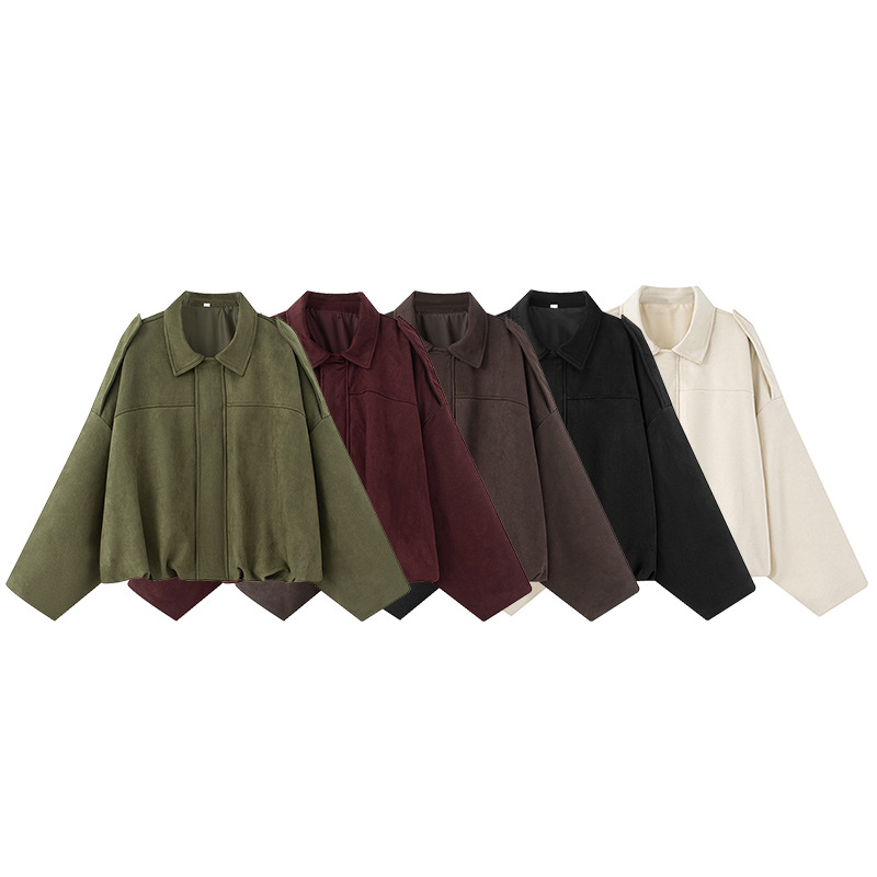 2025 봄과 가을 새로운 유럽과 미국 스타일의 단색 느슨한 긴팔 재킷 스웨이드 기질 녹색 재킷 여성스토어 가기