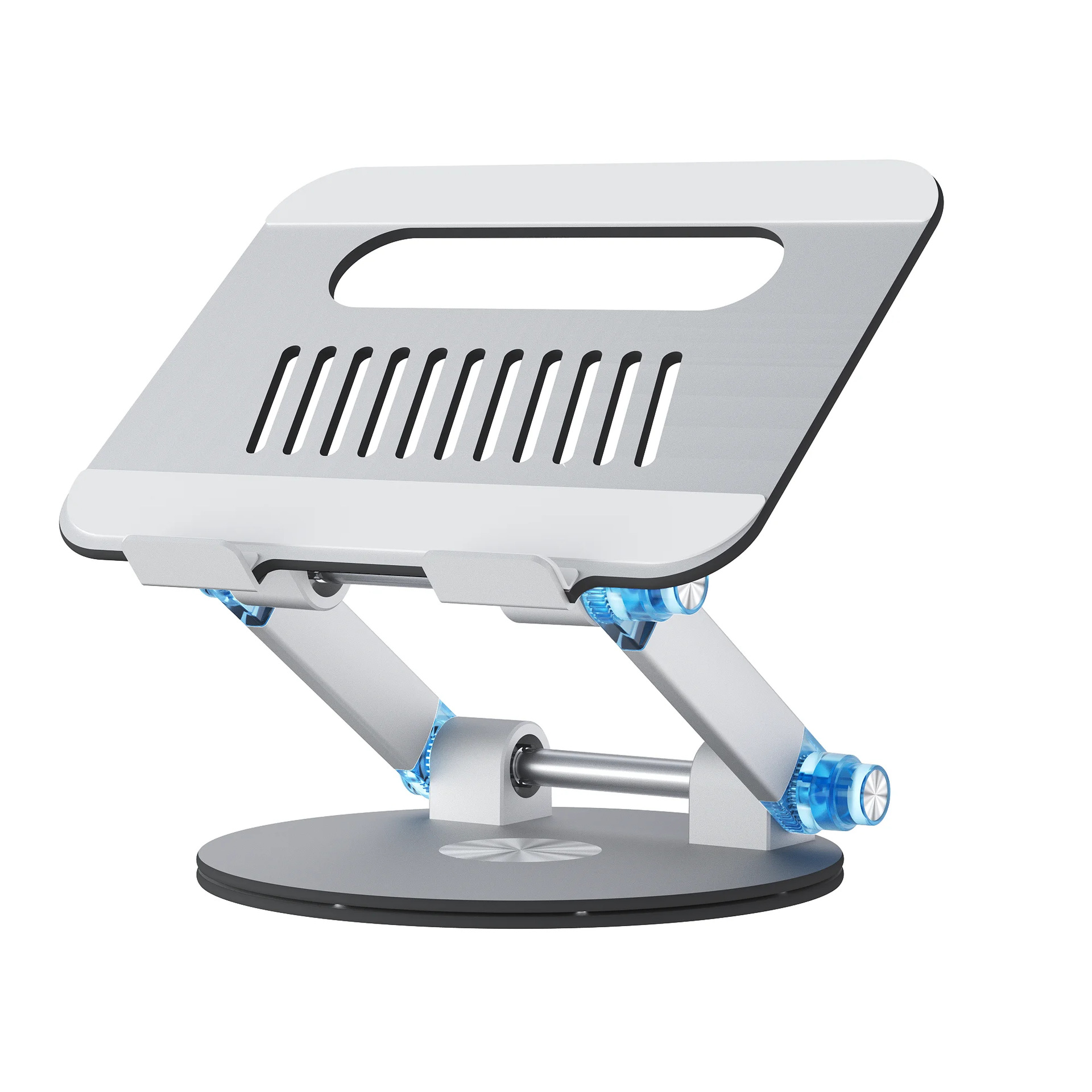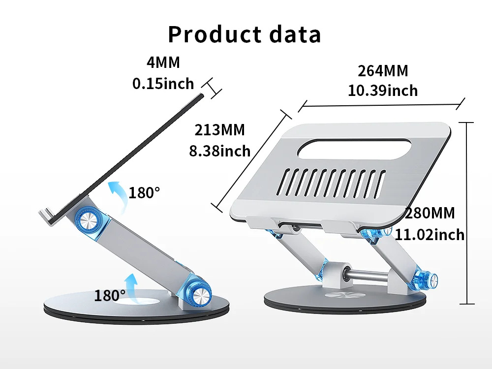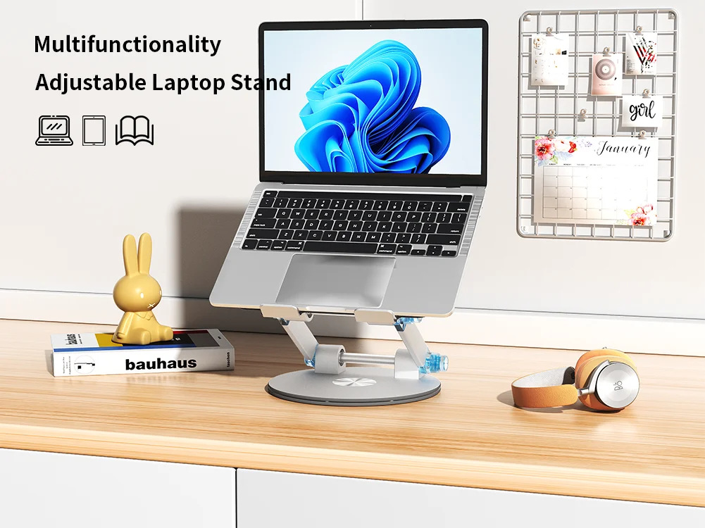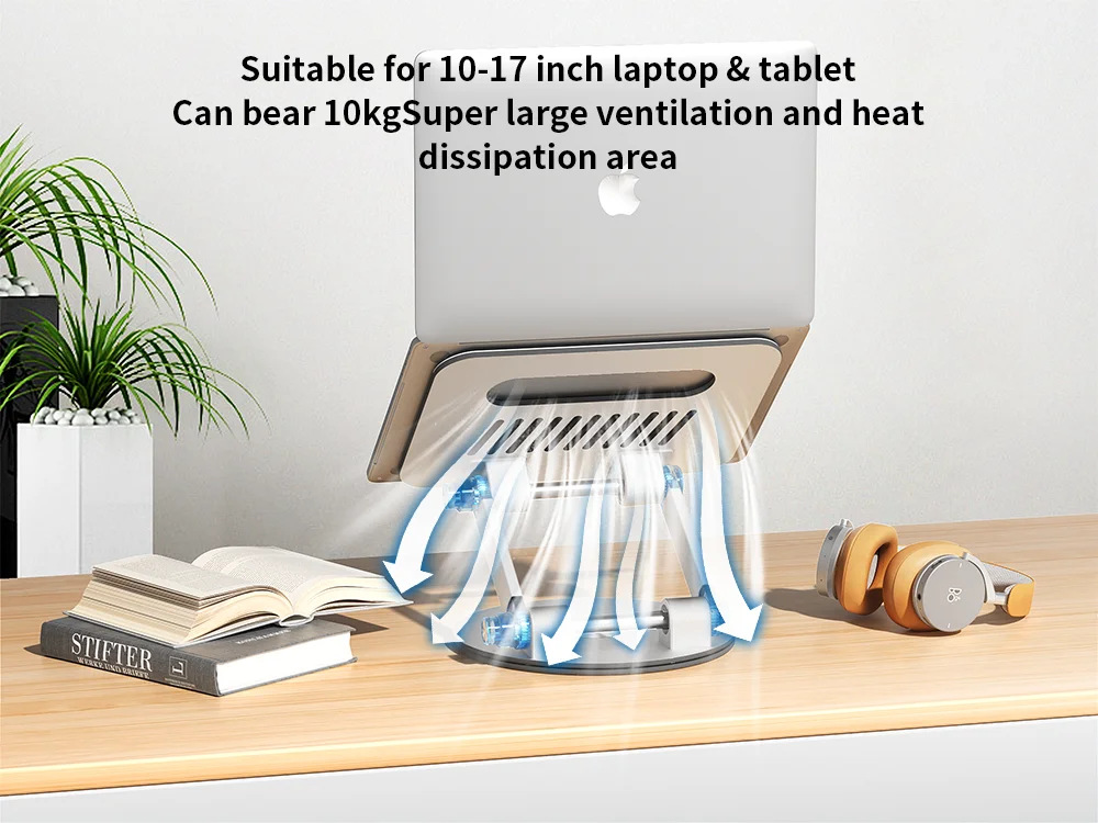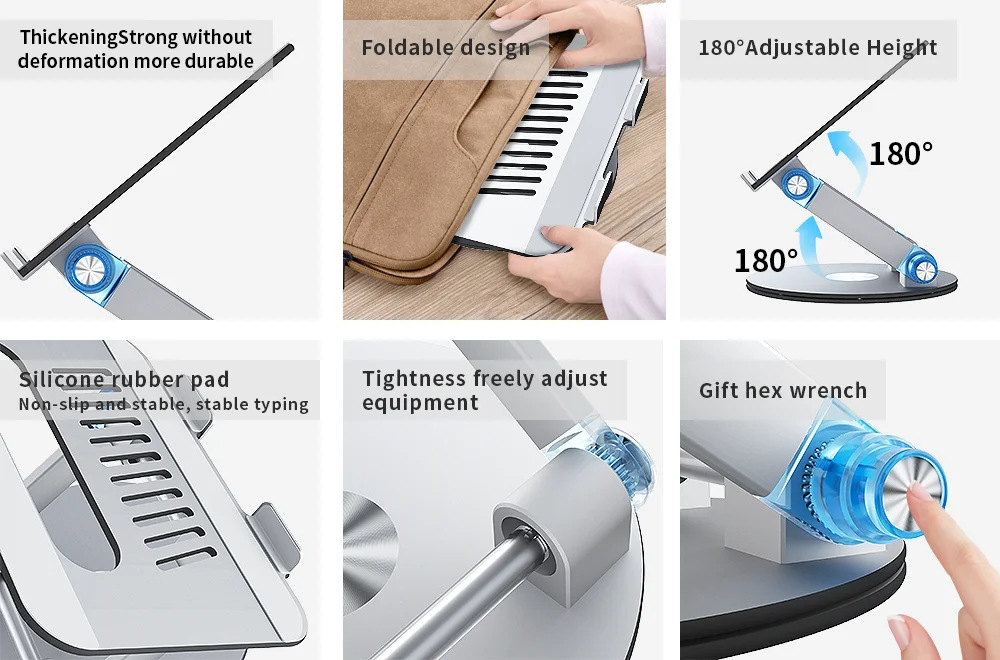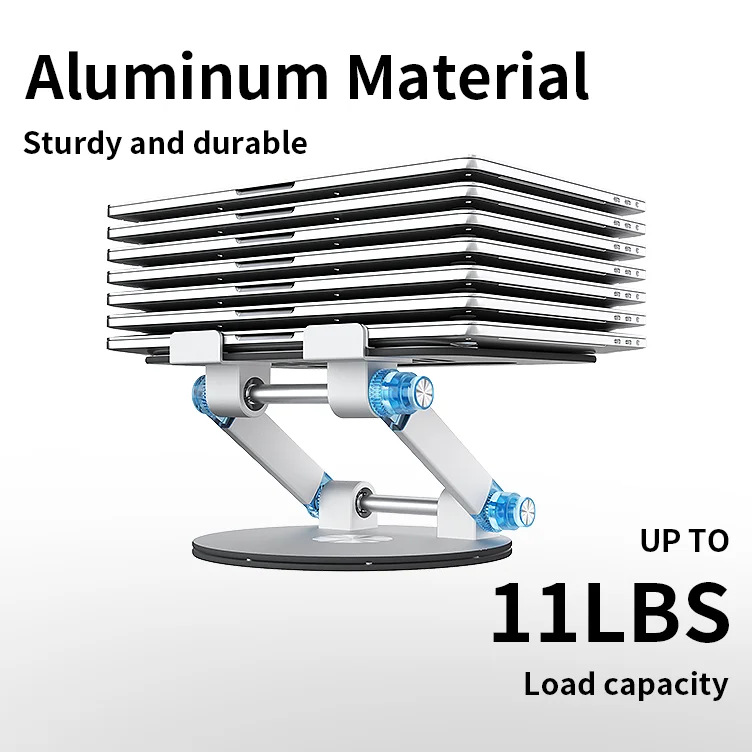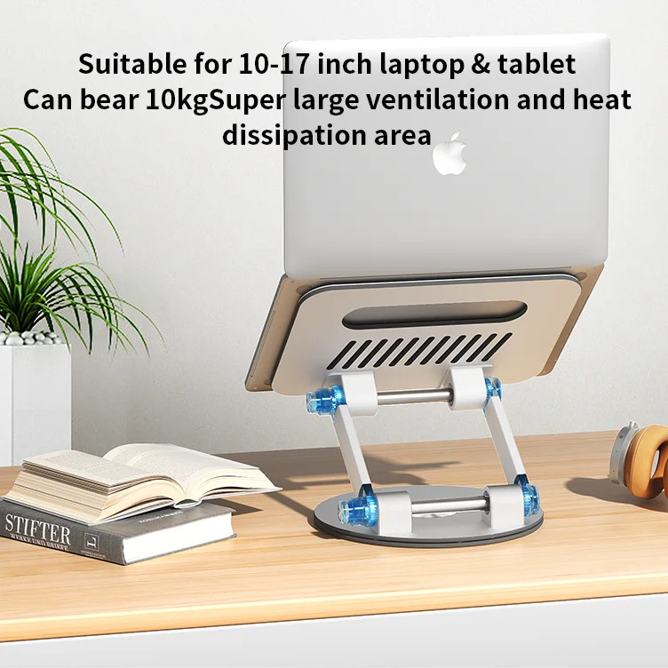 360도 회전 디스크 노트북 스탠드 알루미늄 플라스틱 패널은 키로 조정 가능 데스크탑 리프팅 접이식 컴퓨터 베이스