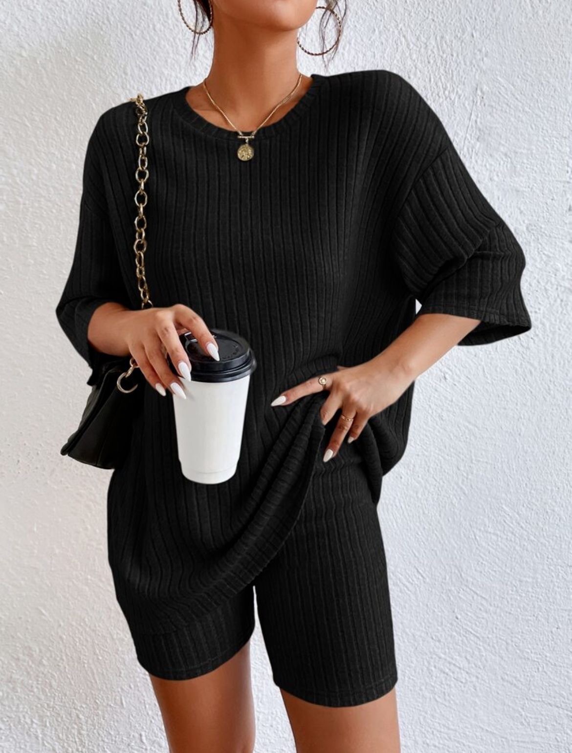 국경 아마존 2025 유럽과 미국 스타일의 캐주얼 라운드 넥 반바지 반팔 잠옷 여성 여름 홈웨어 세트스토어 가기