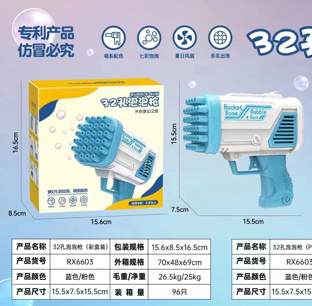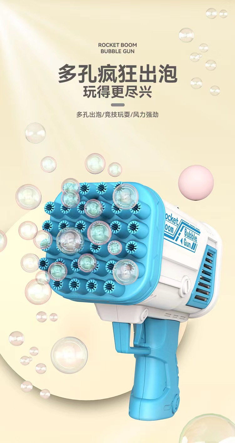국경 간 폭발 32 홀 로켓 발사기 거품 기계 어린이 전기 장난감 개틀링 거품 총 도매 거품 물스토어 가기
